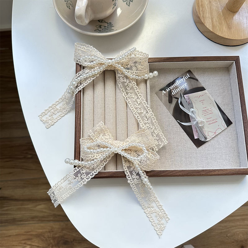 超仙老钱风雷丝花边气质蝴蝶结发绳甜美气质氛围感发夹鸭嘴夹胸针