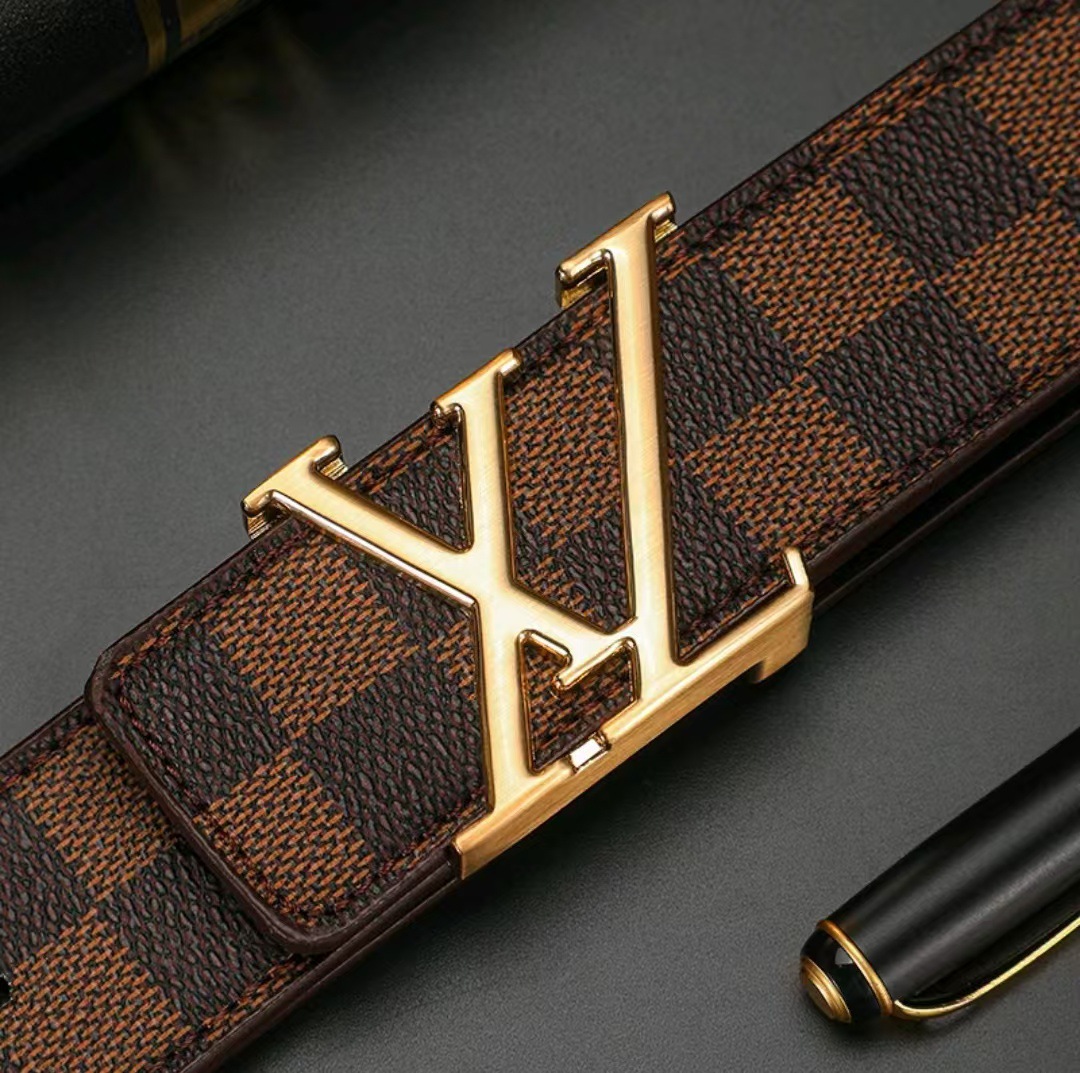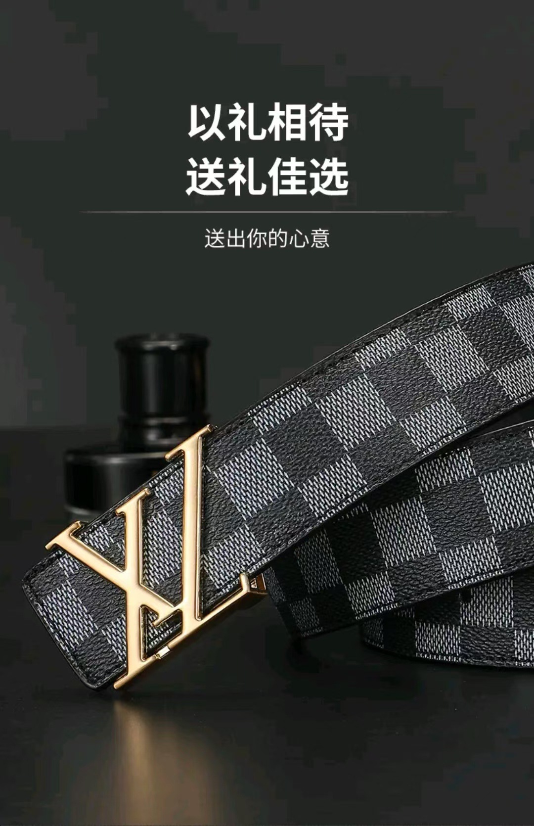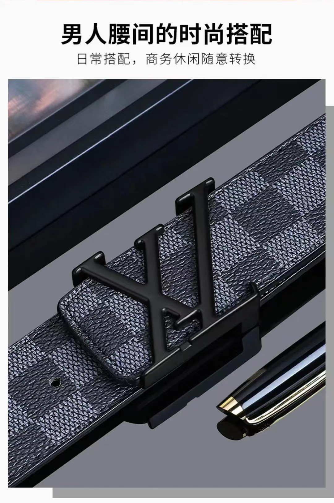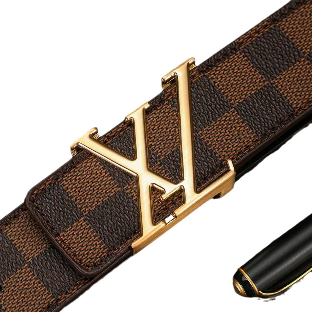 轻奢尊贵男士皮带格子纹真皮纯牛皮腰带休闲商务潮流