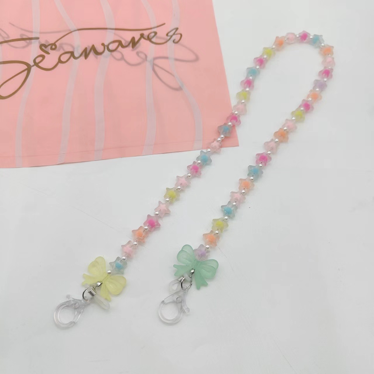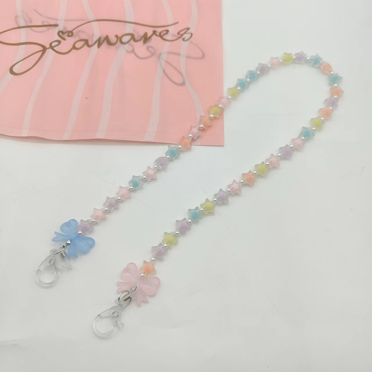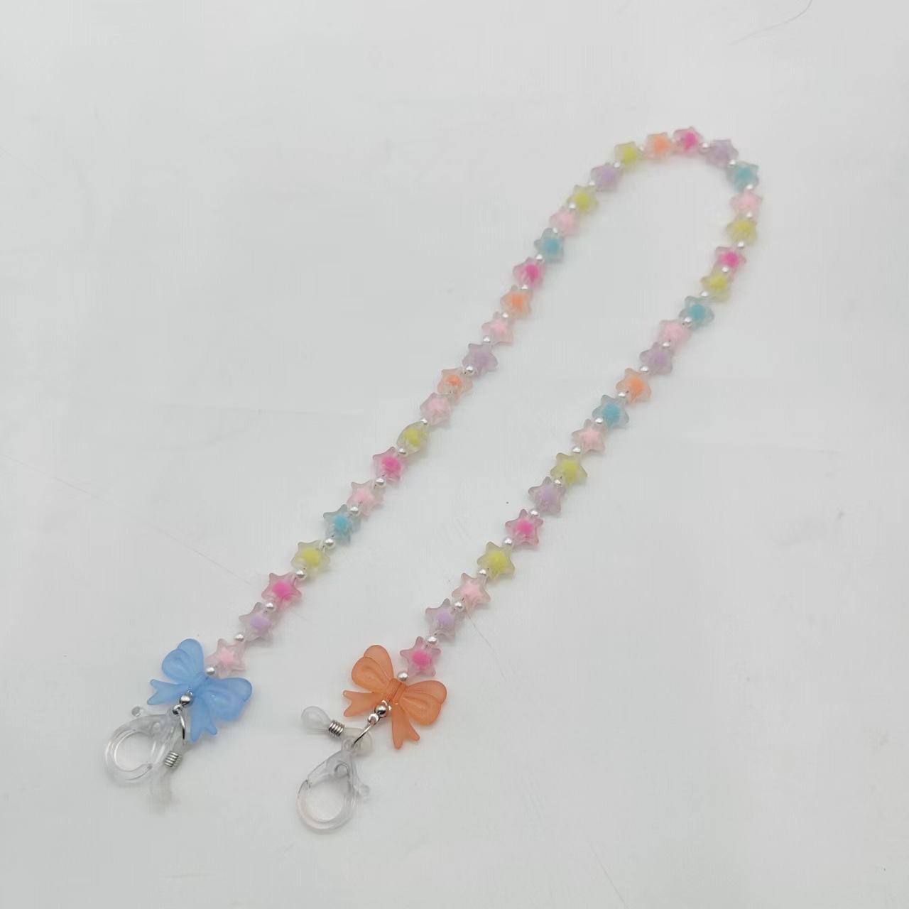 跨境新款磨砂五角星珠中珠蝴蝶结可爱多用帽子链口罩链