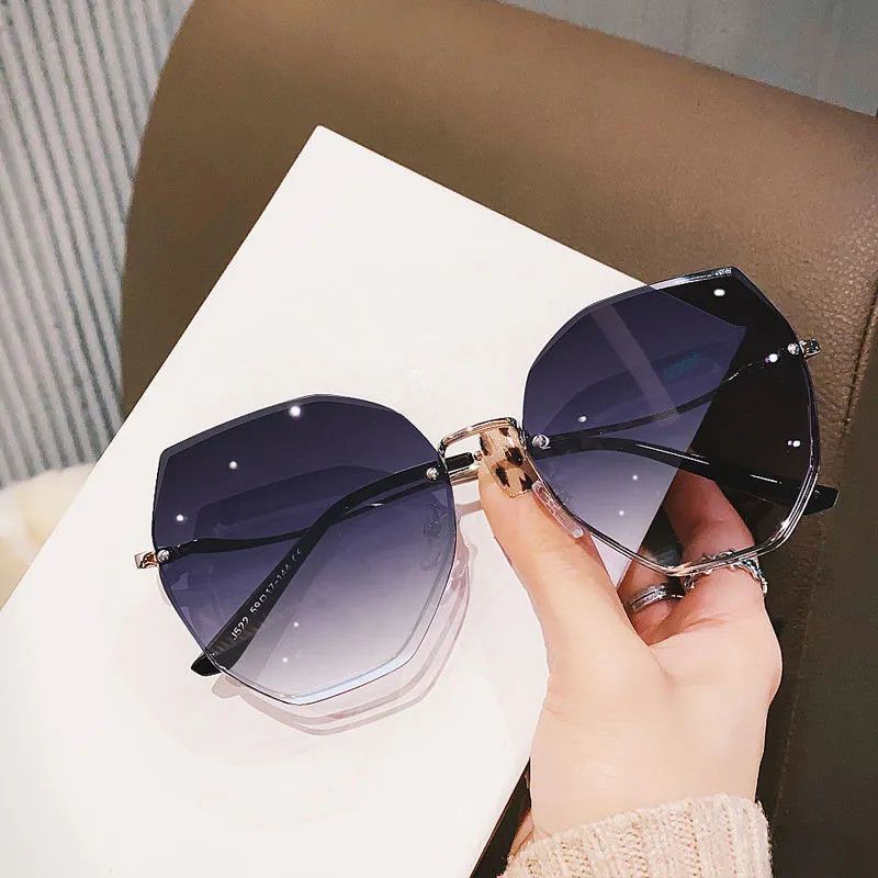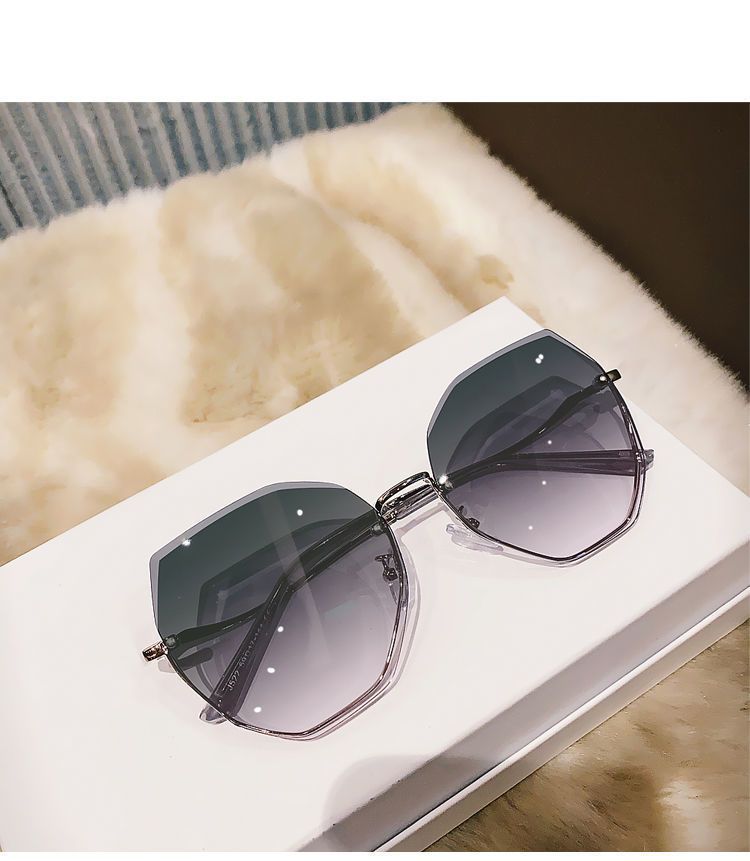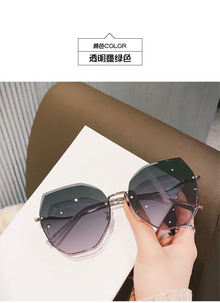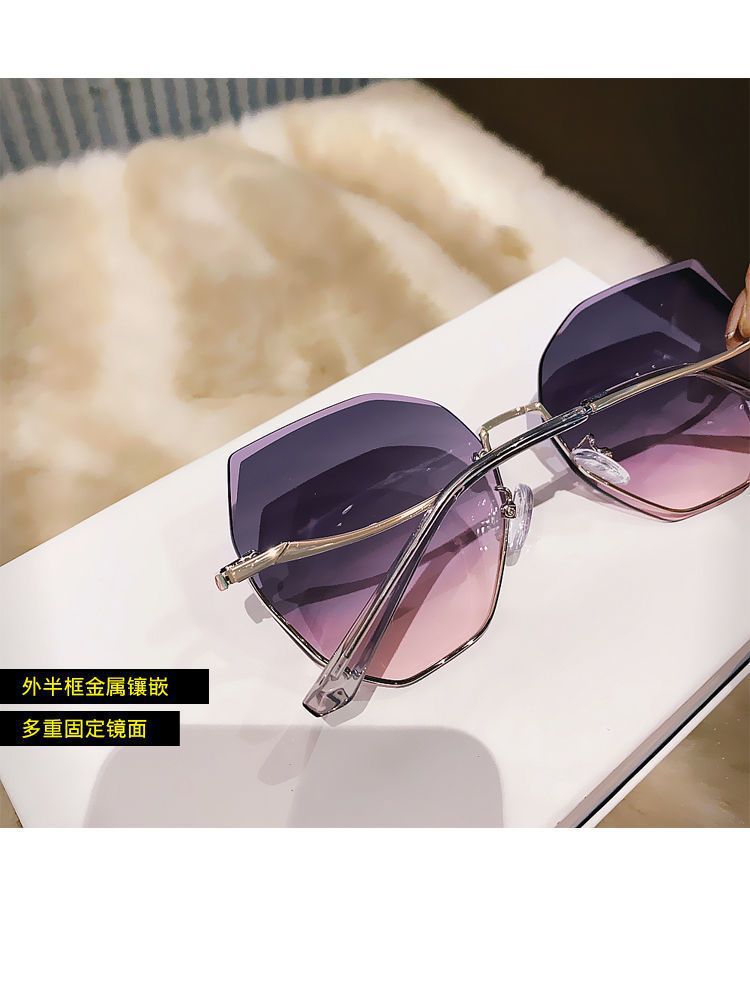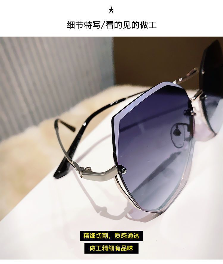 新款时尚多边形无框太阳镜女圆长脸韩版街拍眼镜气质浅色墨镜潮