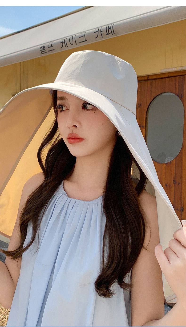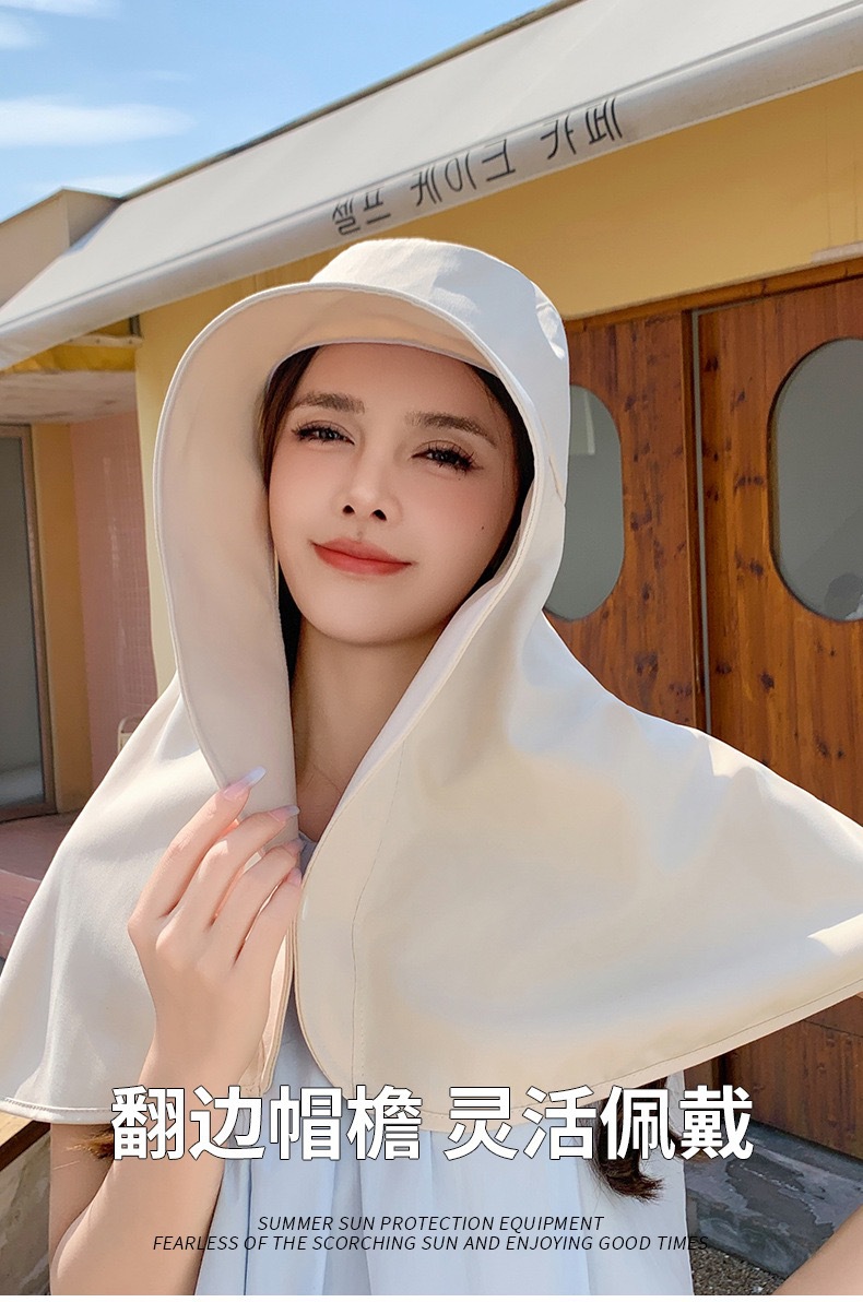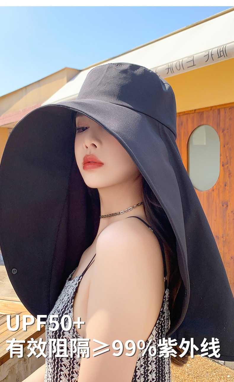 全脸防晒大帽檐披肩太阳帽女护颈一体防紫外线遮脸渔夫帽露马尾