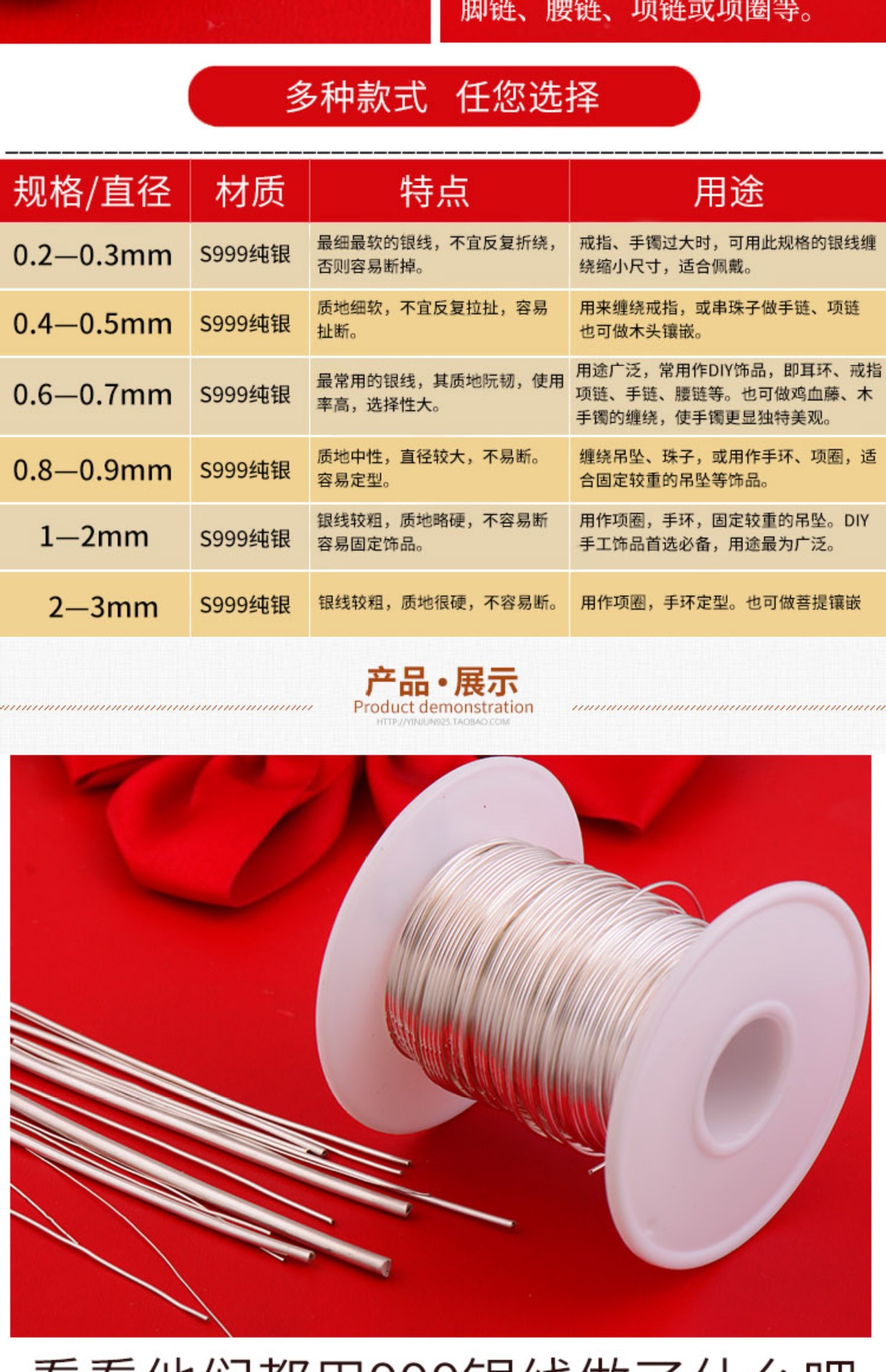999纯银丝银线手工银线材编织戒指手链吊坠项链材料饰品diy银配件