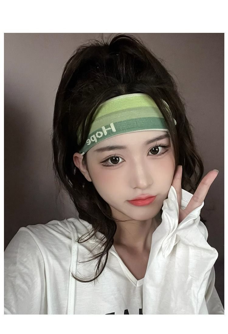 夏季健身运动女孩发带透气渐变色跑步吸汗止汗头带瑜伽导汗束发带