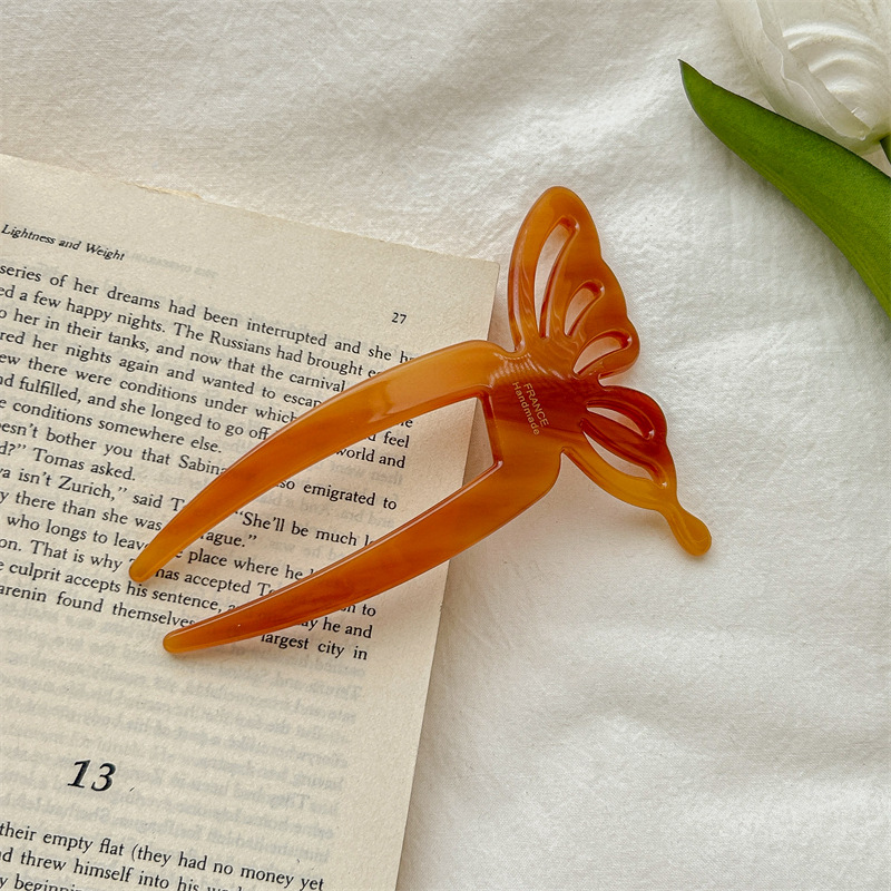 蝴蝶翅膀发簪醋酸简约优雅国风复古气质盘发簪子现代汉服百搭头饰