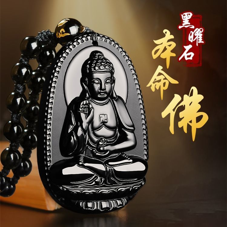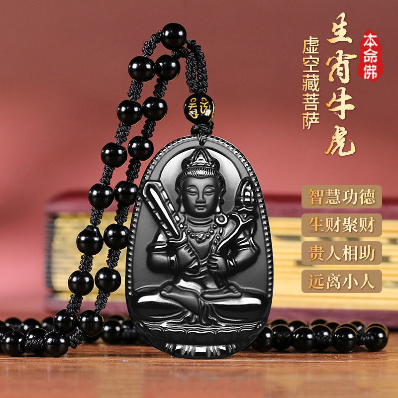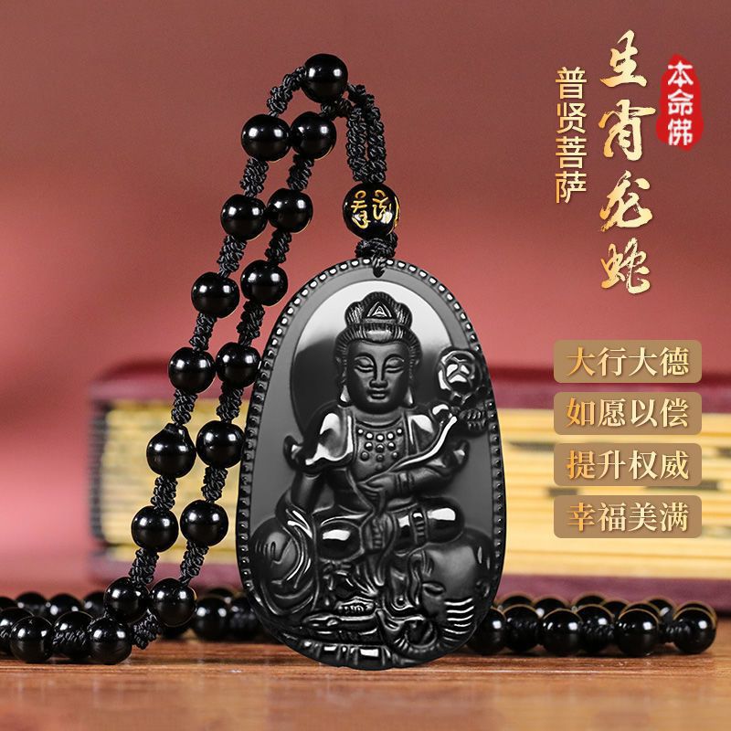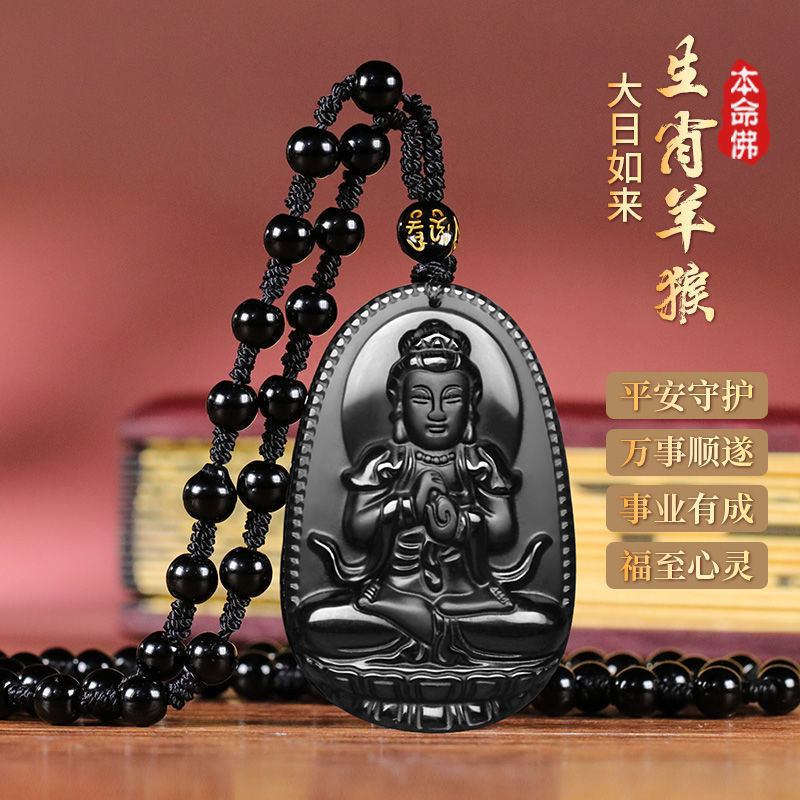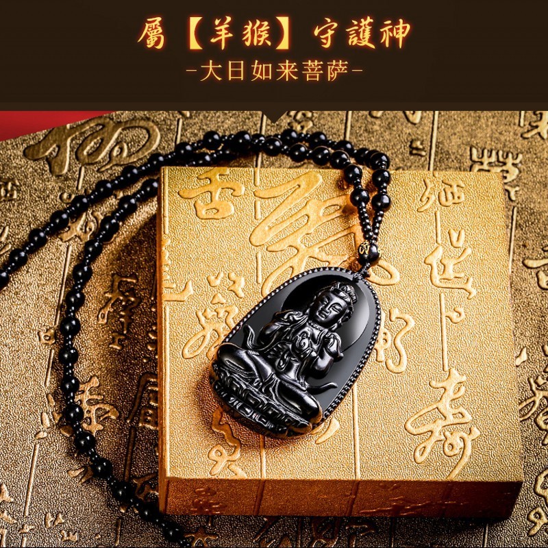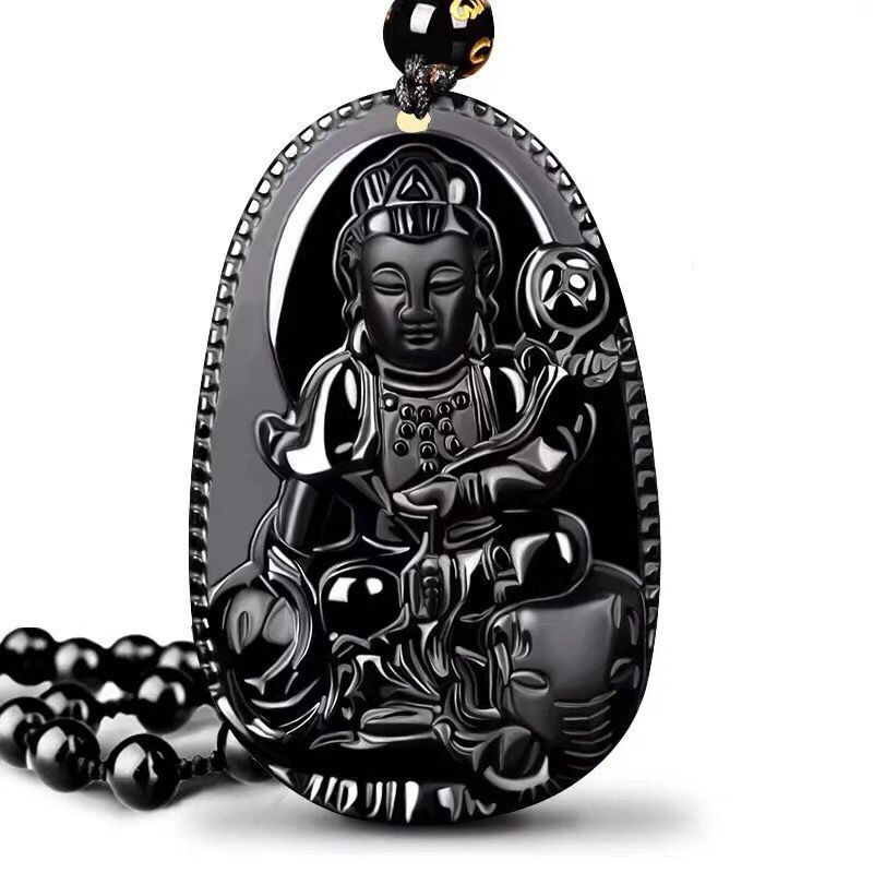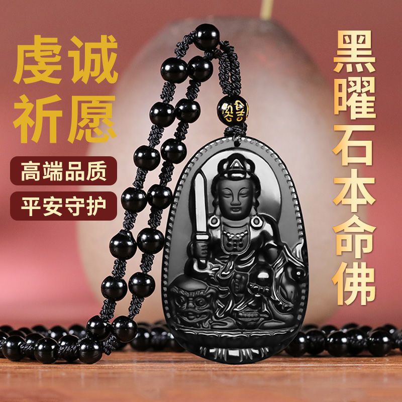 黑曜石十二生肖本命佛挂件千手观音吊坠男大势至文殊菩萨属兔项链
