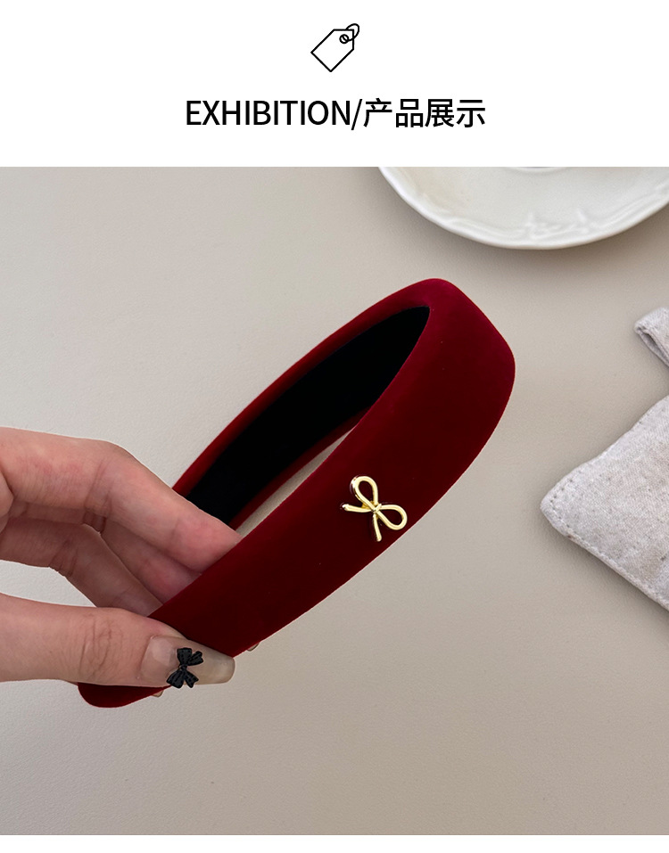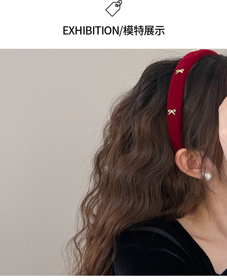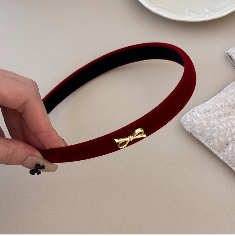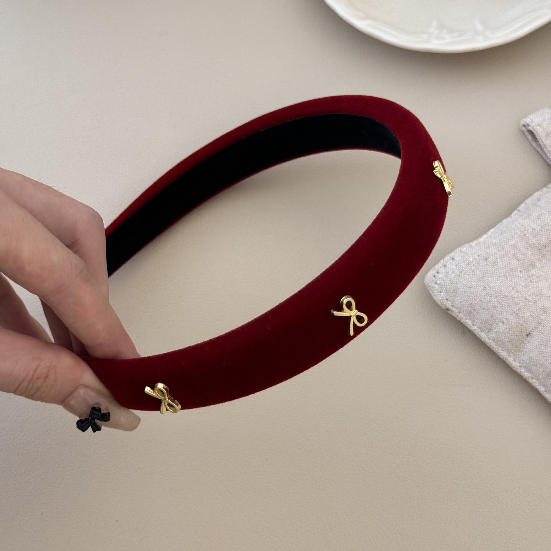 2024新款法式秋冬复古蝴蝶结绒面发箍高级安可拉红显白头箍发饰品