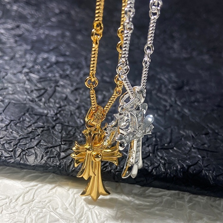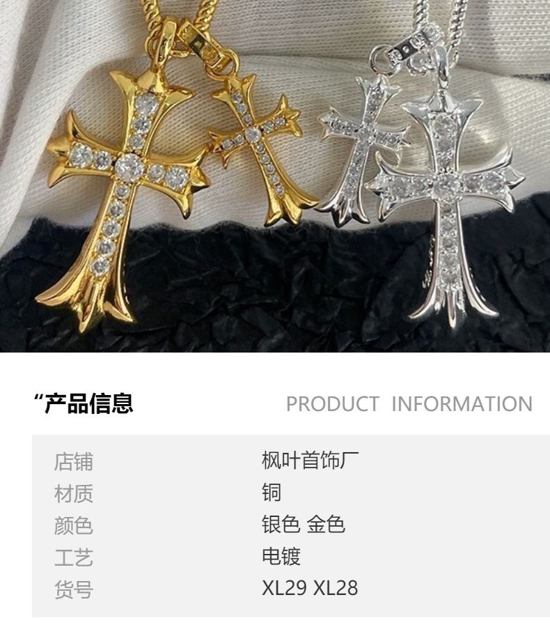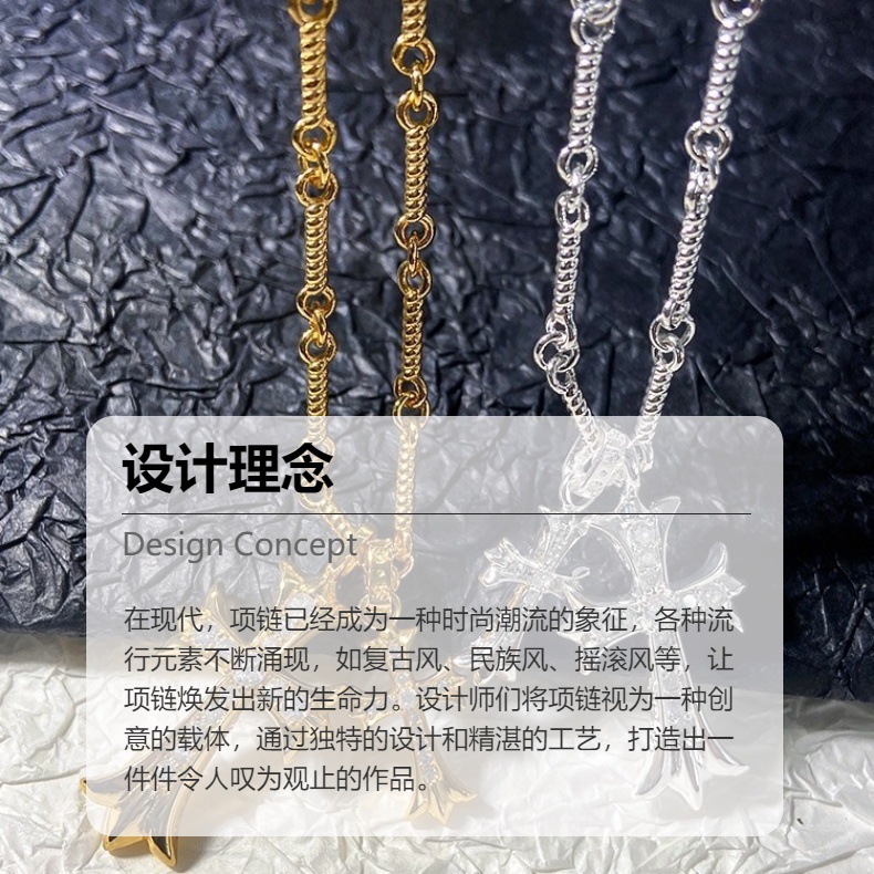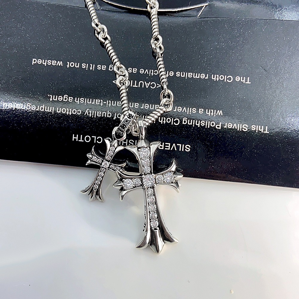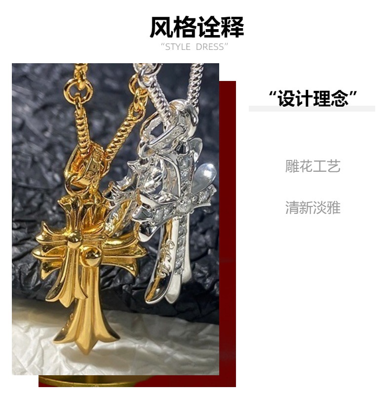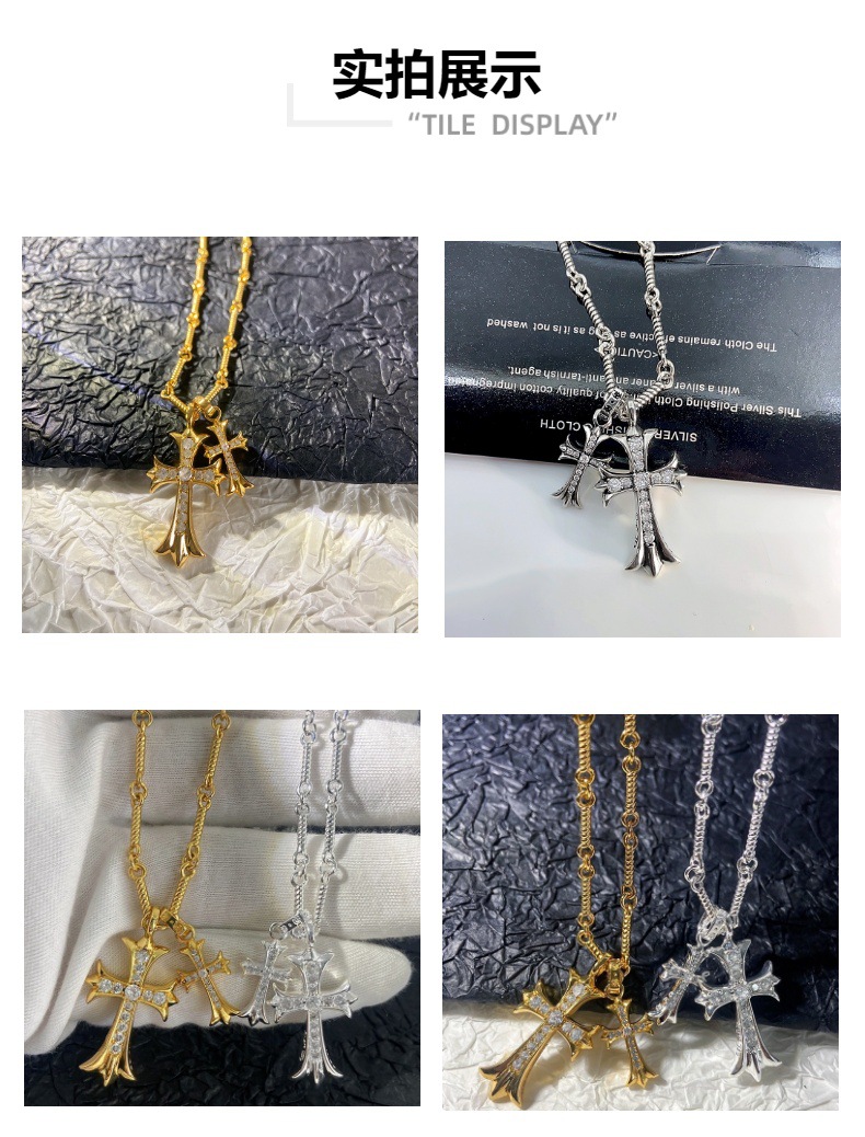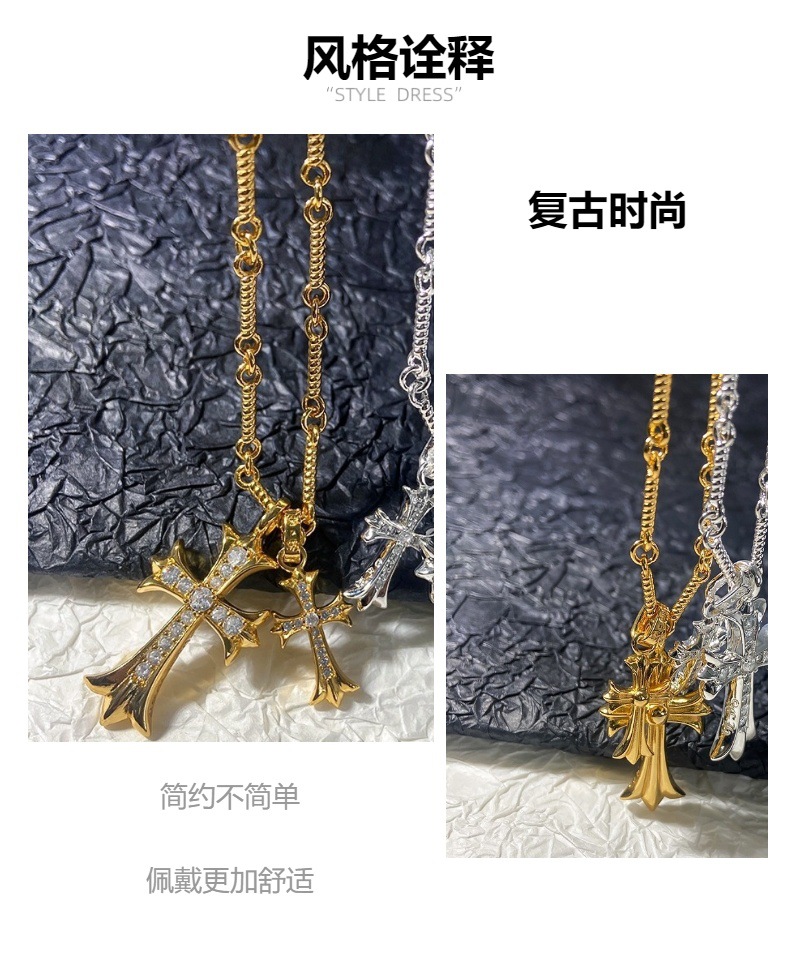 潮轩克罗心十字架颈链双吊项链欧美情侣满钻双男女吊坠饰品复古
