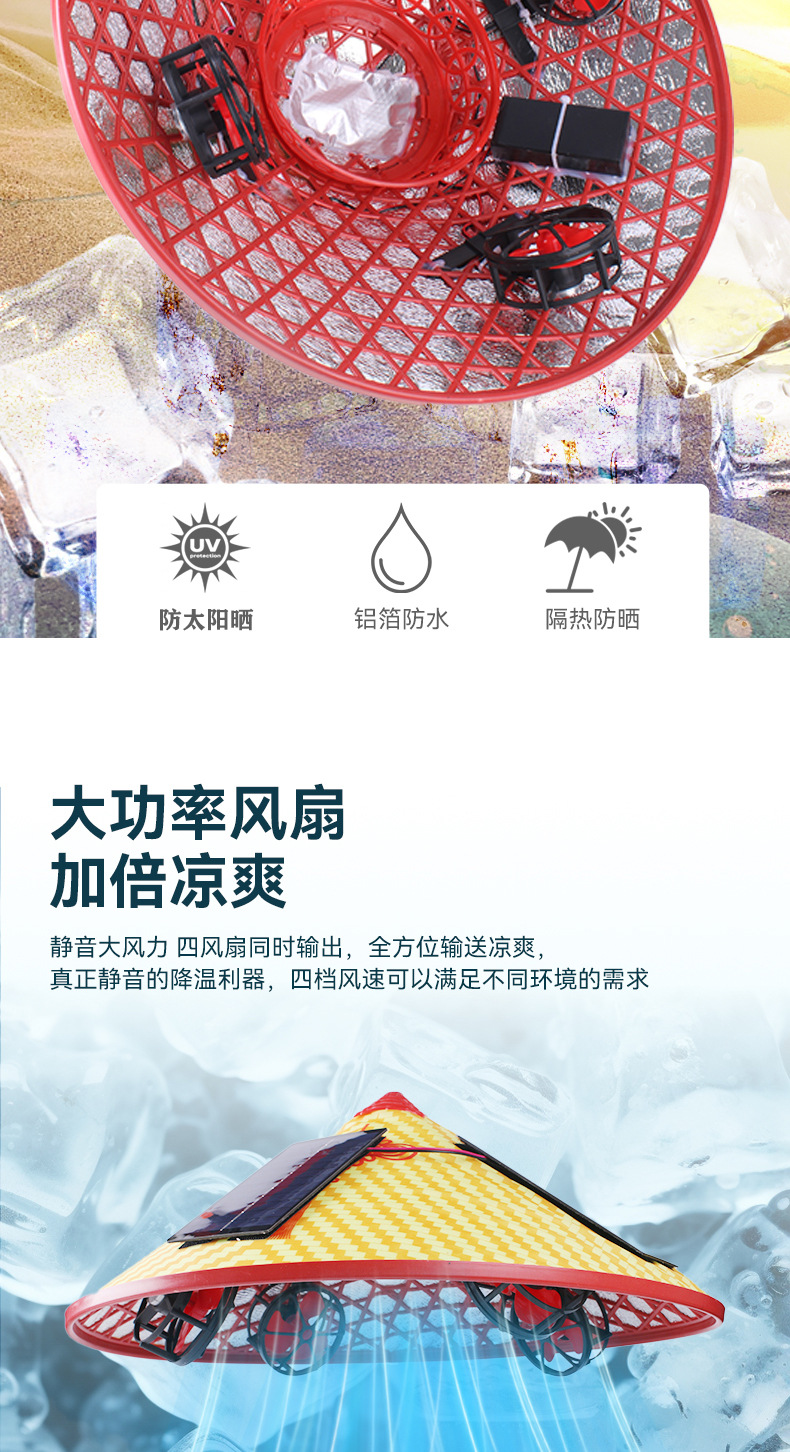 太阳能风扇帽防暑遮阳包邮户外干农活斗笠帽大檐帽带风扇充电