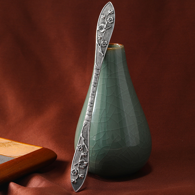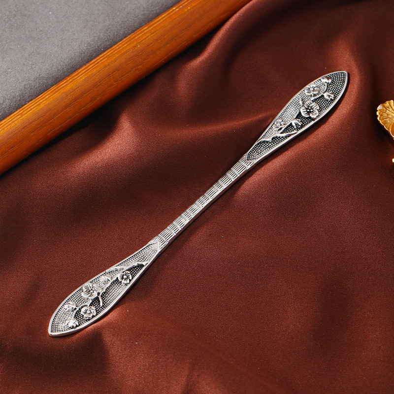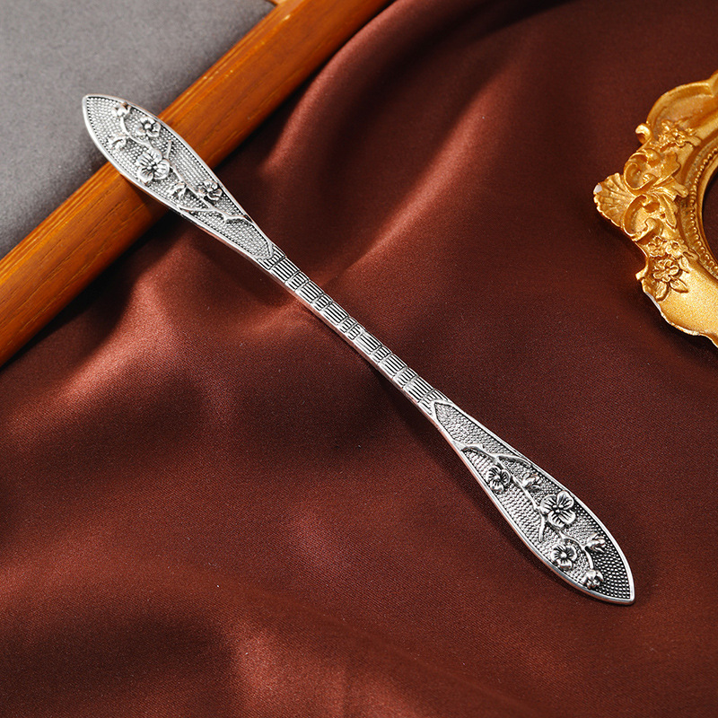 复古简约发簪古风汉服丸子头盘发头饰古银梅花双面簪子发饰