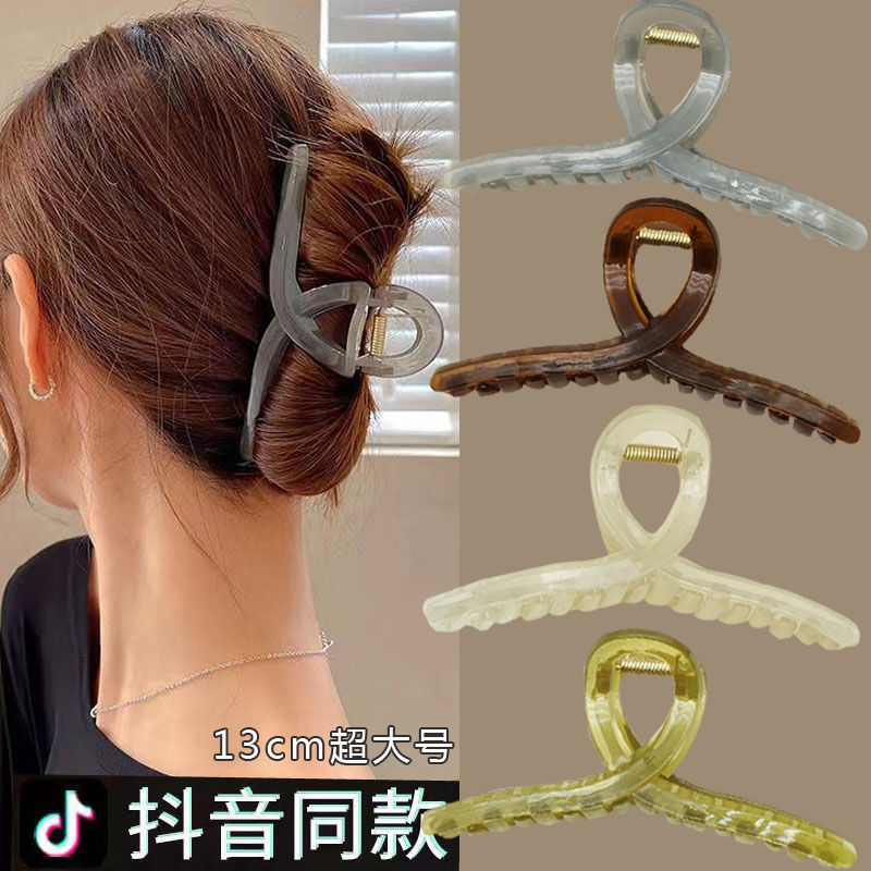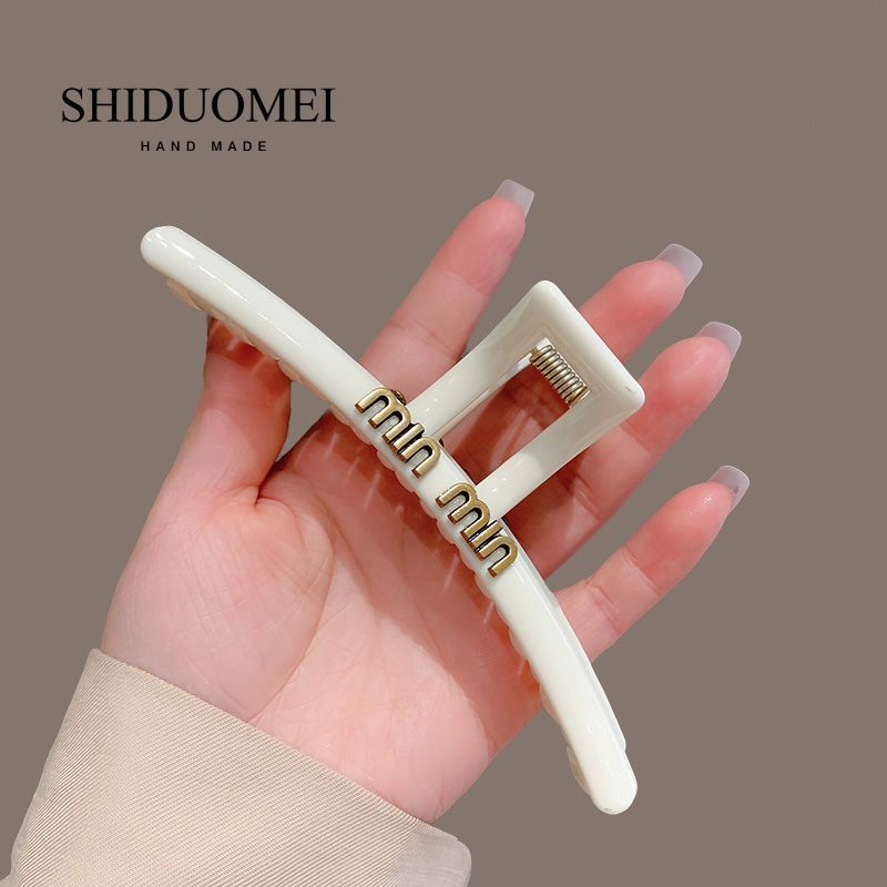 新款大号鲨鱼夹复古黑白高级感笑脸m字母衣架大抓夹网红发夹厂家