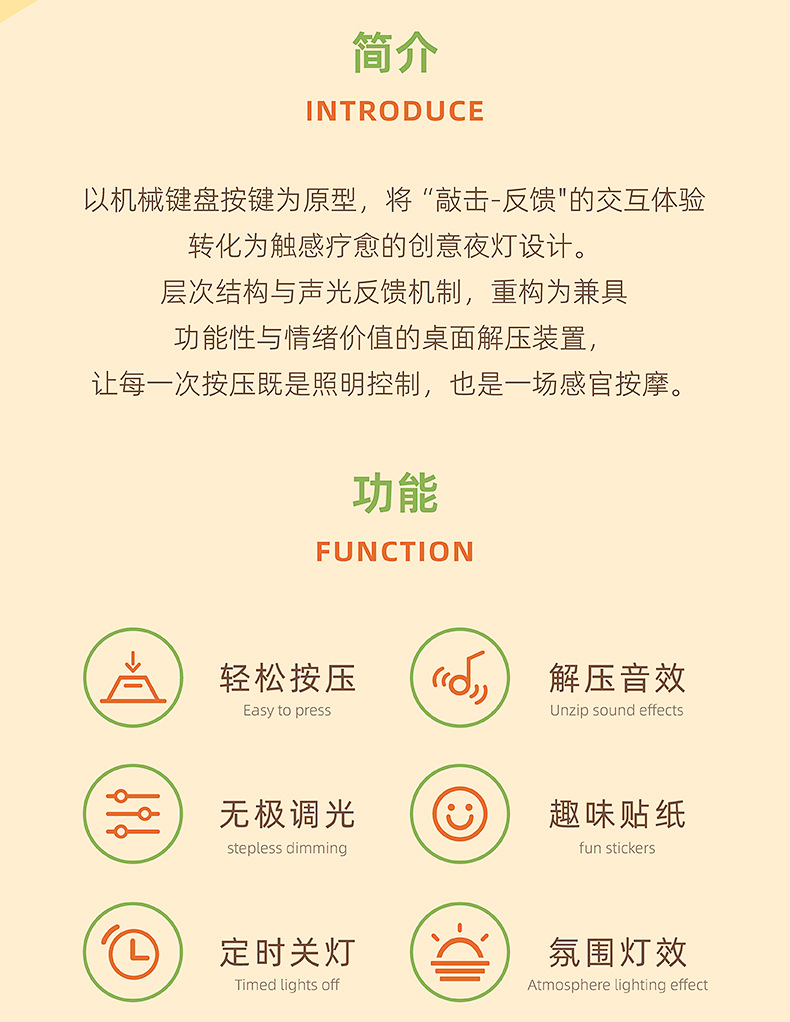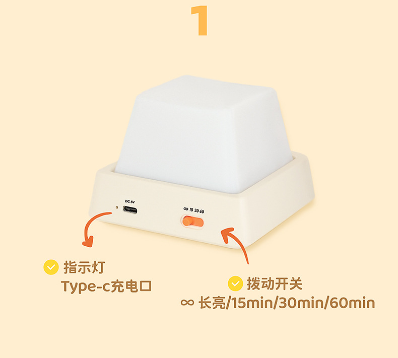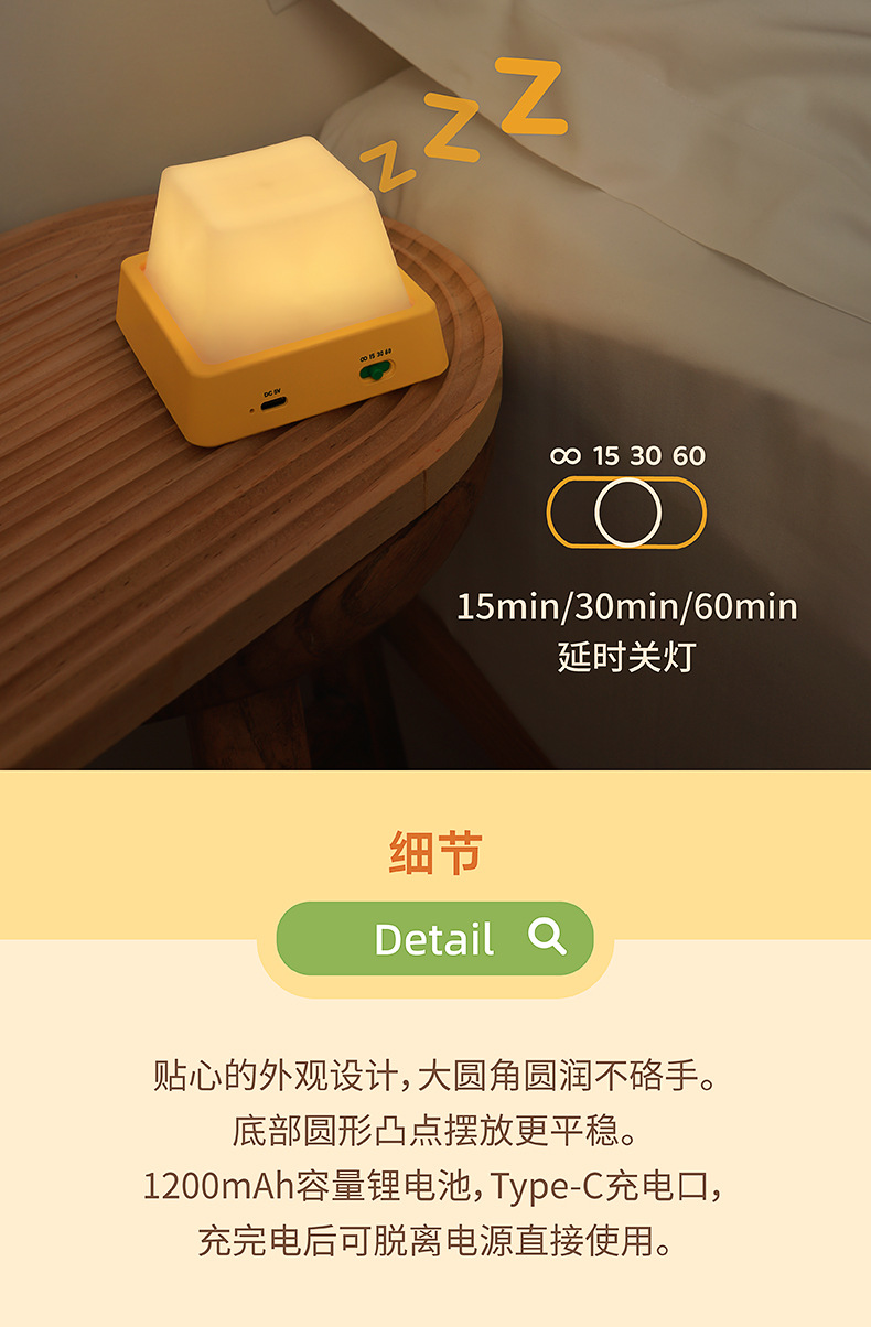 开关灯按键小夜灯卧室床头睡眠桌面按压暖光定时关无极调光简约宿
