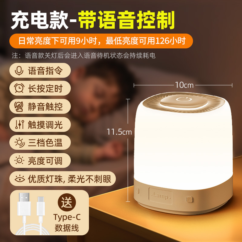 小夜灯卧室床头睡眠月子婴儿宝宝喂奶护眼夜间充电款儿童台灯