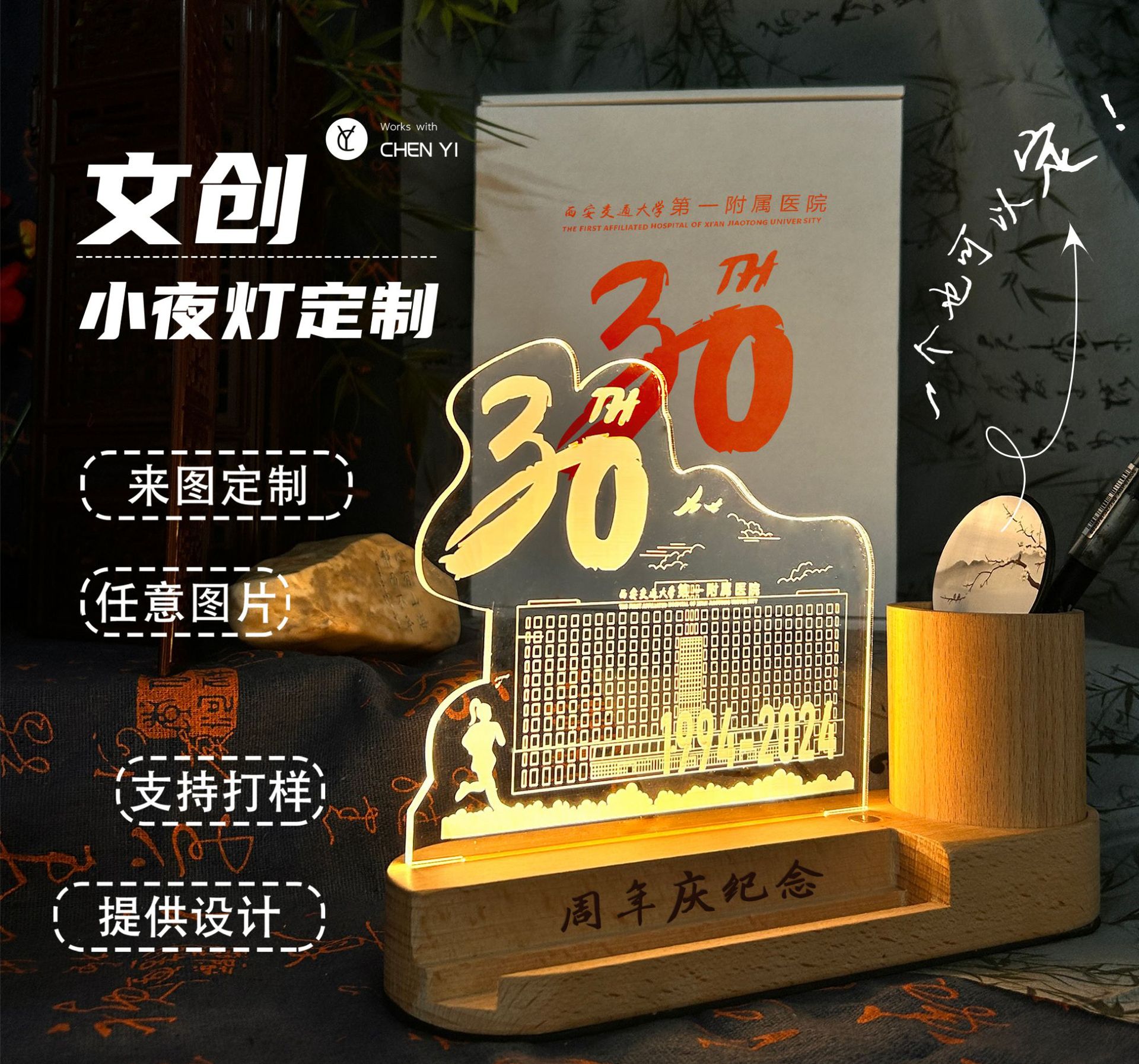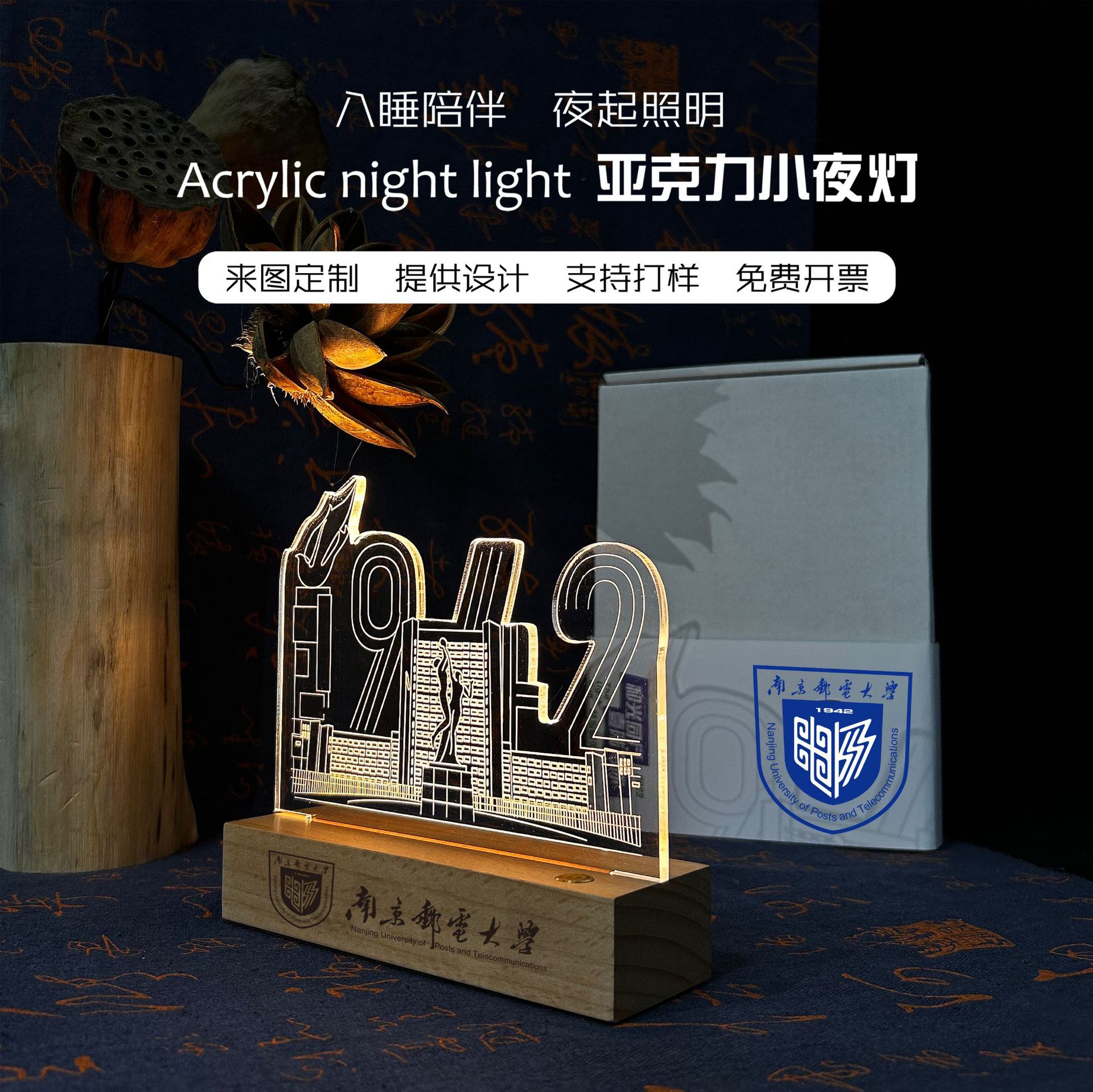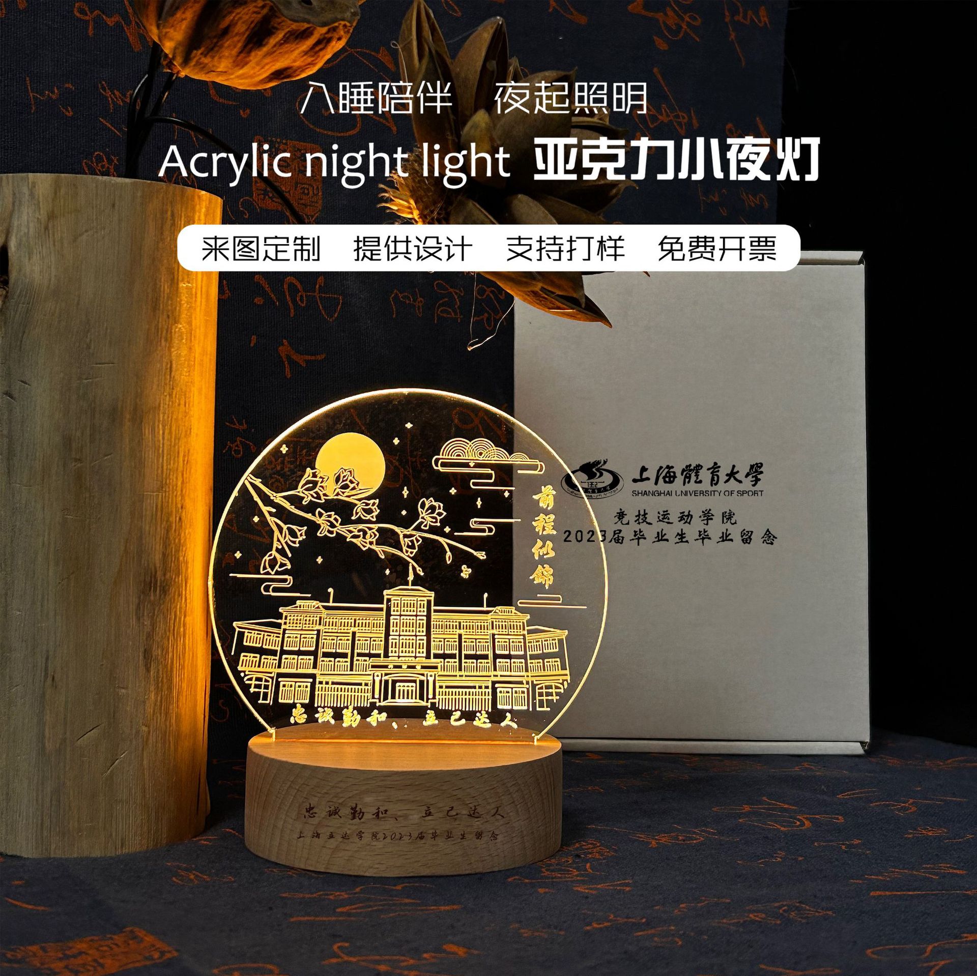 小夜灯定 制大学校园毕业周年庆纪念礼品创意企业文创亚克力台灯