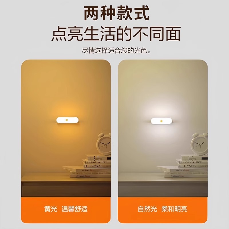 人体感应小夜灯智能充电式声控灯家用无线过道墙壁起夜楼道感应灯