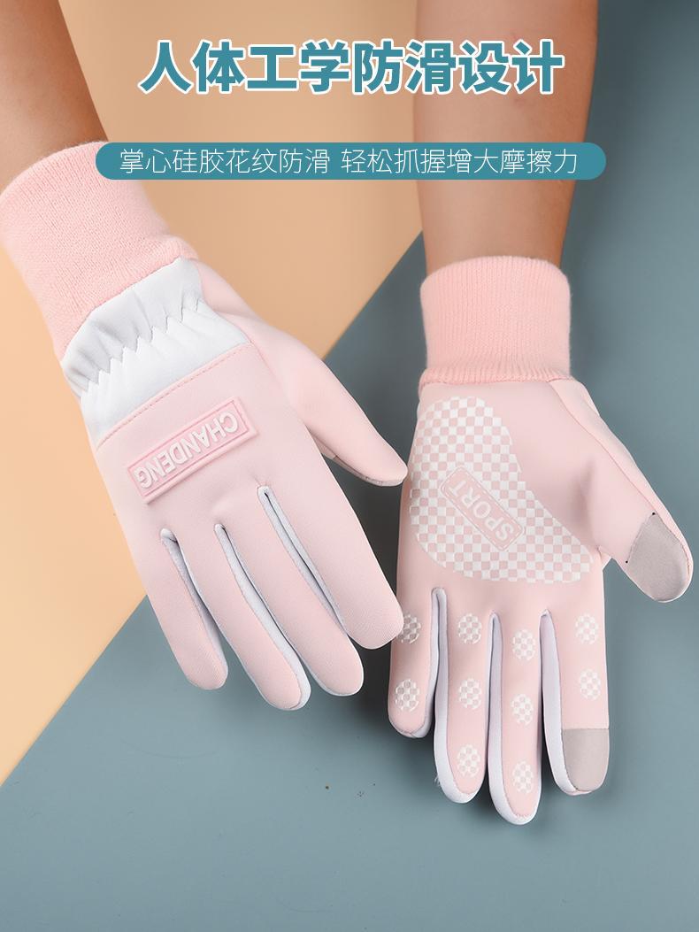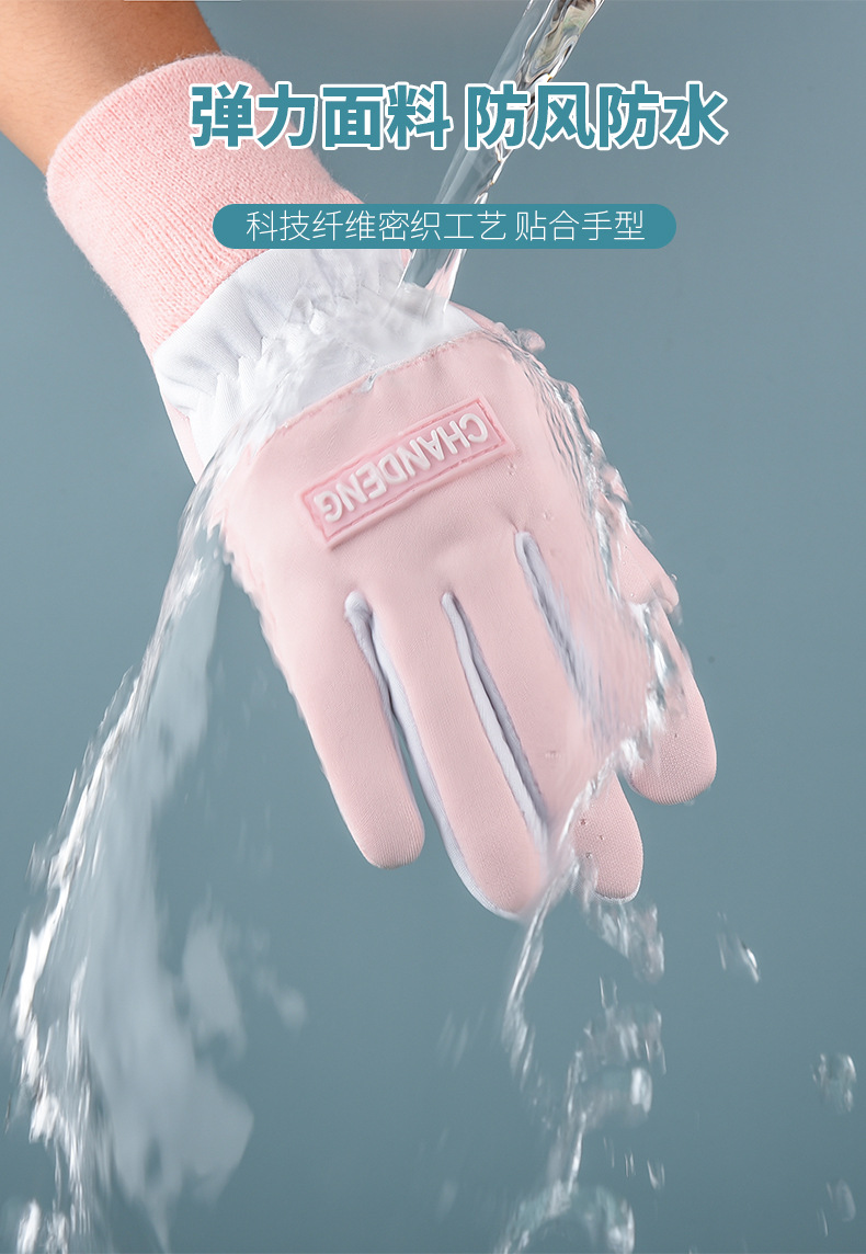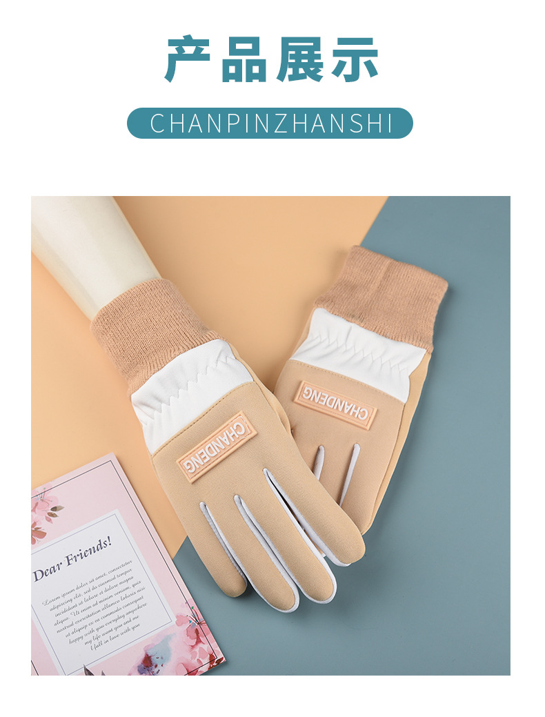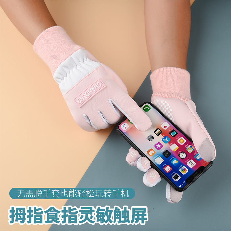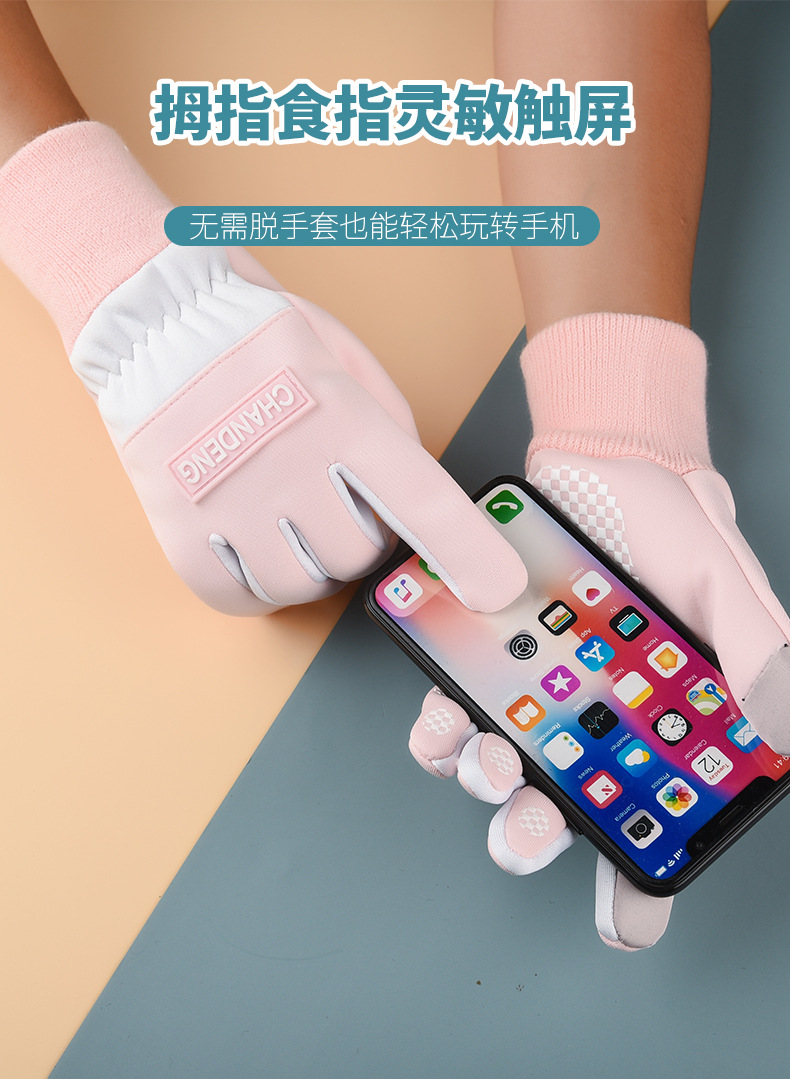 女士保暖手套2024新款防水触屏防滑户外约会简约百搭冬季保暖手套