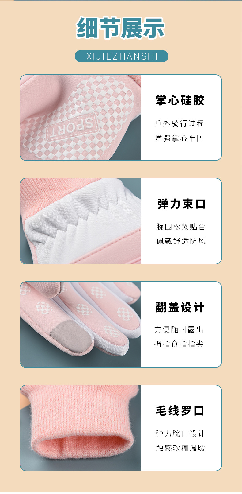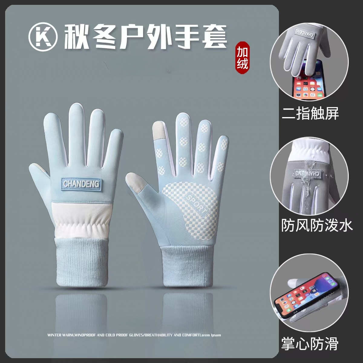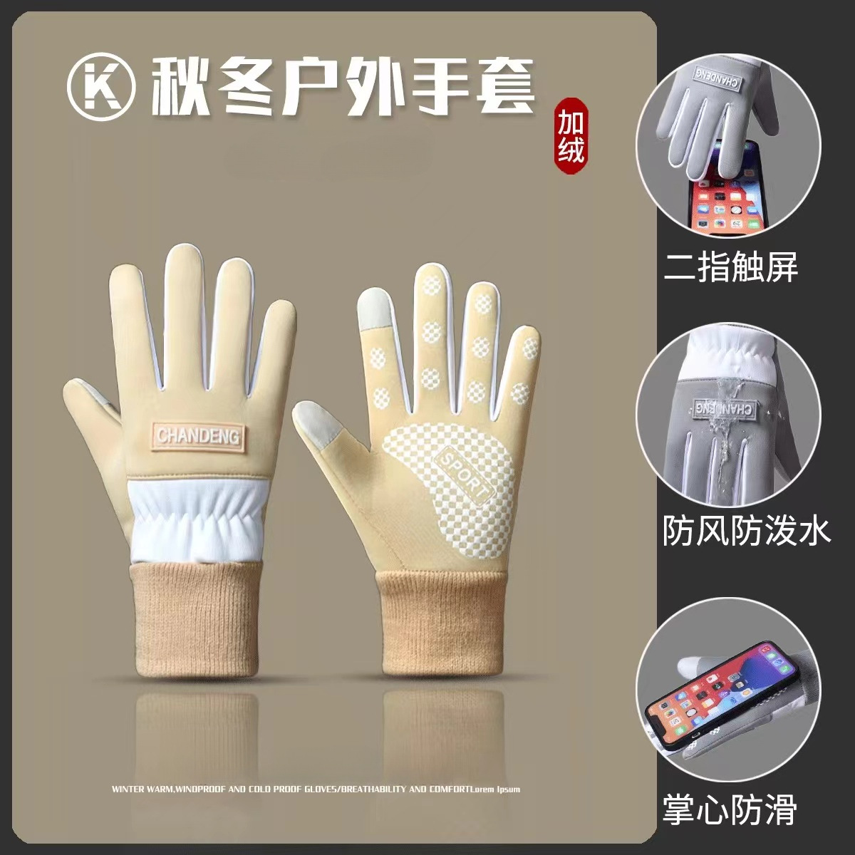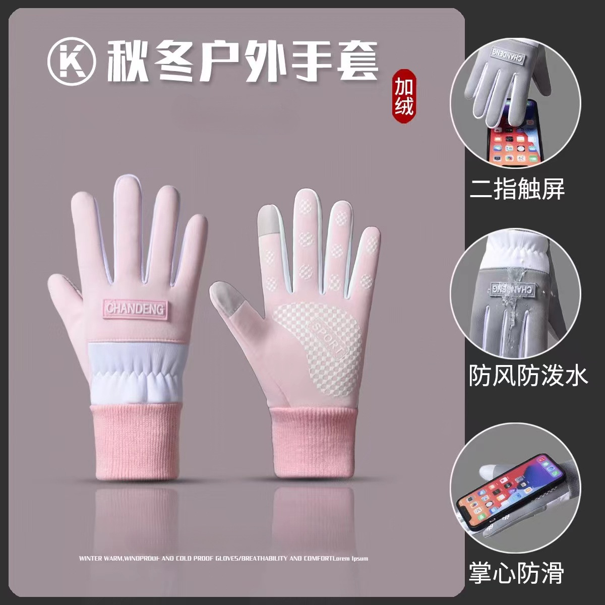 女士保暖手套2024新款防水触屏防滑户外约会简约百搭冬季保暖手套