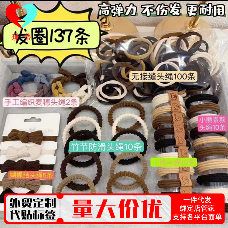 【137件套】抖音热卖发饰套装2024年新款橡皮筋超高弹力发绳批发
