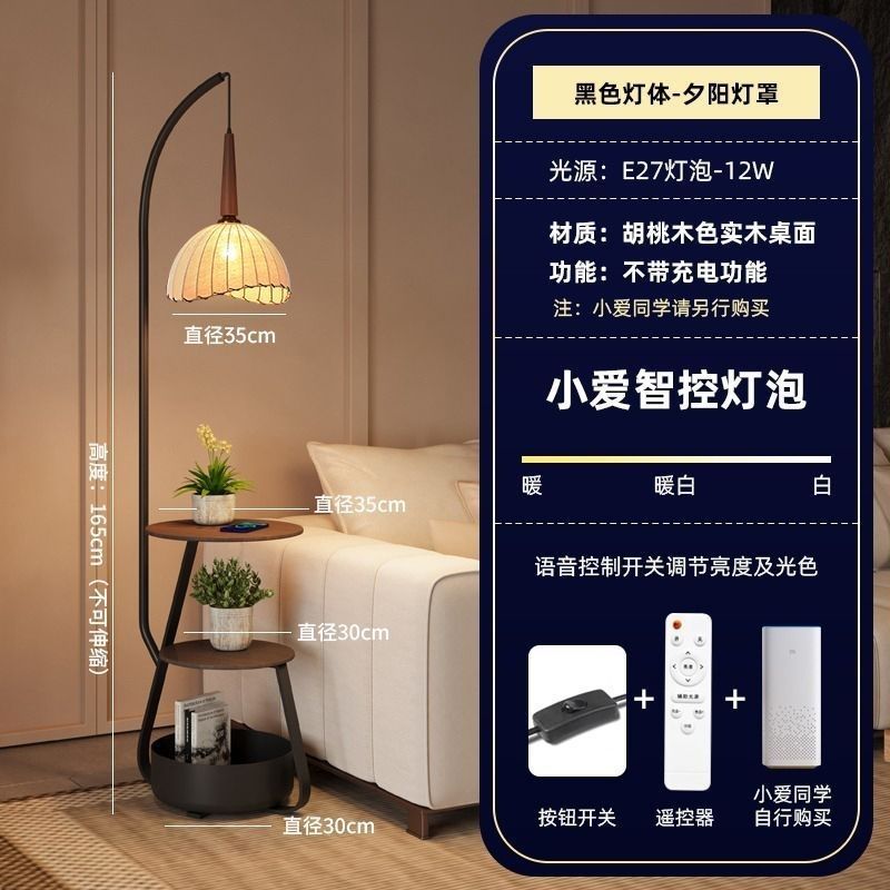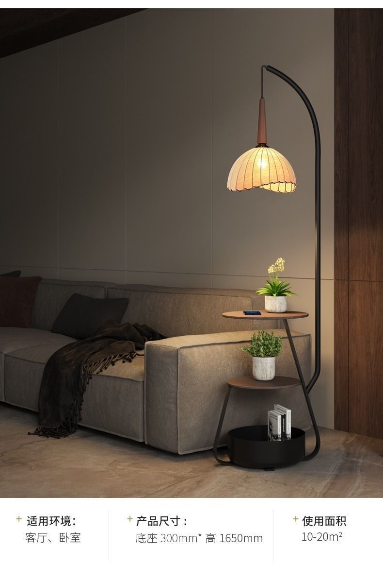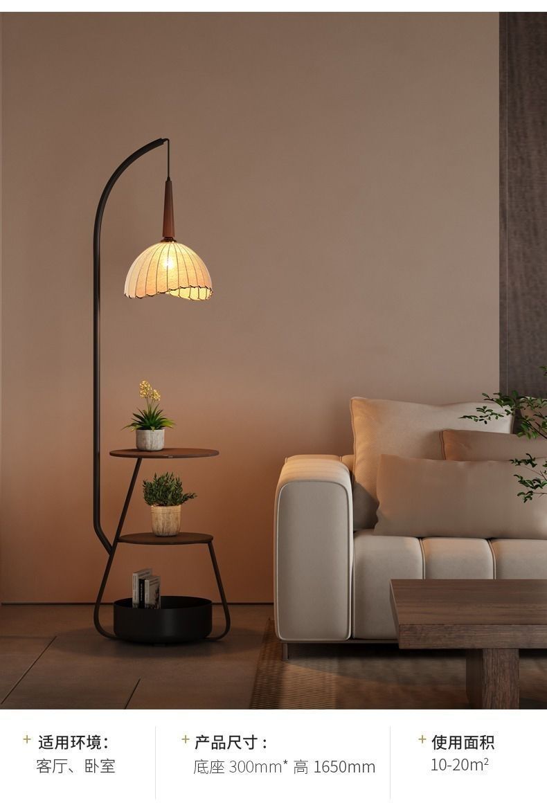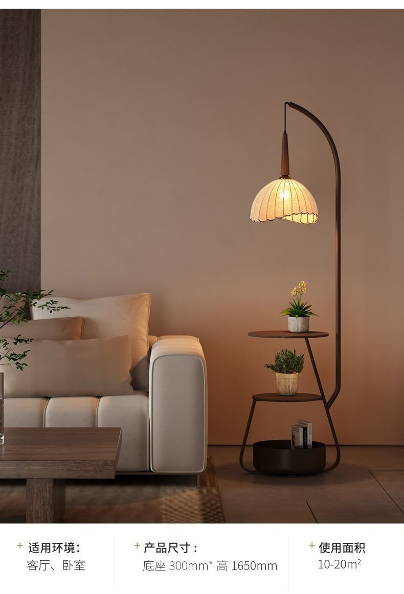 中古风落地灯中式复古风客厅沙发旁茶几灯一体两用卧室床头氛围灯