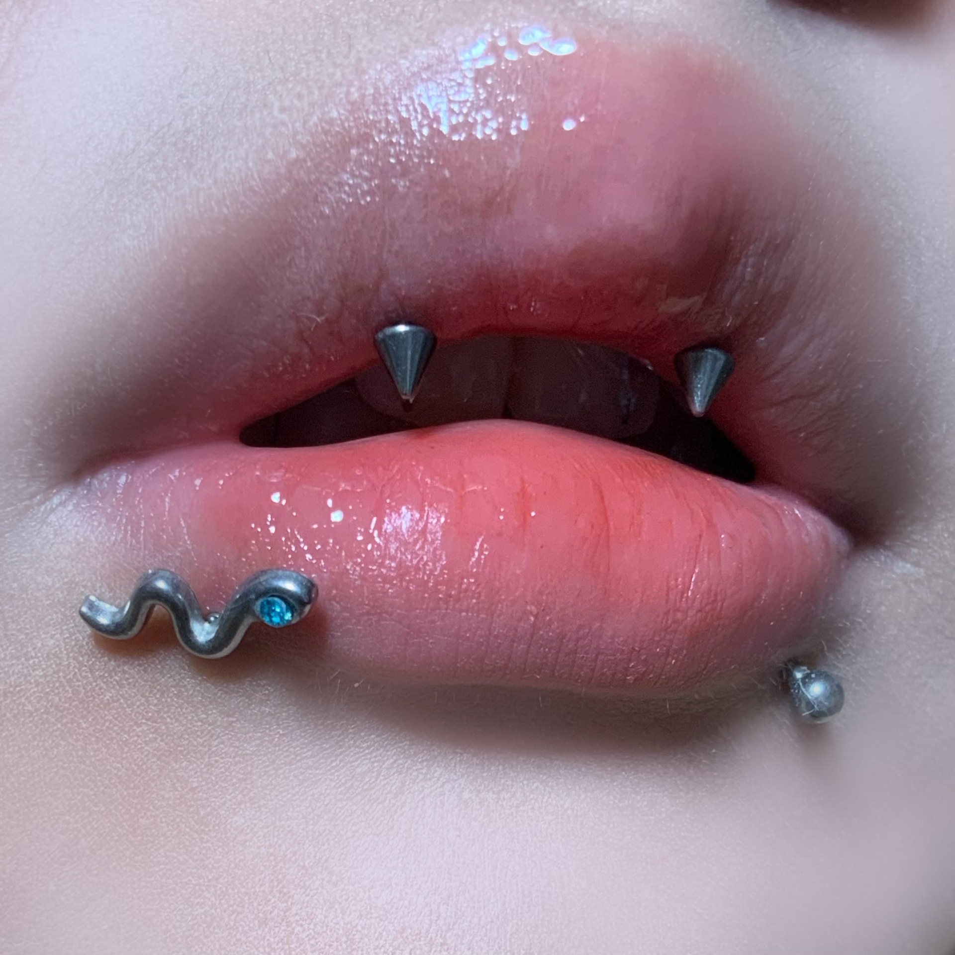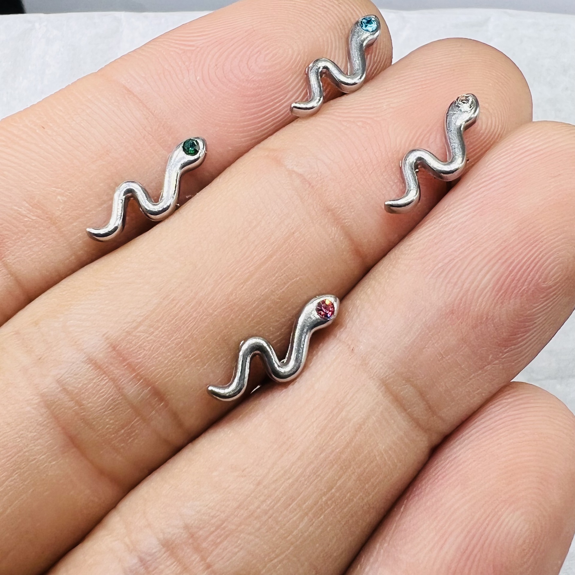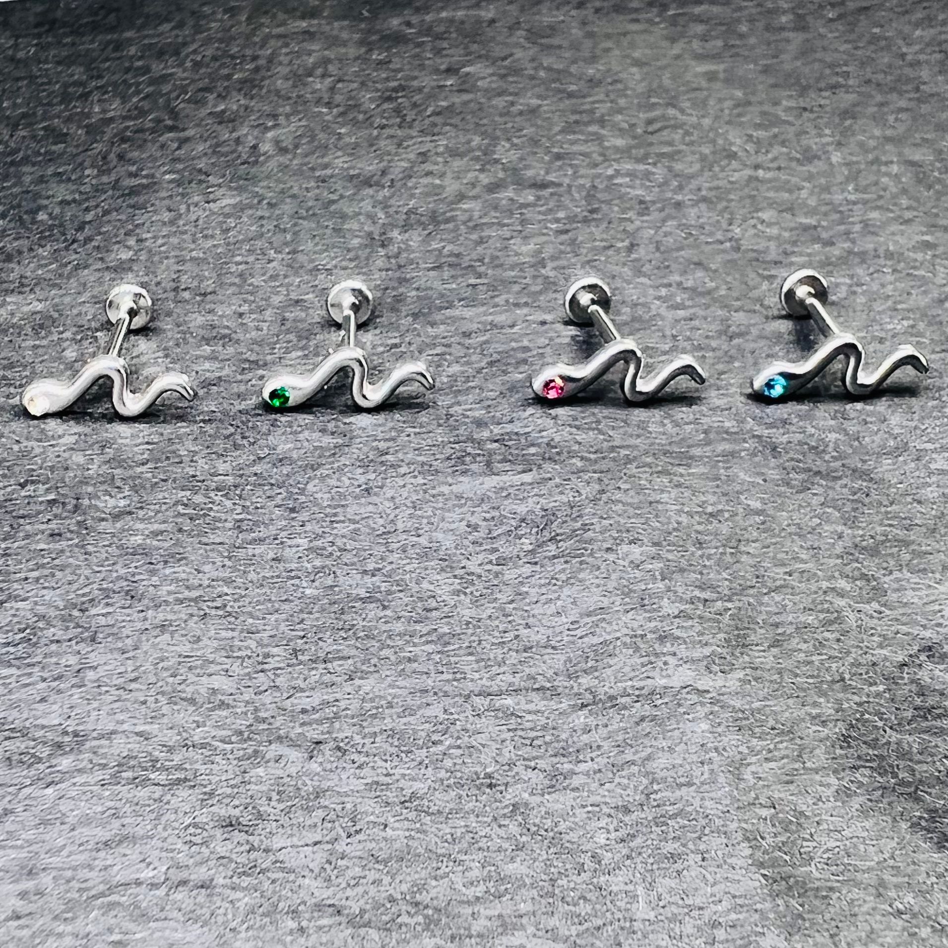 内牙小蛇带钻四色贵彩新款唇钉耳骨钉辣妹甜美朋克个性穿刺饰品