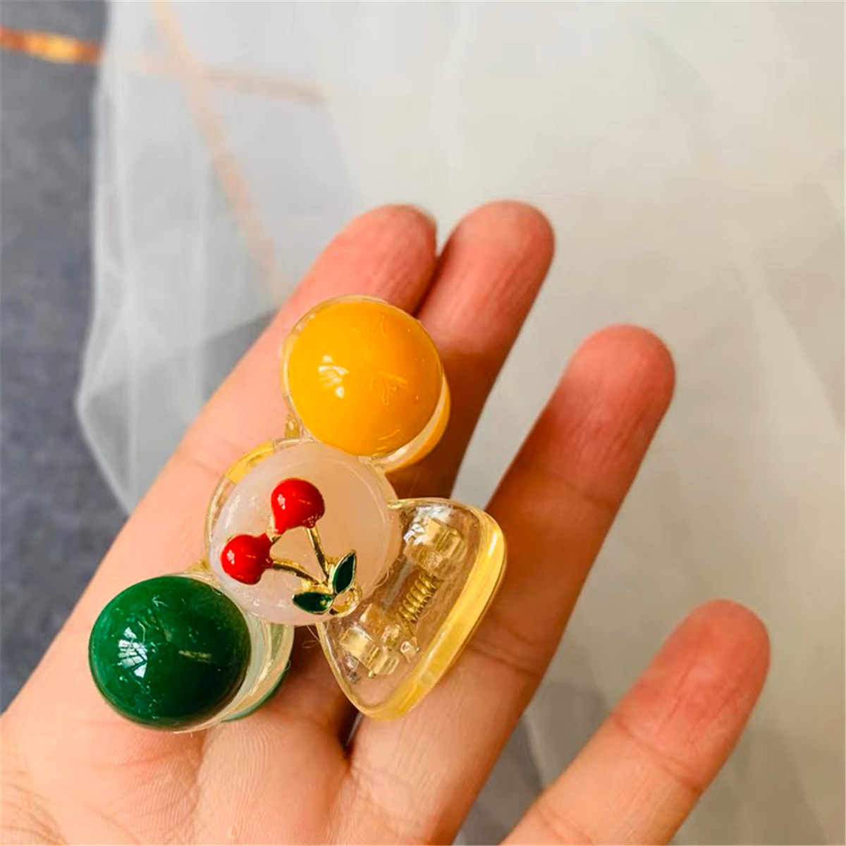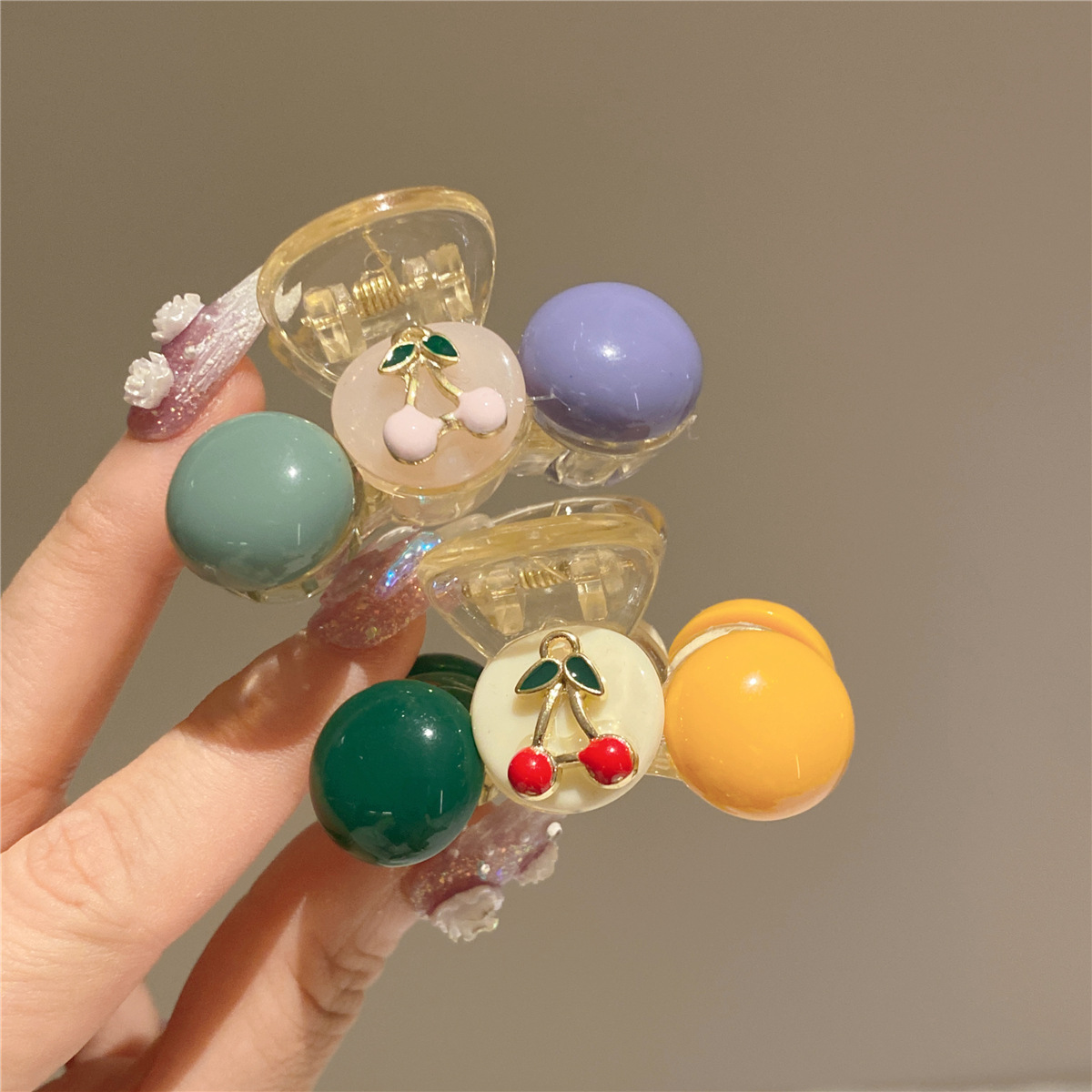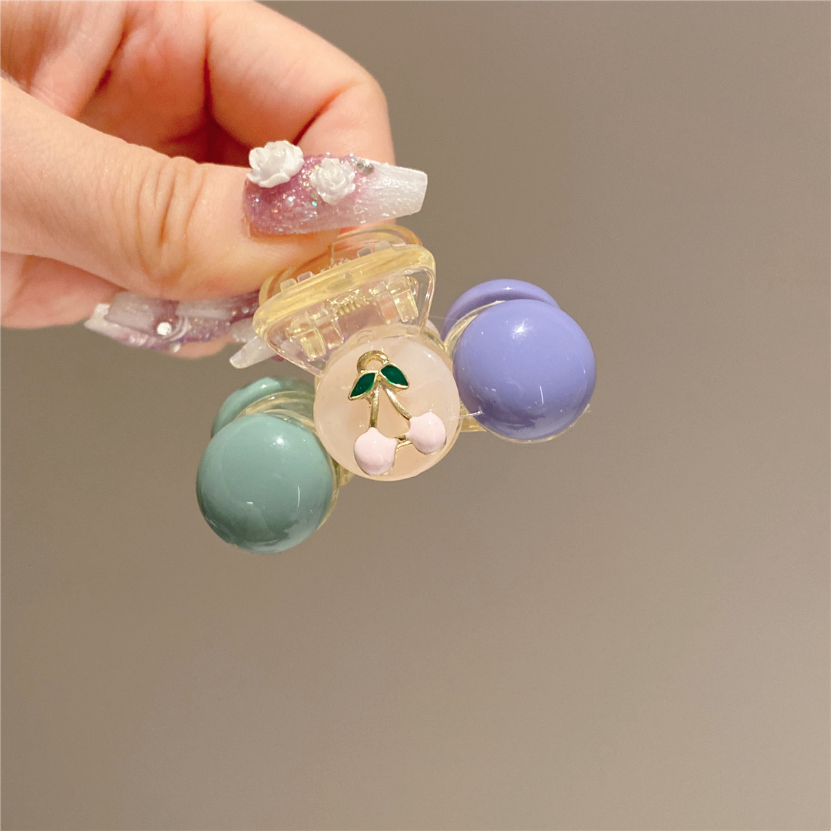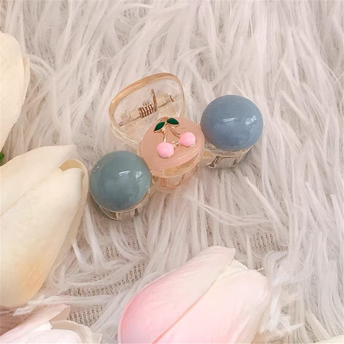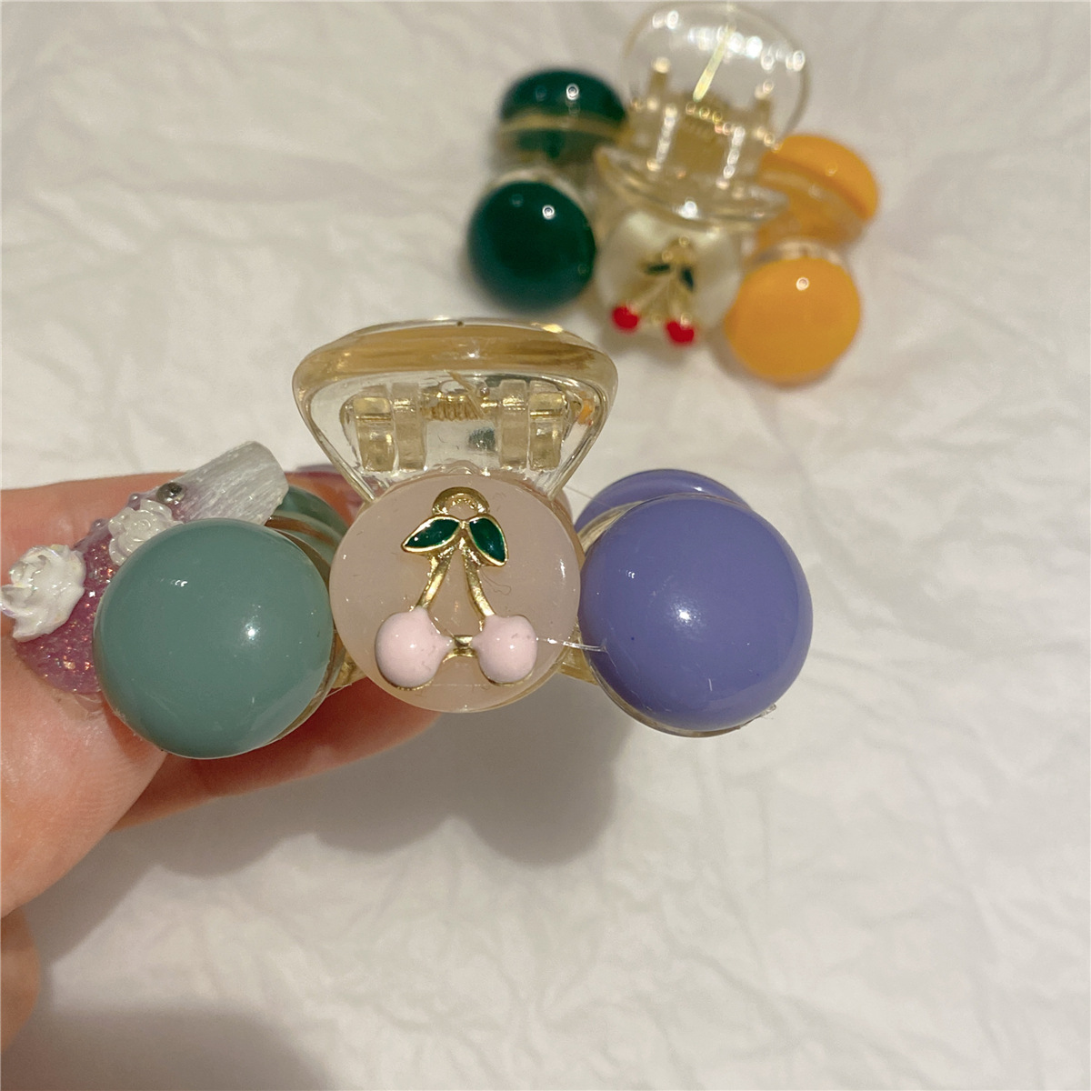 网红优雅撞色樱桃可爱发夹前额刘海侧边夹小鲨鱼夹增高马尾夹发饰