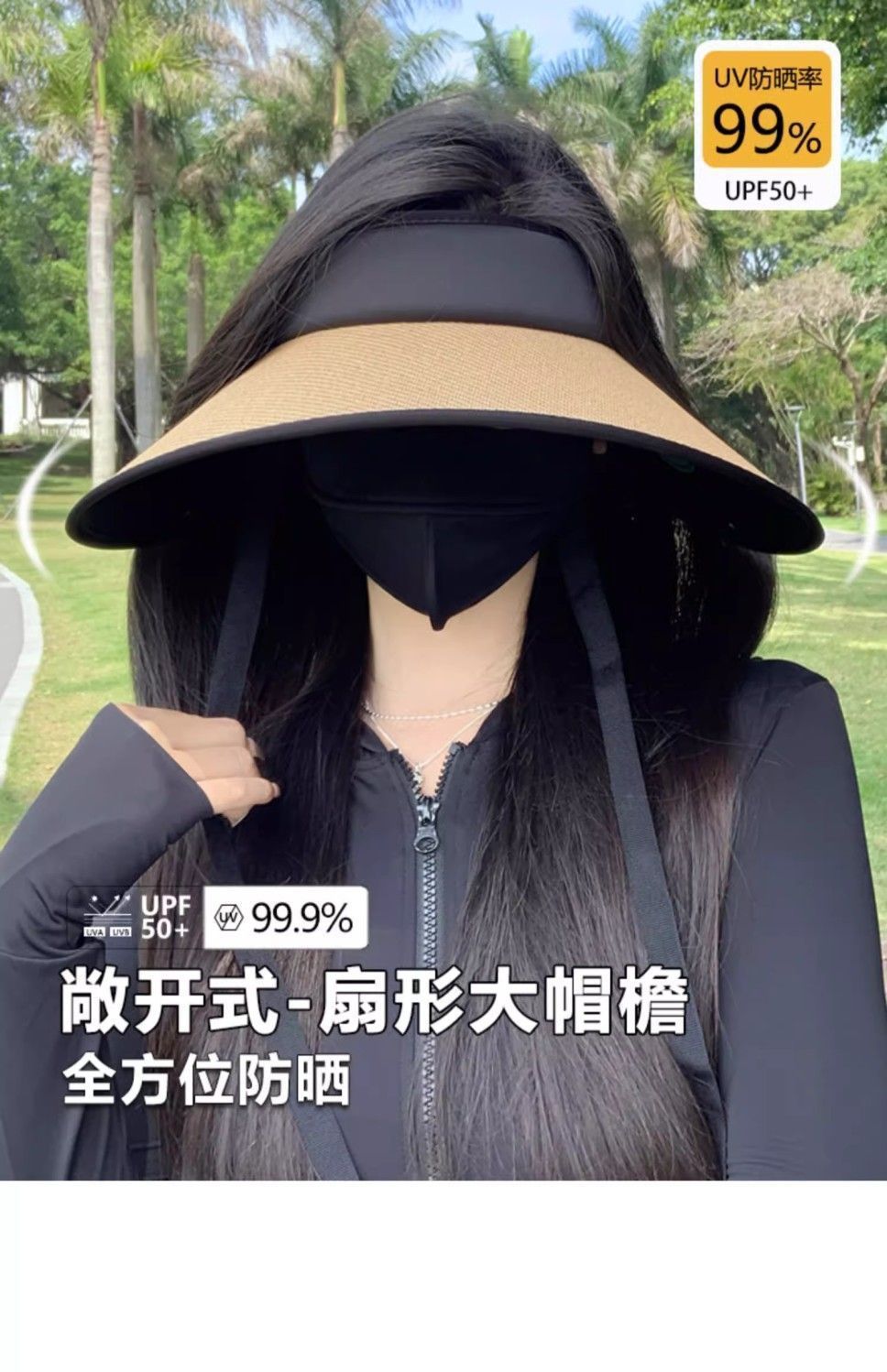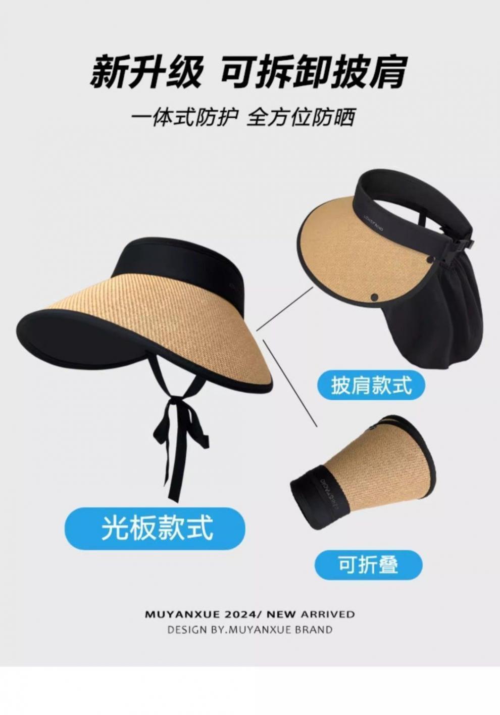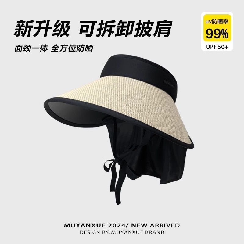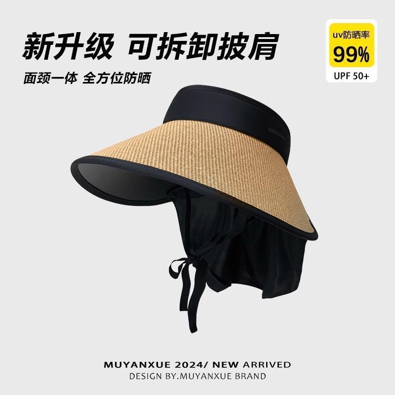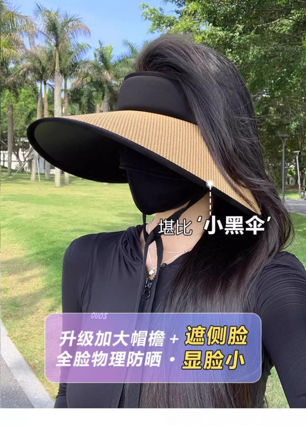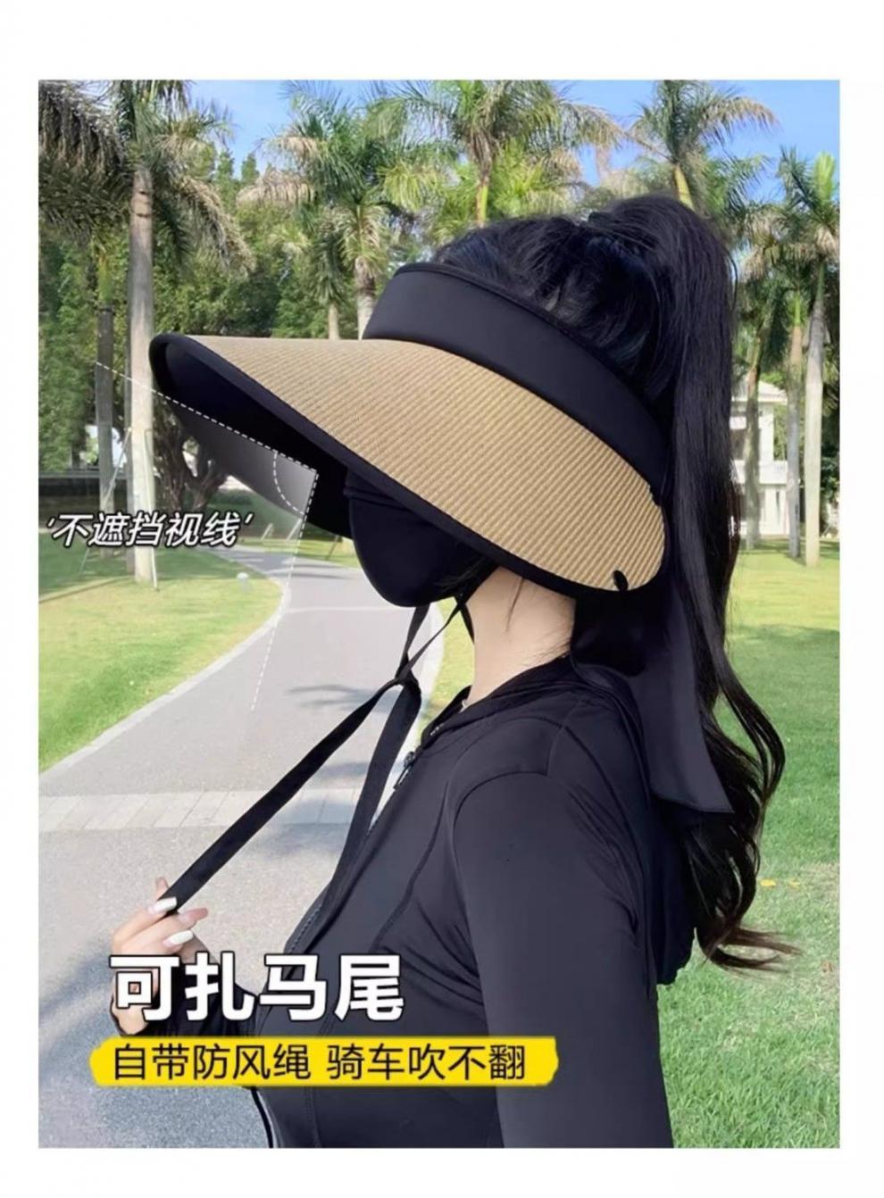 加大帽檐空顶帽女夏季防紫外线后护颈遮阳帽可折叠出行沙滩太阳帽