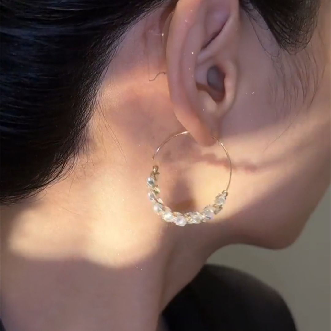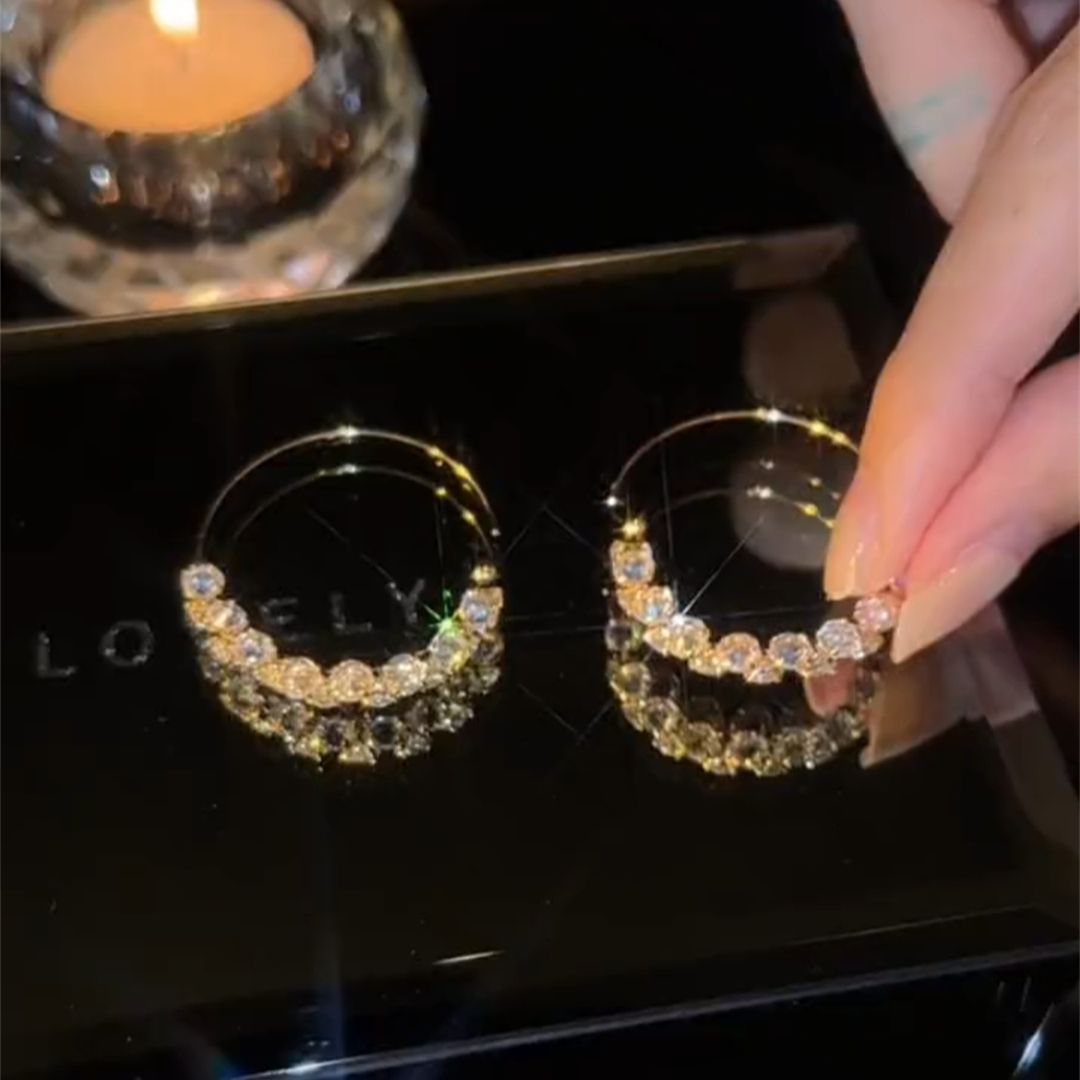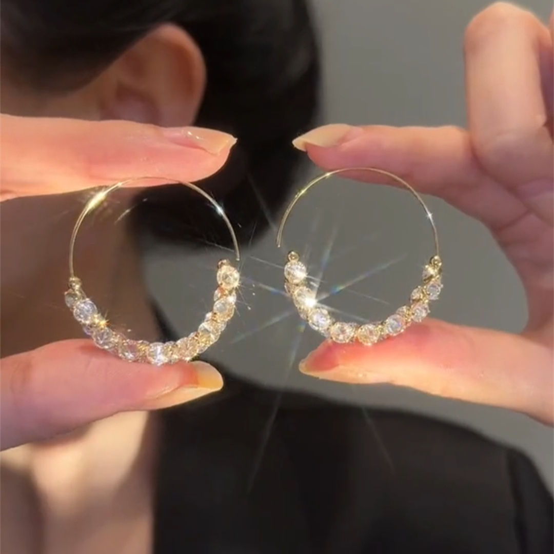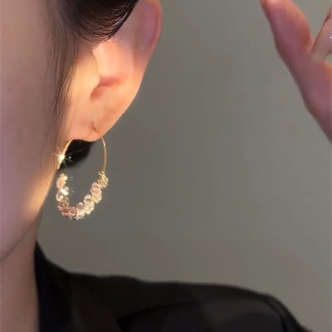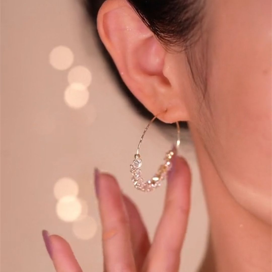 高级感C型锆石花耳圈耳环女设计感网红百搭耳饰2023新款时尚耳坠