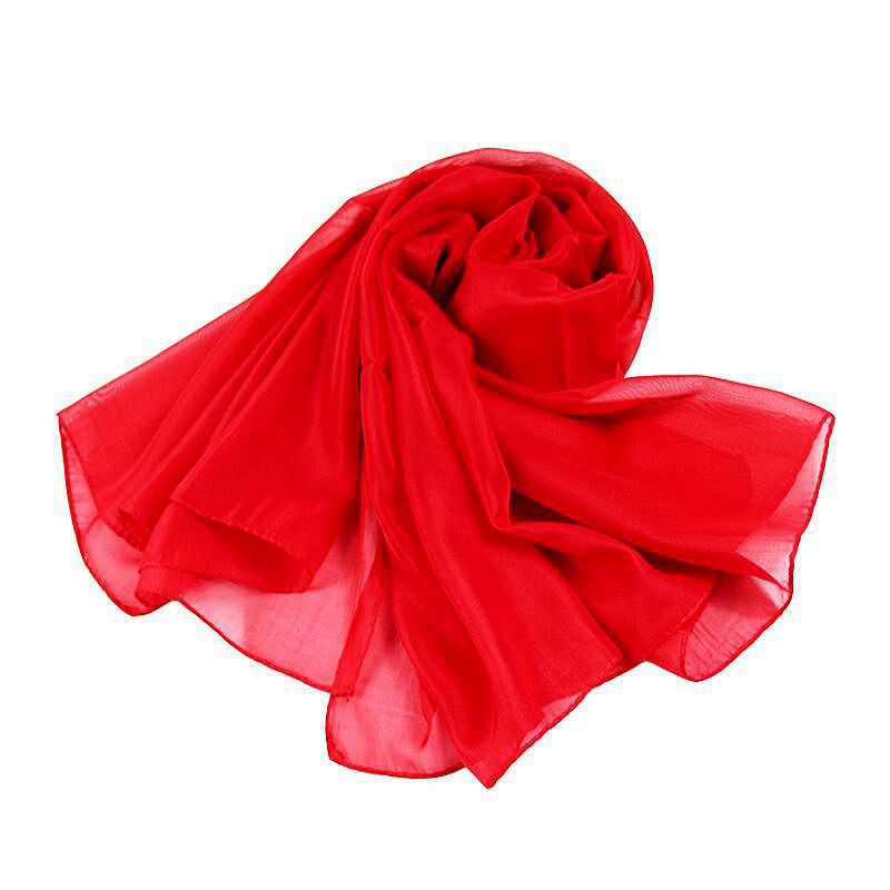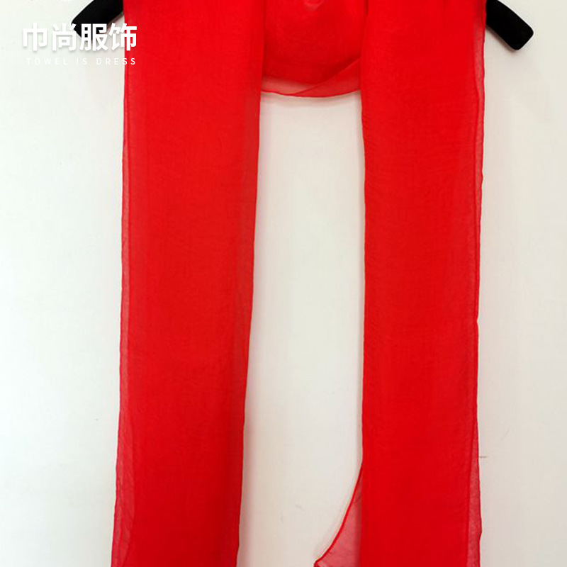 供应纱巾中国红百搭雪纺舞蹈大红长款披巾女围巾多种颜色小长丝巾