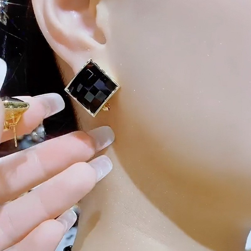 日韩气质夸张几何菱形黑色银针耳钉新款潮简约时尚百搭耳环耳饰女