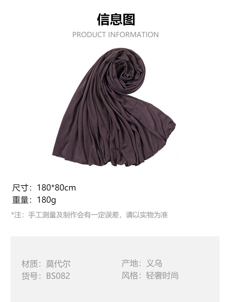 新款跨境热销纯色莫代尔棉汗布长巾秋冬款丝光棉保暖头巾女款围巾