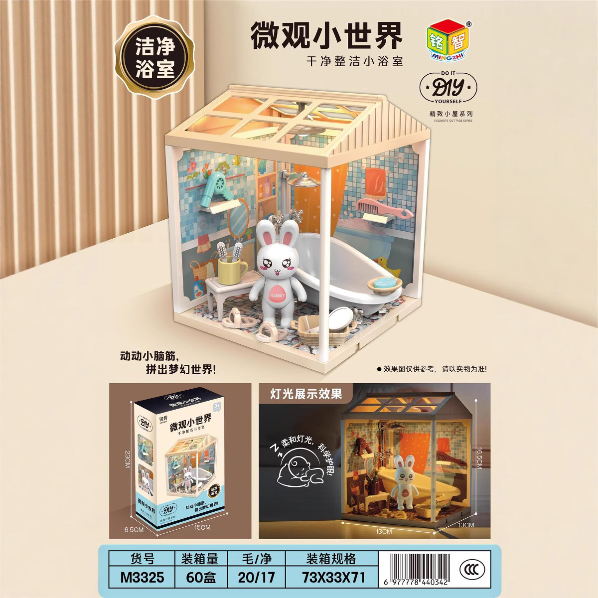 新品微观小世界diy小屋灯卧室书房浴室积木拼装手工模型房子玩具