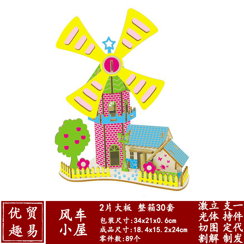 木制3D立体拼图益智玩具小学生摆件拼装建筑儿童手工积木质模型