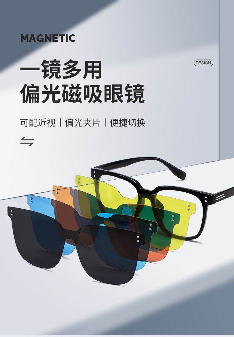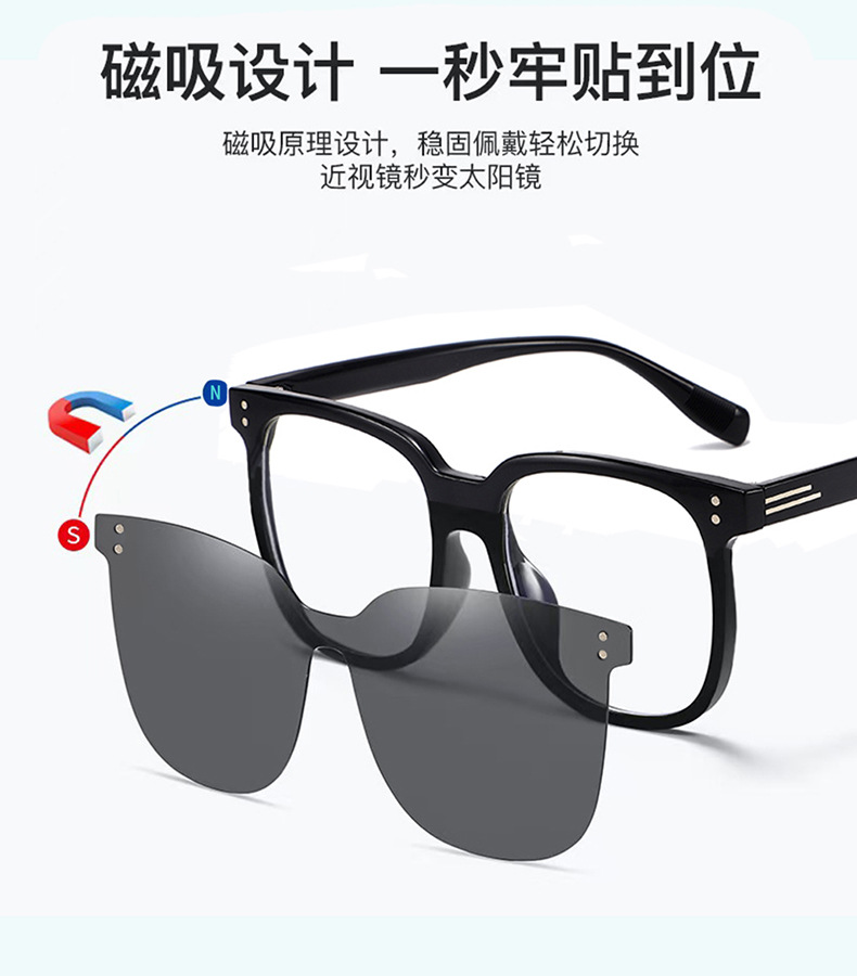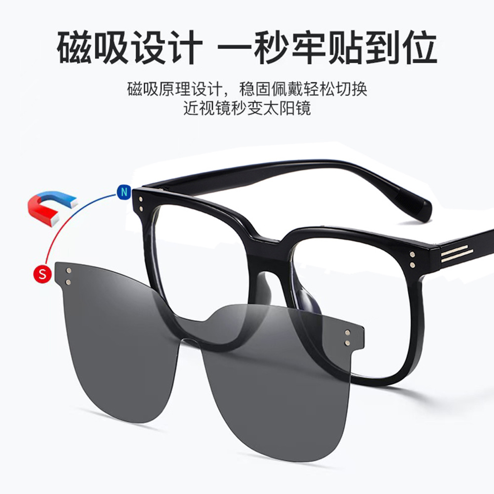 抖音新款磁吸眼镜三合一偏光太阳镜开车专用近视墨镜夹片磁吸套镜