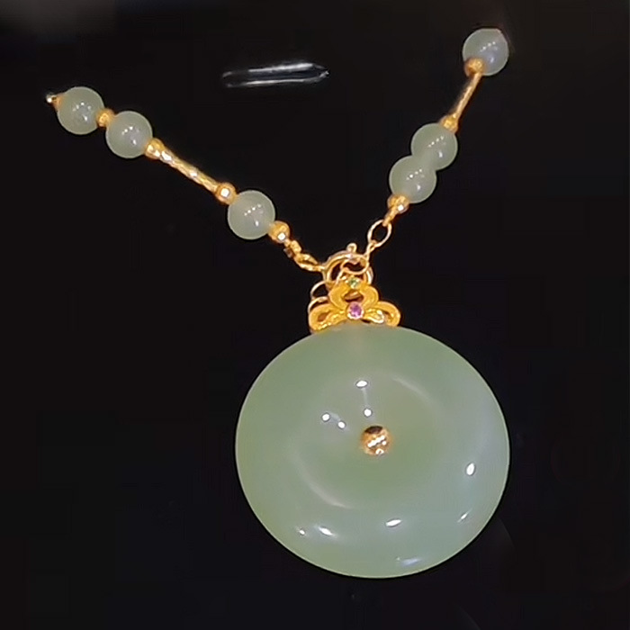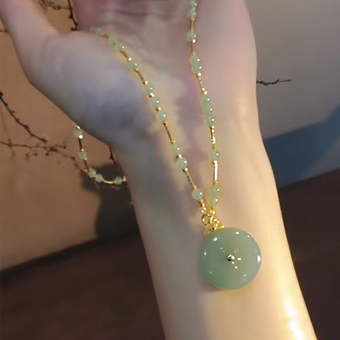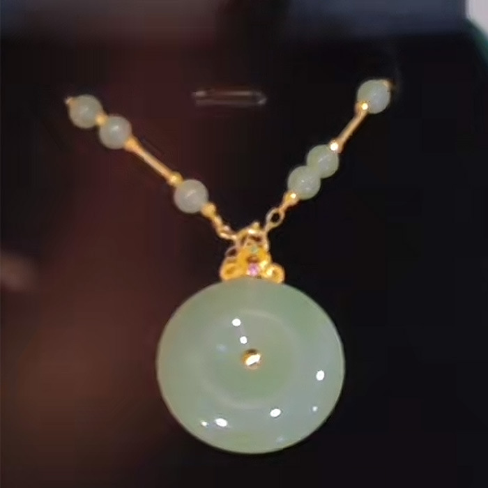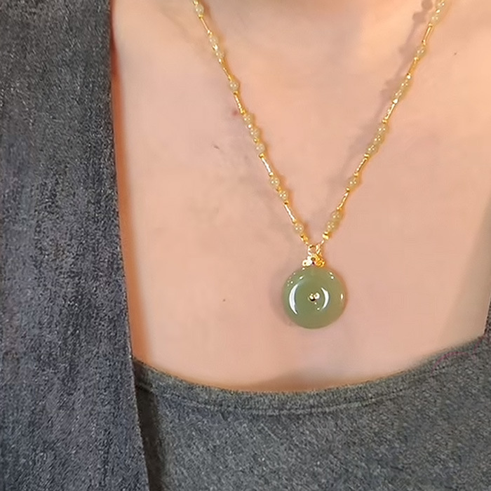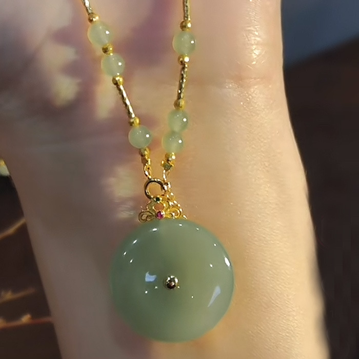 新款平安扣吊坠女款仿和田玉苹果绿猫眼石镶嵌项链挂件高级感设计