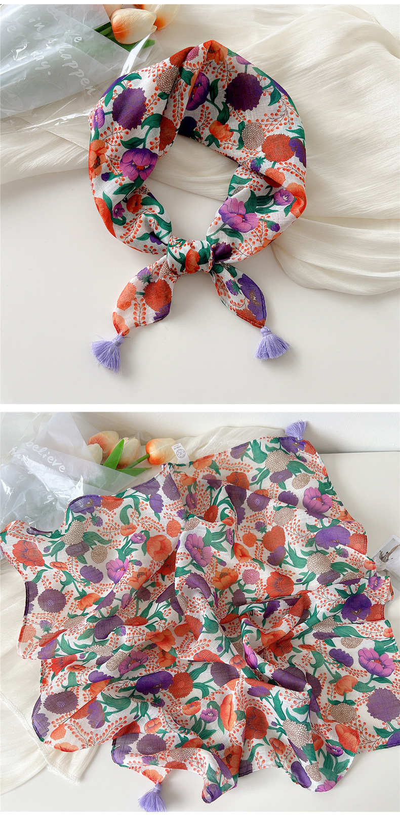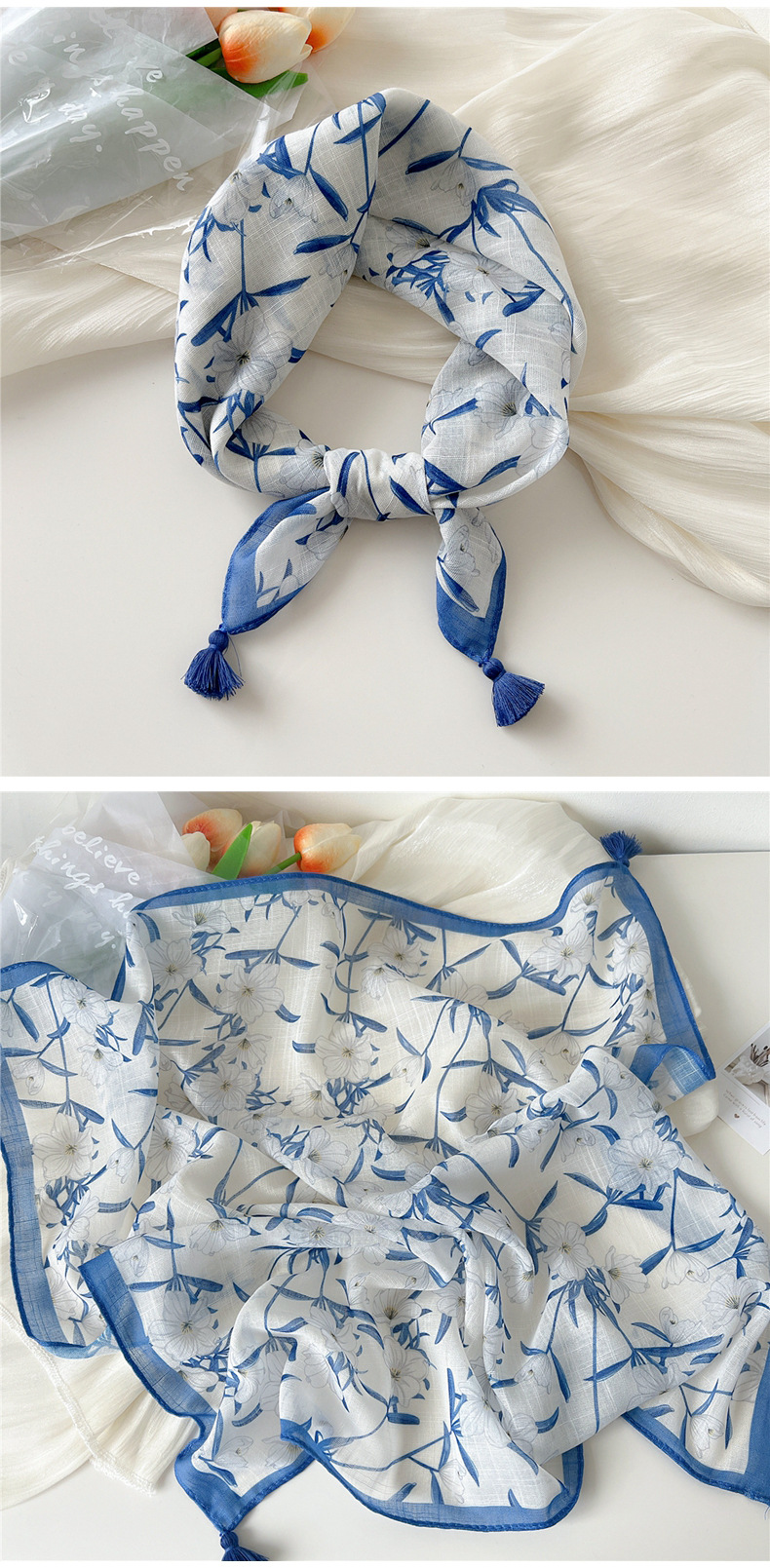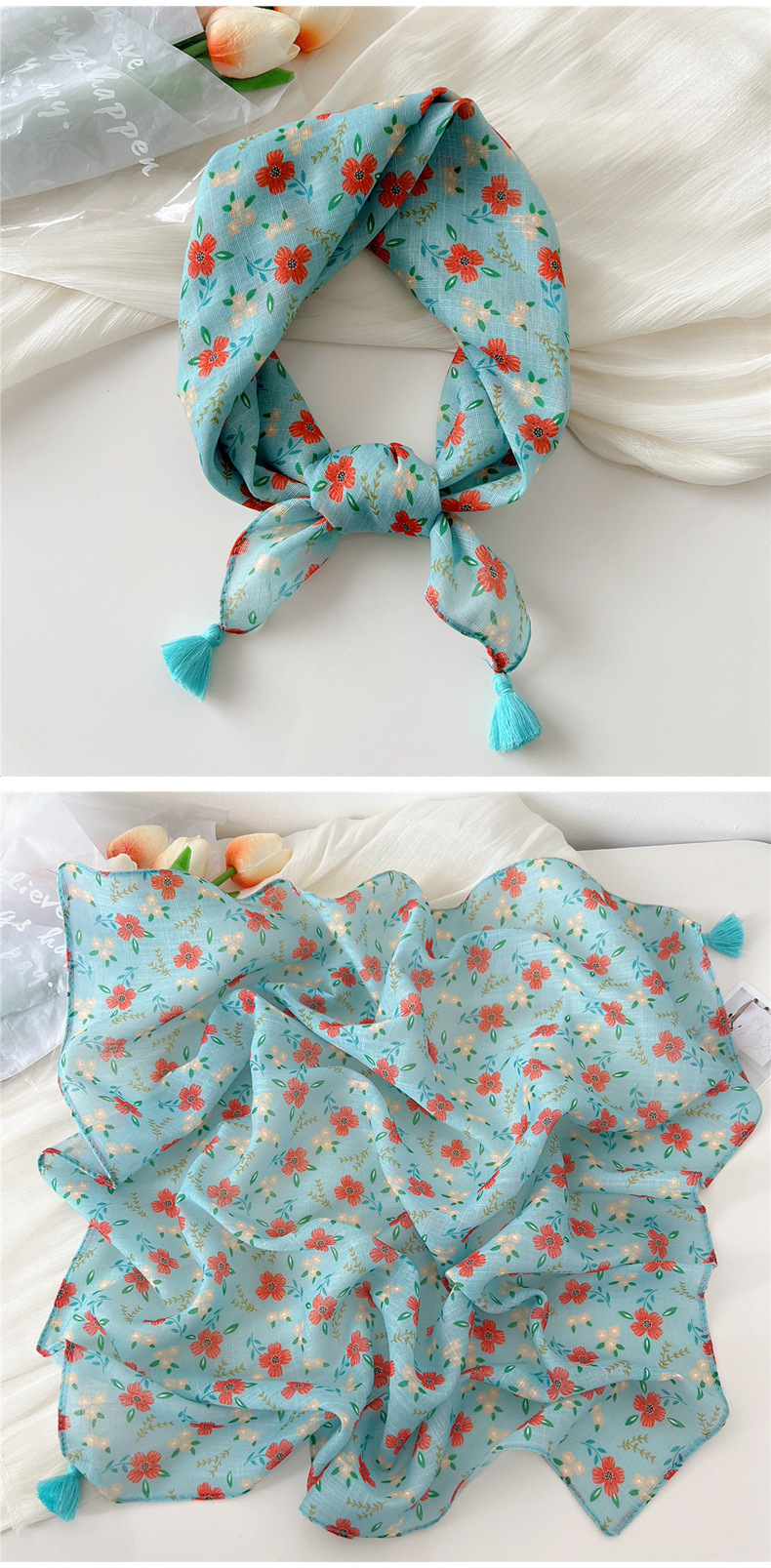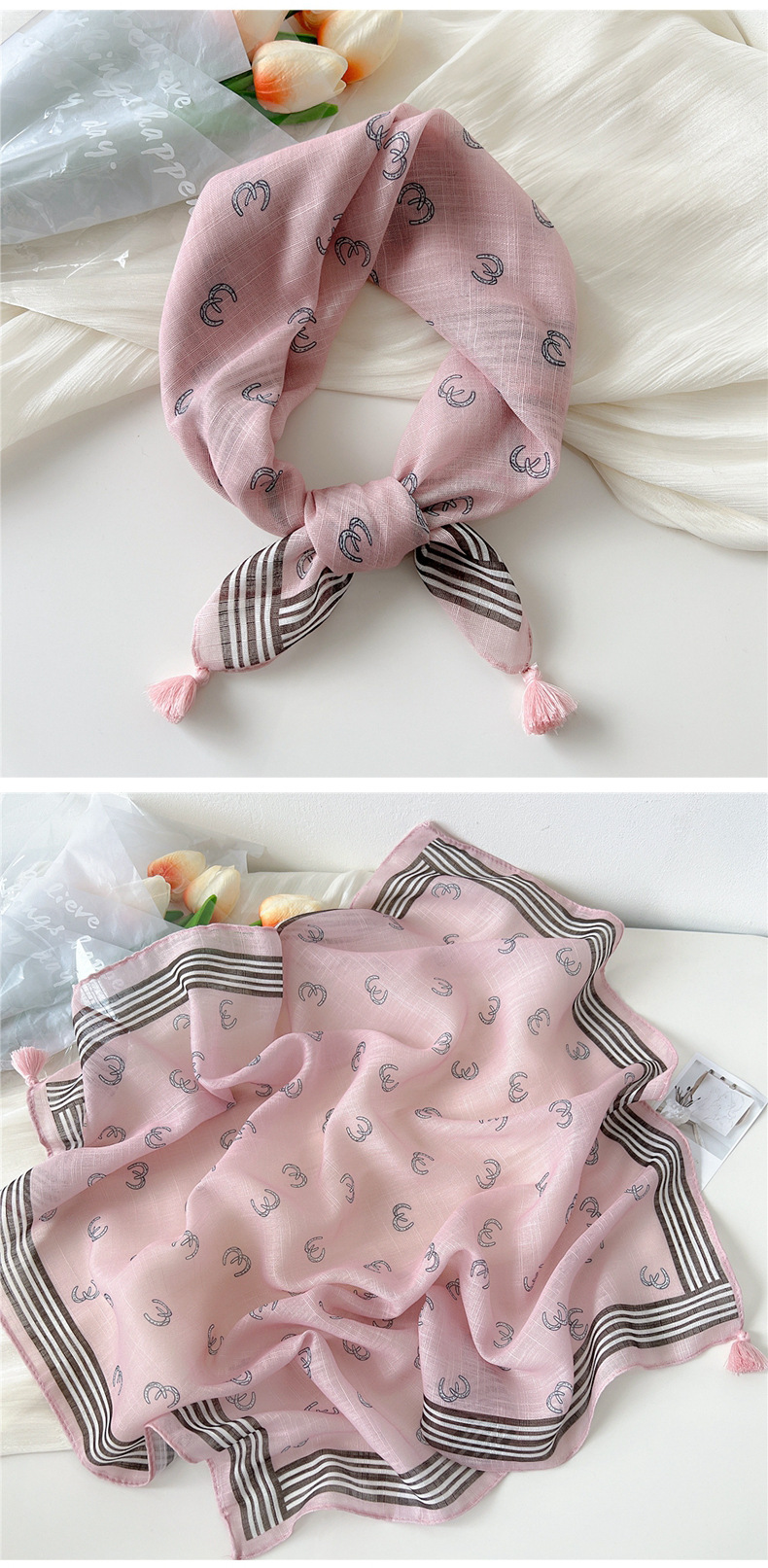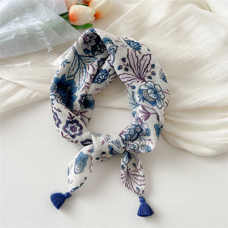 60挂须棉麻小方巾丝巾女春秋护颈百搭头巾装饰领巾时尚洋气围巾