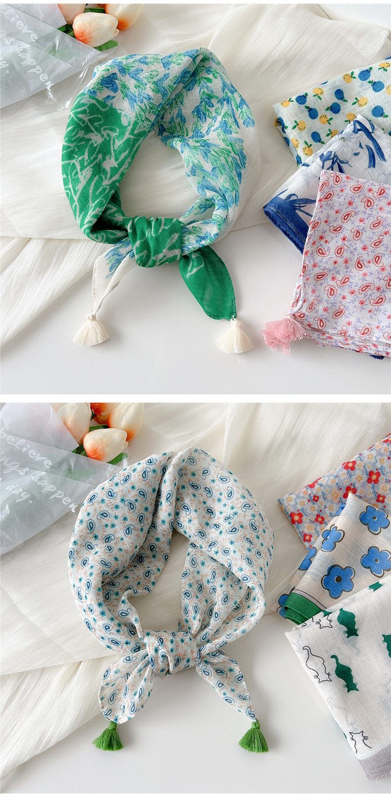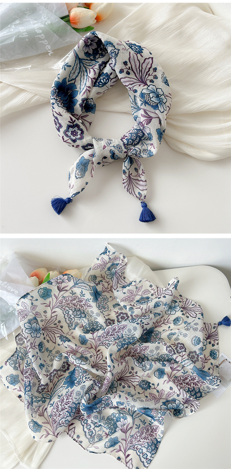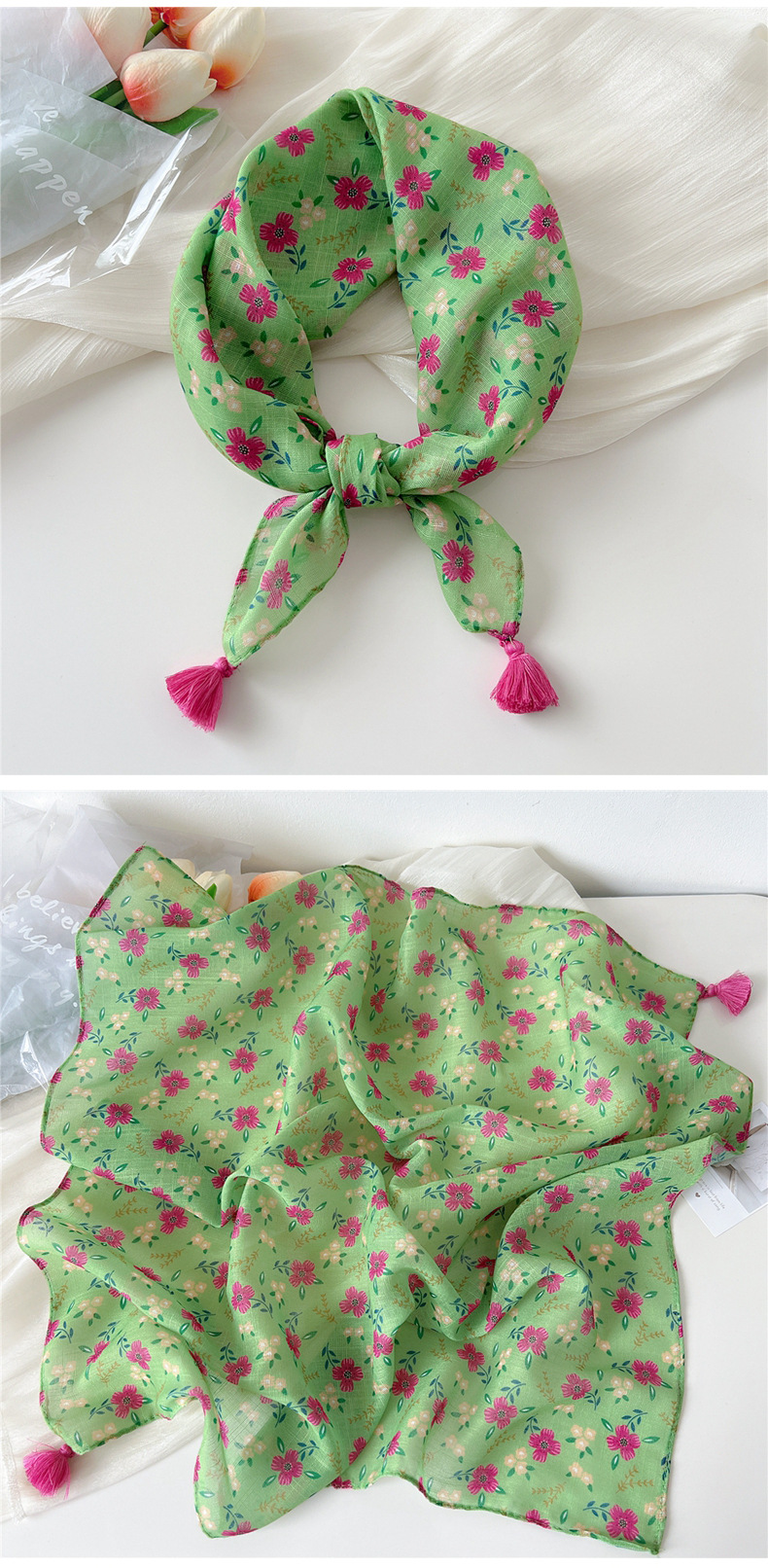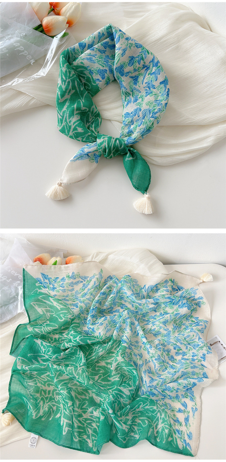 60挂须棉麻小方巾丝巾女春秋护颈百搭头巾装饰领巾时尚洋气围巾