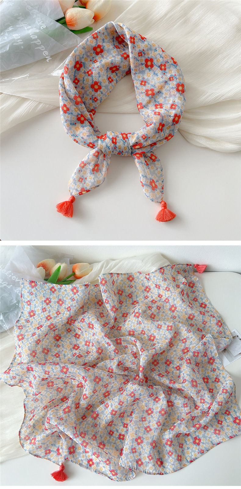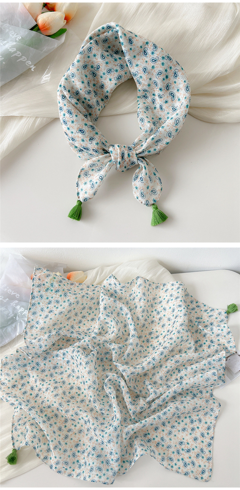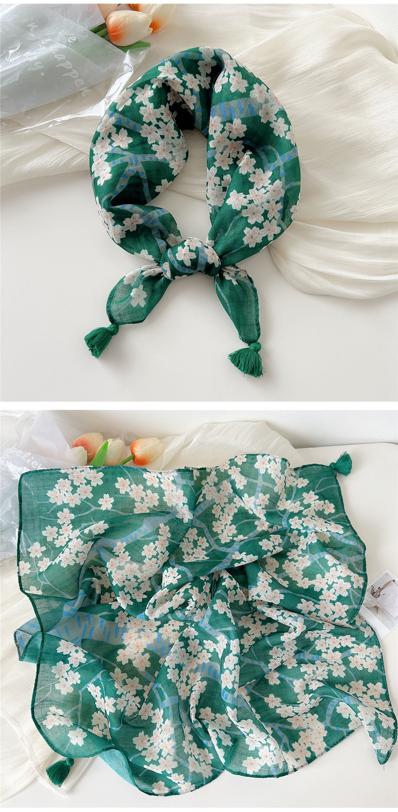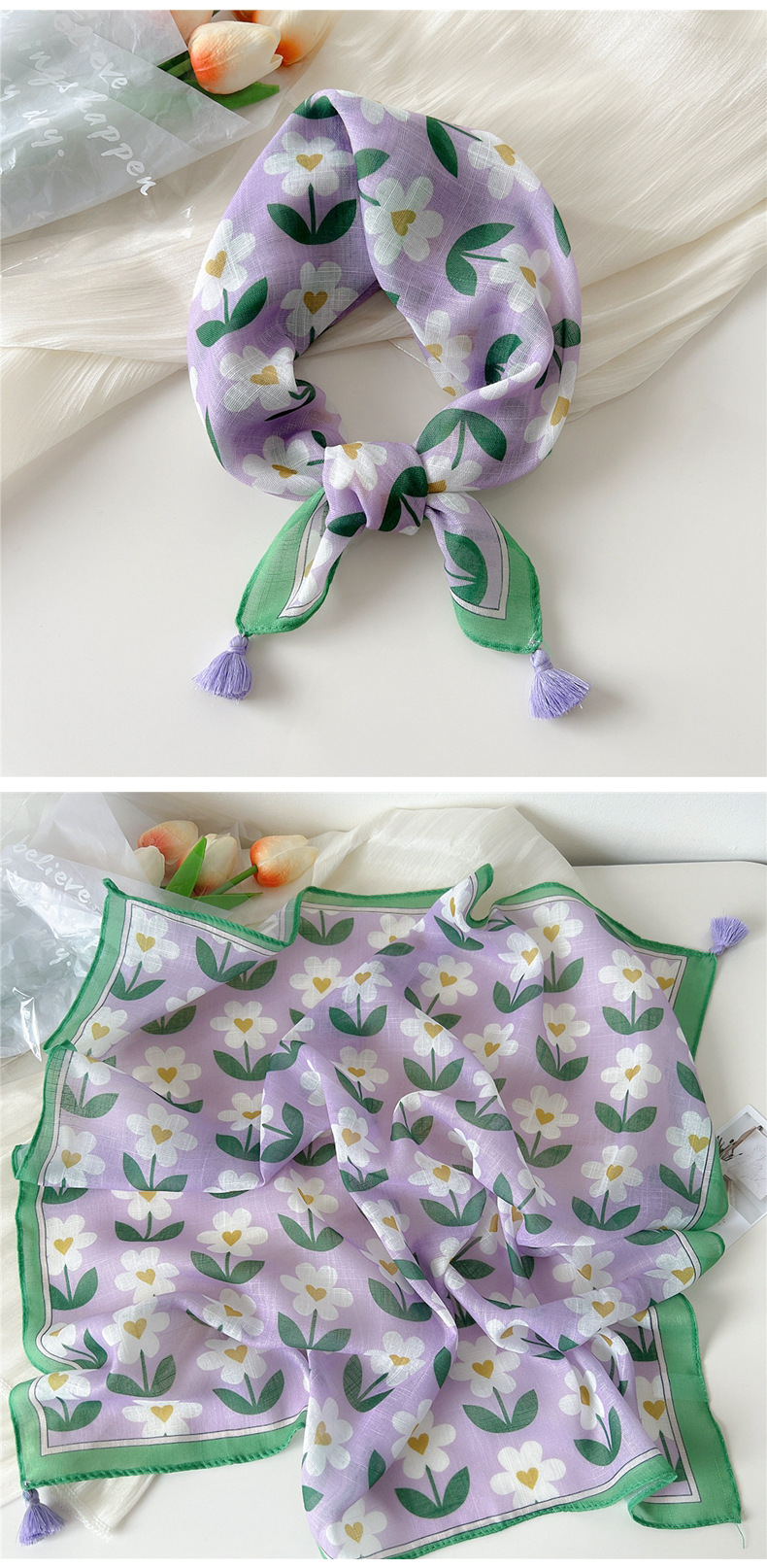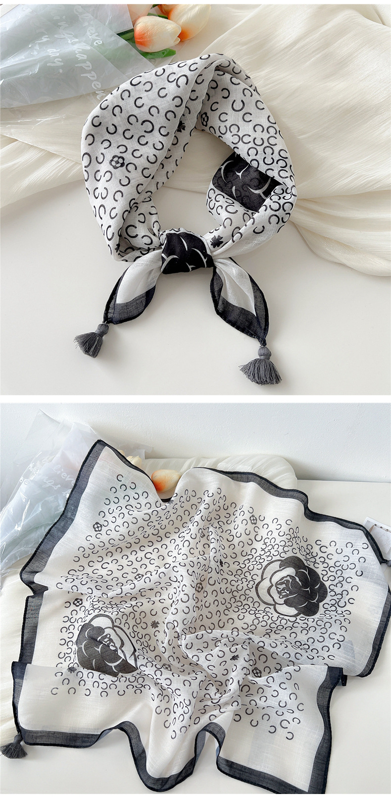 60挂须棉麻小方巾丝巾女春秋护颈百搭头巾装饰领巾时尚洋气围巾