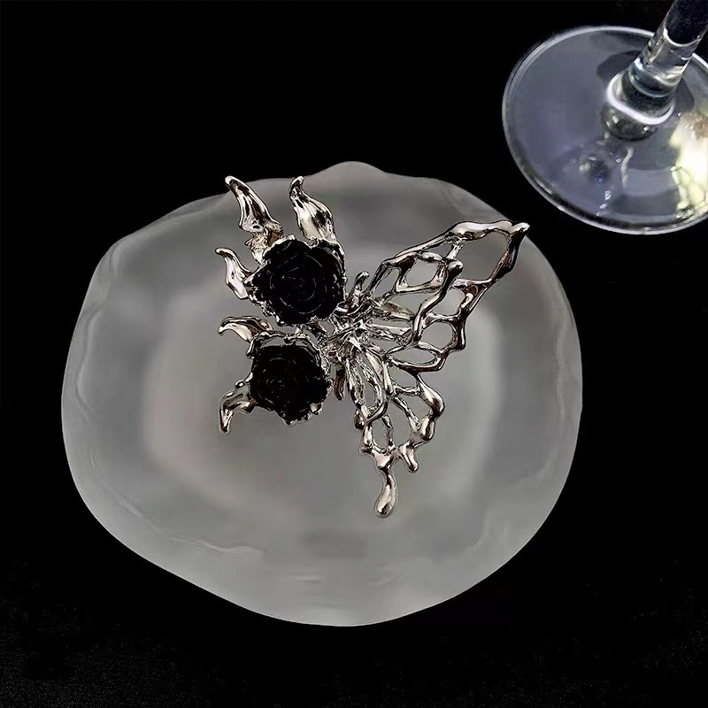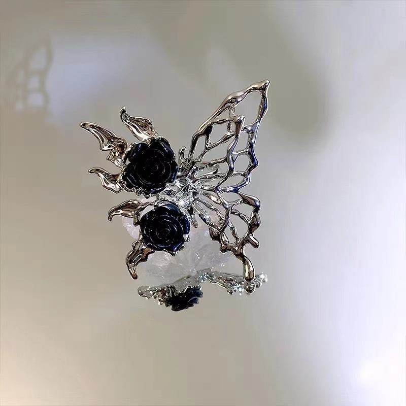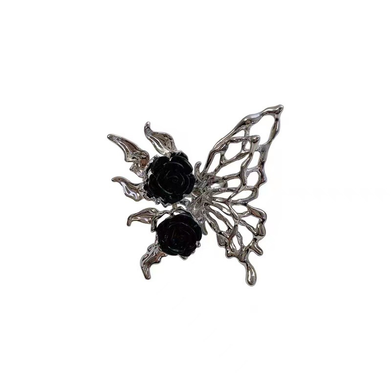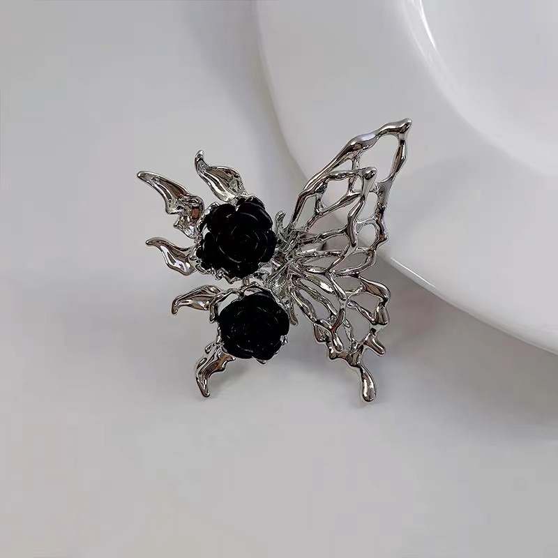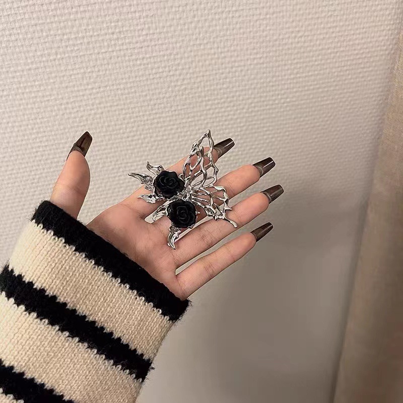 新中式暗黑系甜酷黑山茶花开气质简约口戒轻奢小众设计个性开口戒