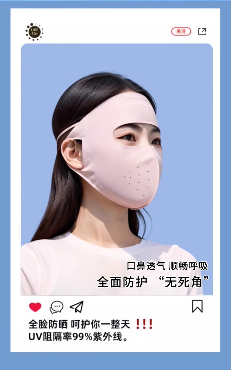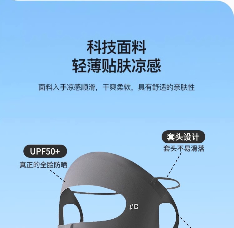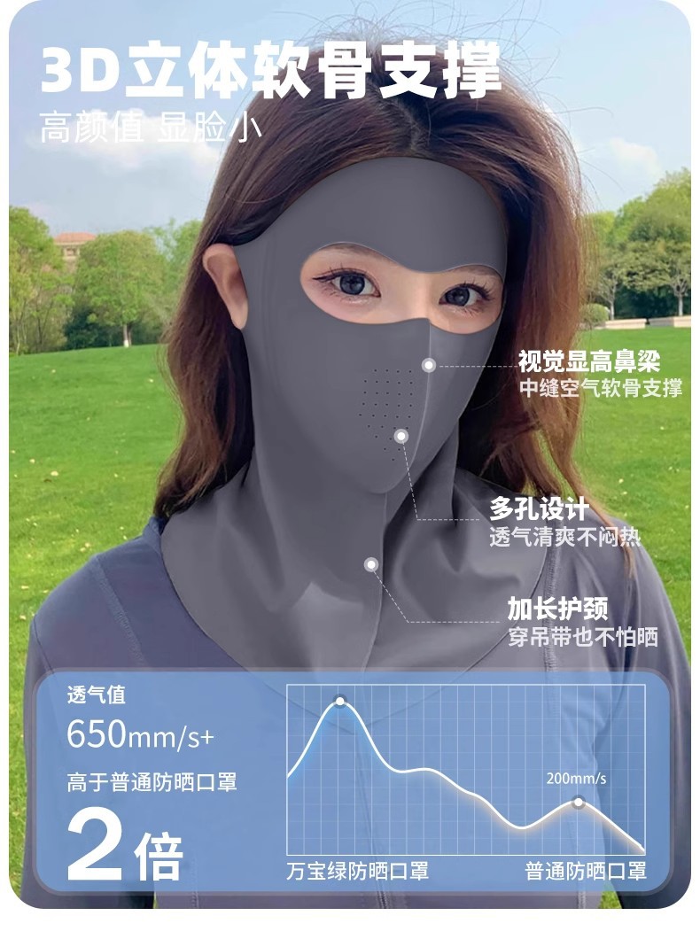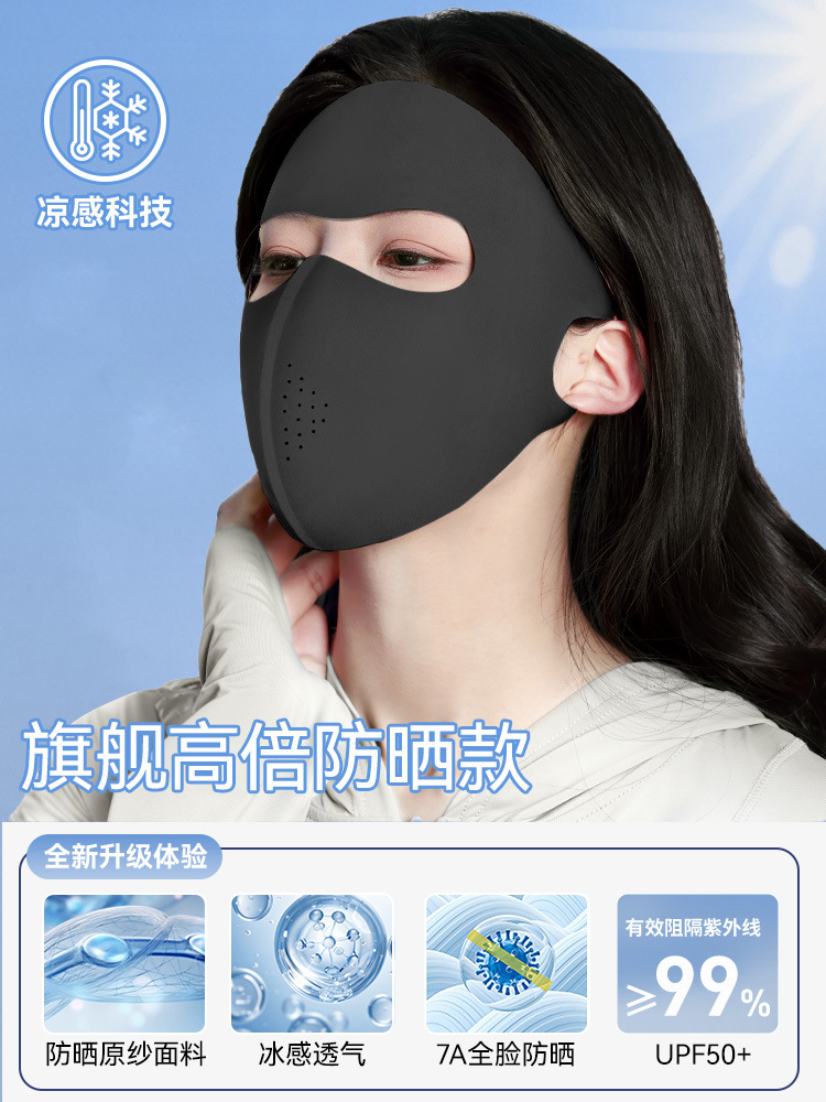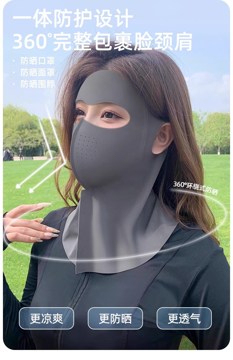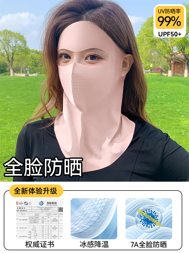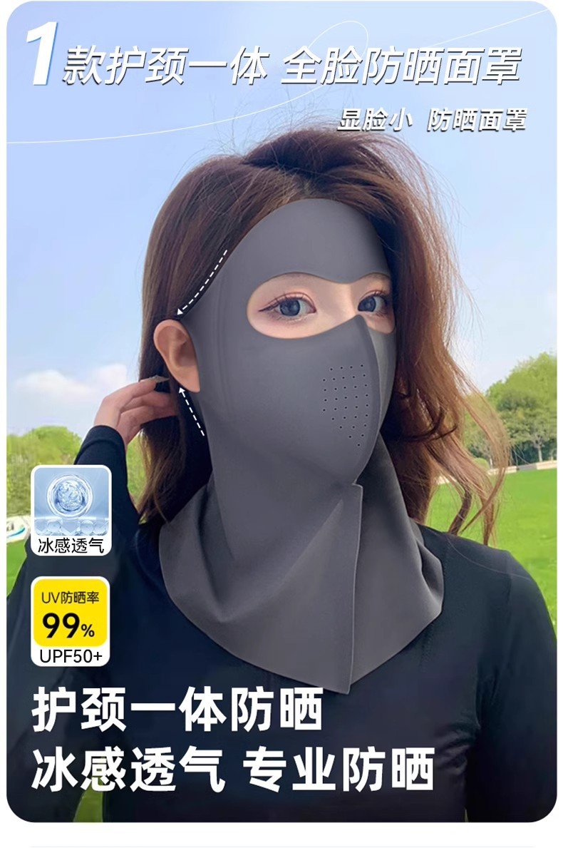 UPF50+脸基尼防晒面罩女防紫外线全脸护后脖护颈一体冰丝防晒口罩