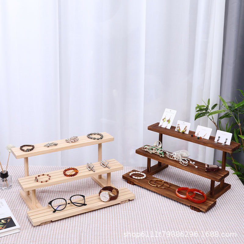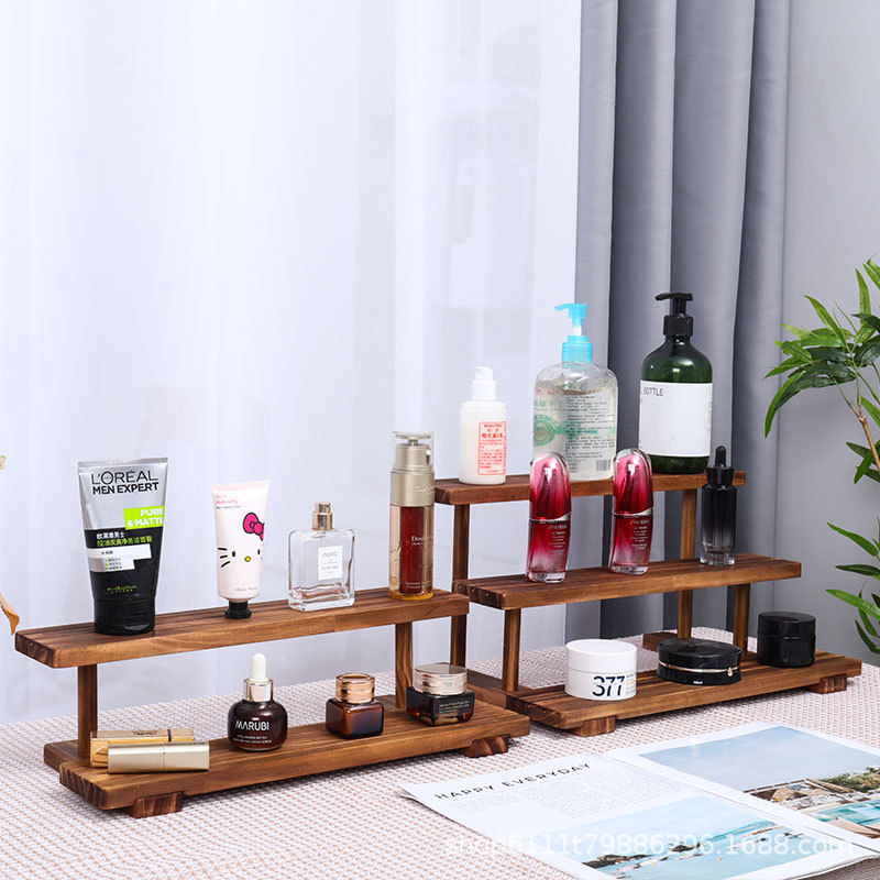 实木桌面置物架阶梯式展示架陈列香水架杯架多规格饰品梯形收纳架