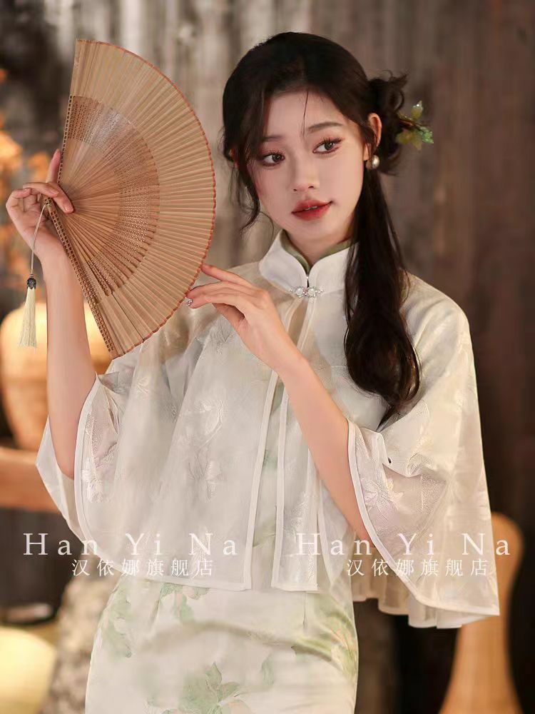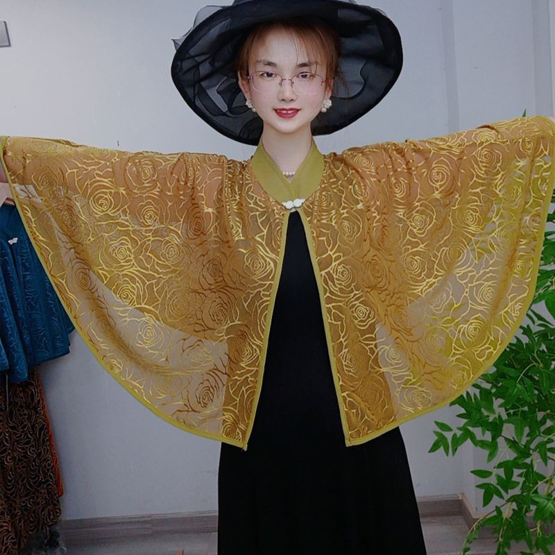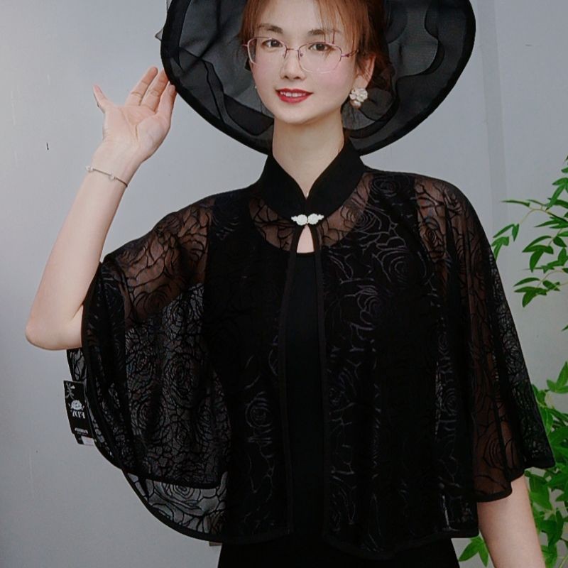 旗袍披肩外搭防晒衫夏季薄款冰丝外套短款复古斗篷配裙子洋气披风