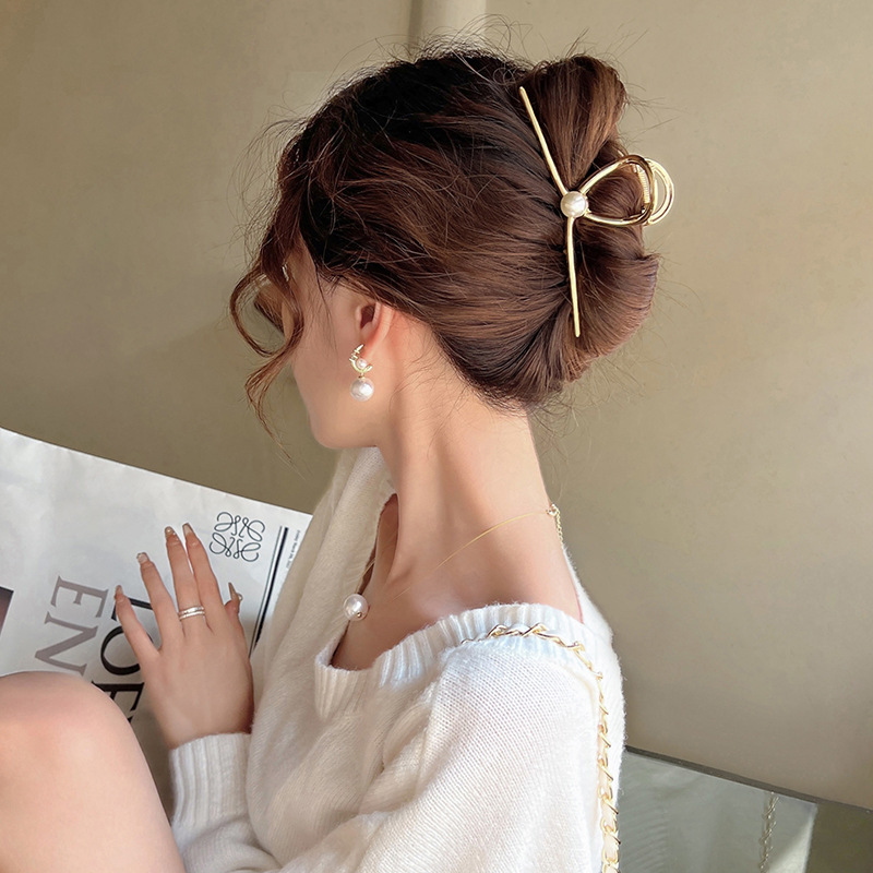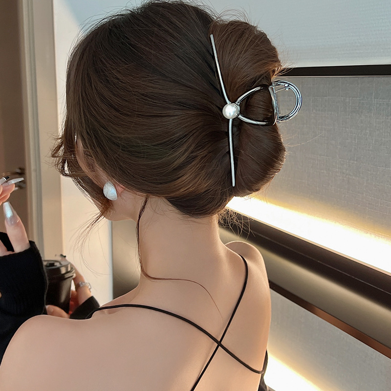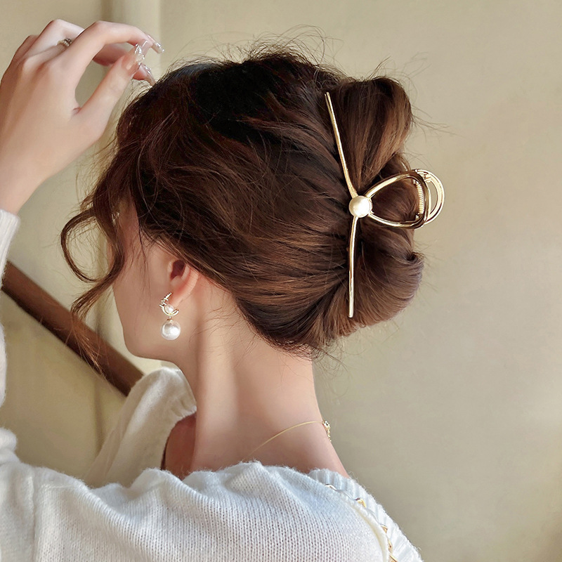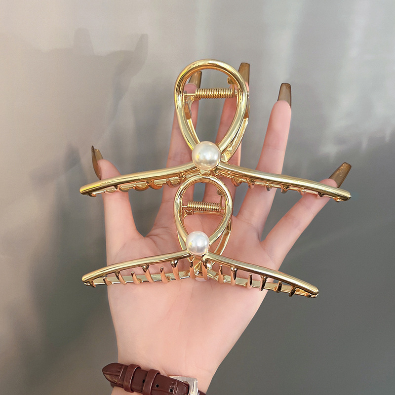 大号13.5CM法式金属珍珠抓夹2023年新款高级感鲨鱼夹子气质发夹春