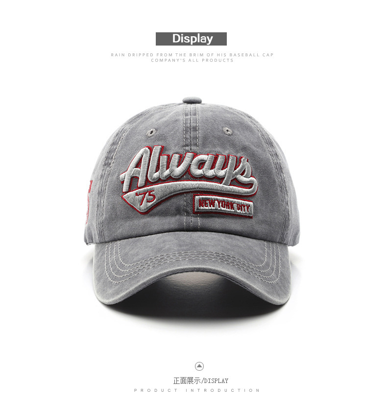 新款水洗做旧字母鸭舌帽潮个性街头男女情侣款遮阳棒球帽子防晒