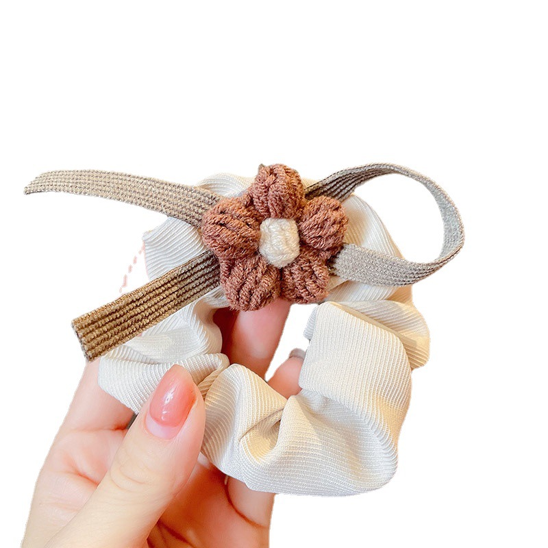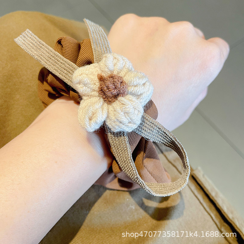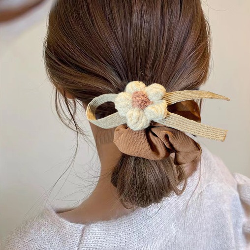 赫本风大肠发圈轻奢毛线花朵头绳森女系蝴蝶结温柔扎马尾闺蜜发绳