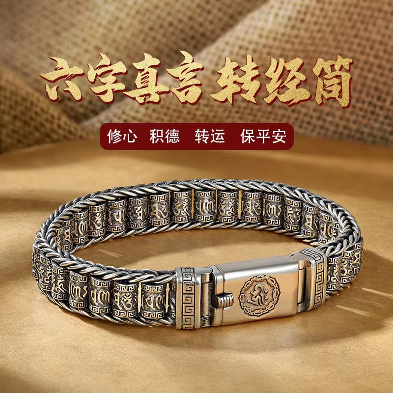 手工路路通转经筒手链男士女运转珠六字真言个性国潮复古厂家直销
