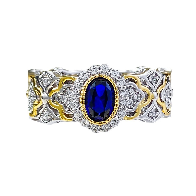 慕景珠宝 直播款S925银布家法式浪漫4*6mm仿真皇家蓝宝石戒指环