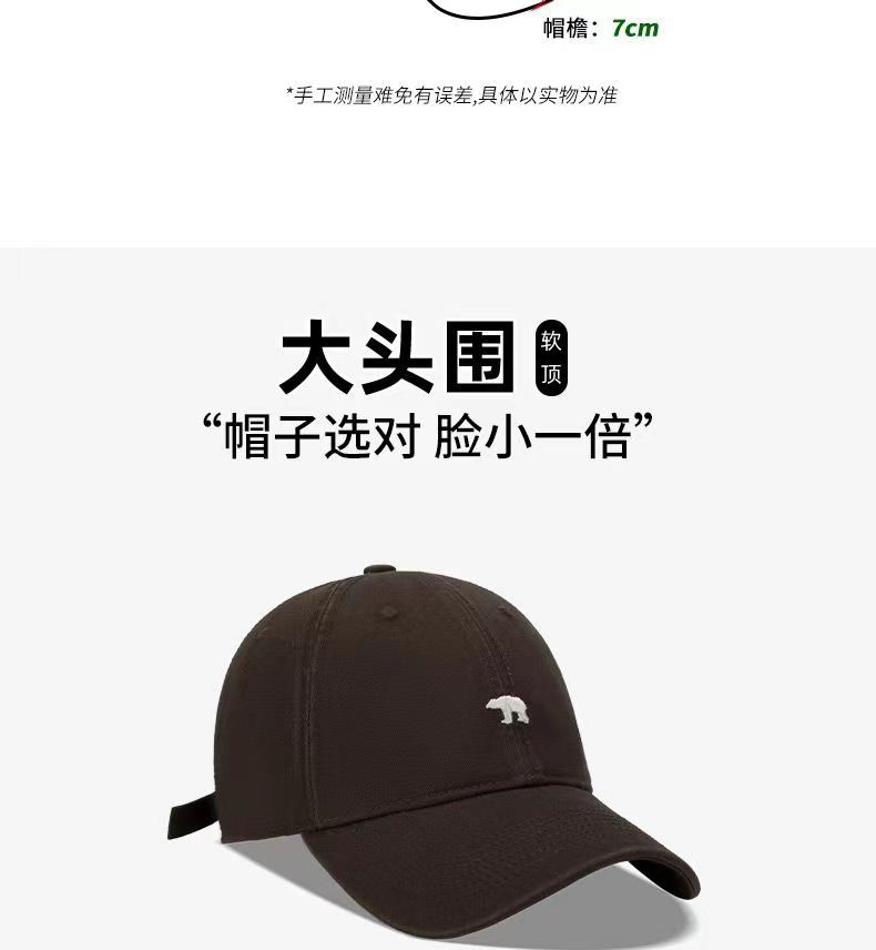 棒球帽子女2024新款软顶大头围显脸小鸭舌帽大帽檐防晒遮阳帽男潮