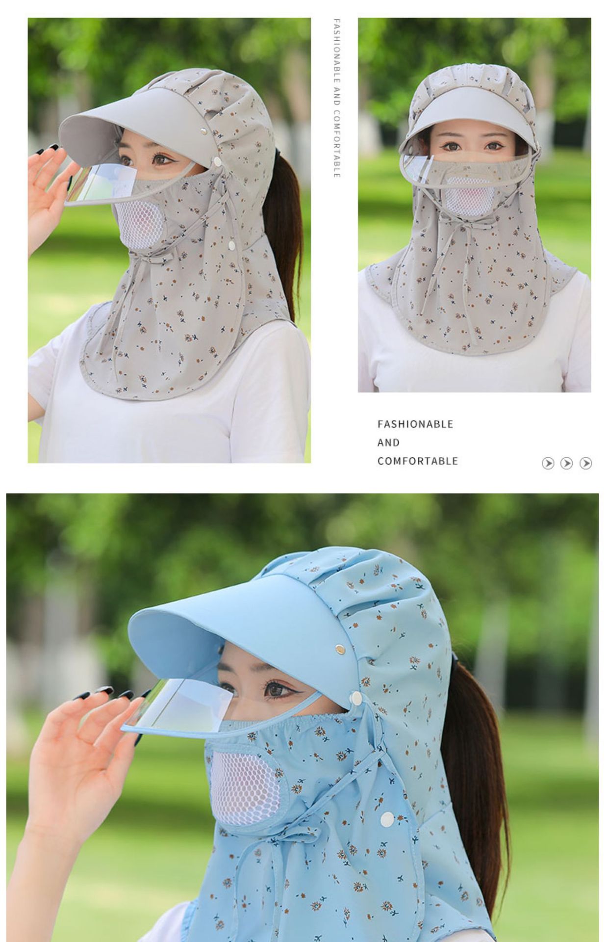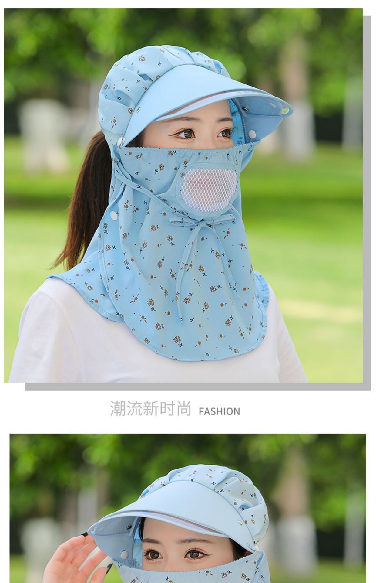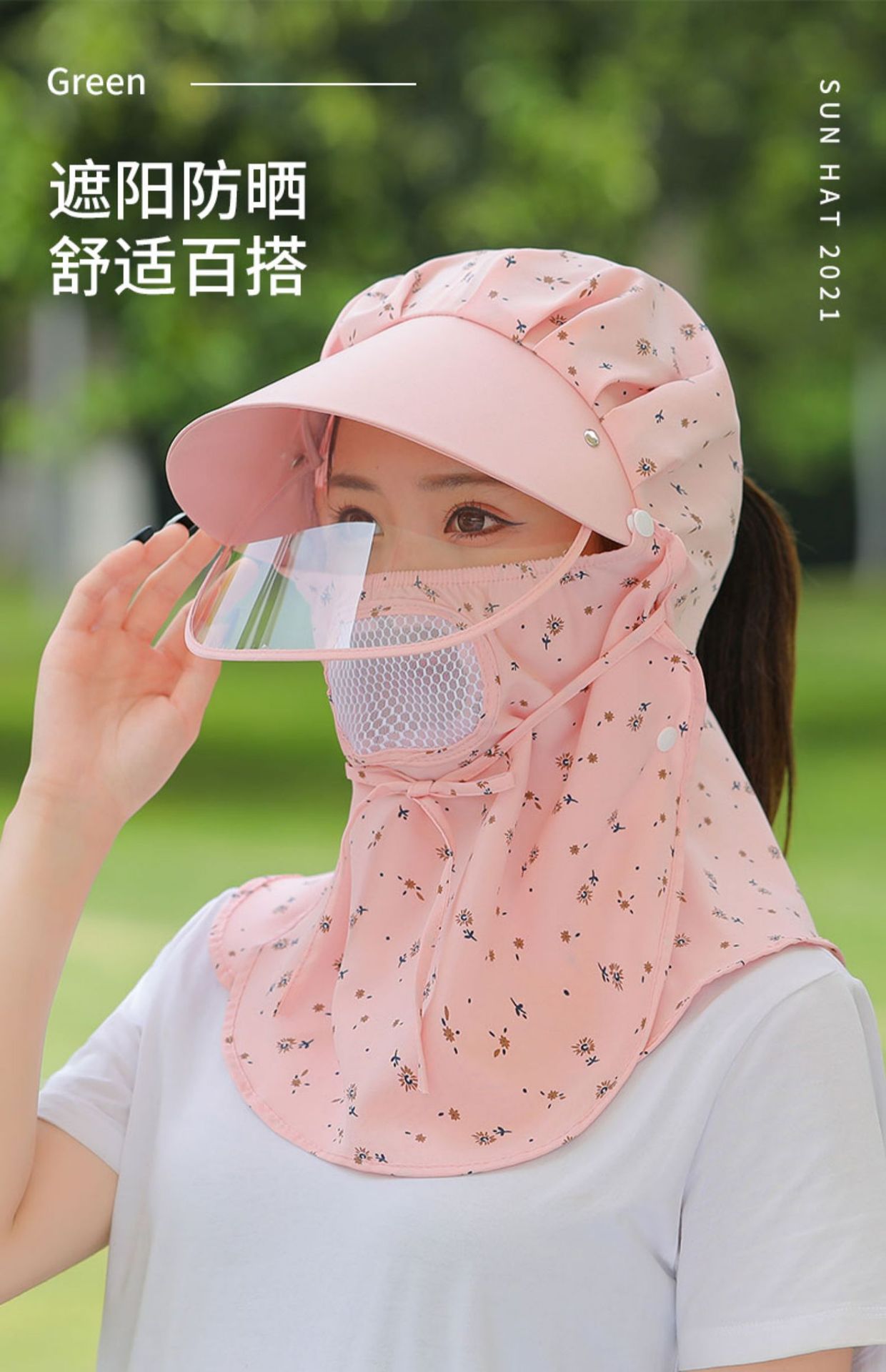 夏天女士骑车防晒太阳帽子女夏季遮阳户外薄款透气园艺遮全脸面罩