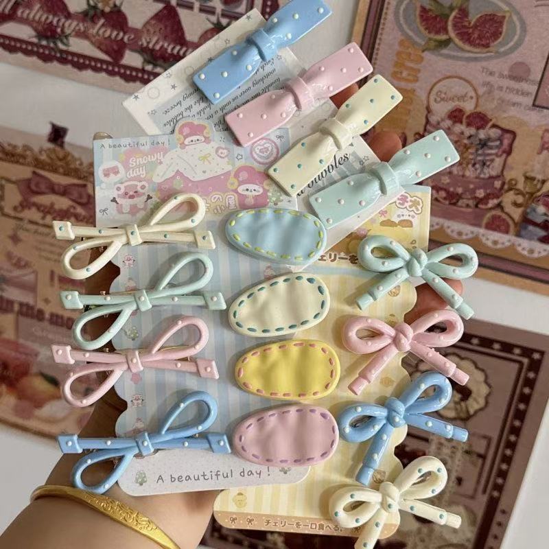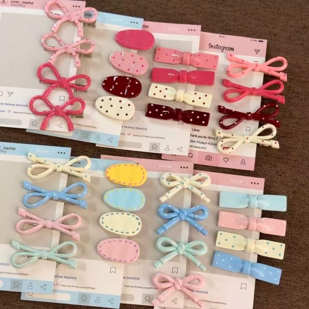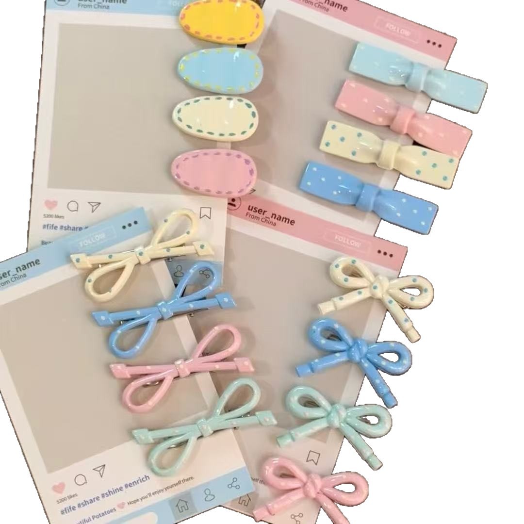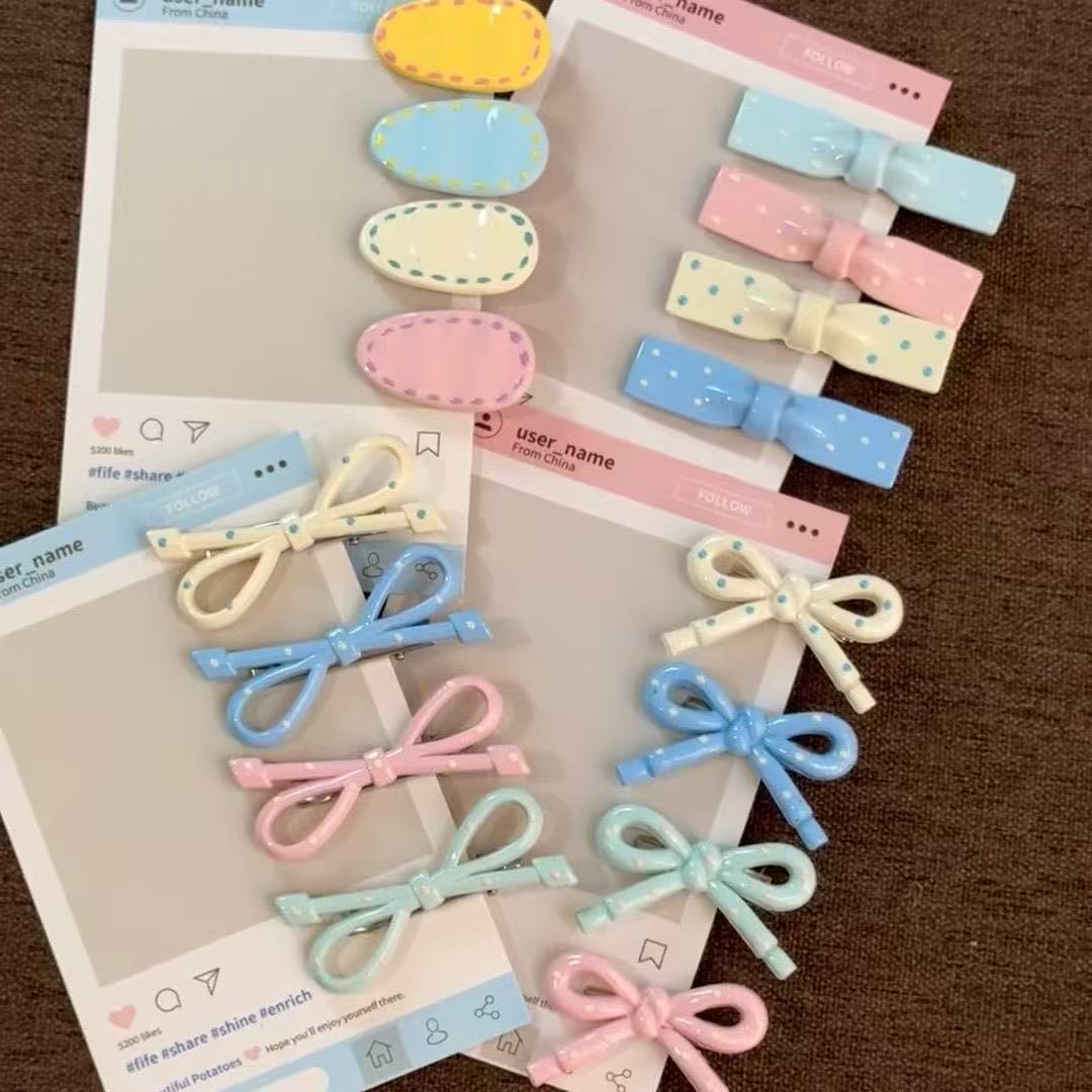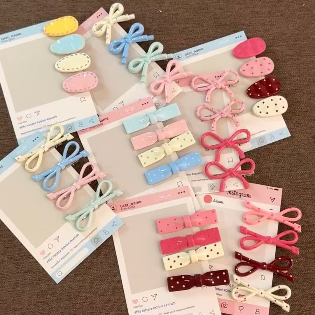 韩系简约波点粉色蝴蝶结发夹ins百搭发卡海边夹小众鸭嘴头饰发饰