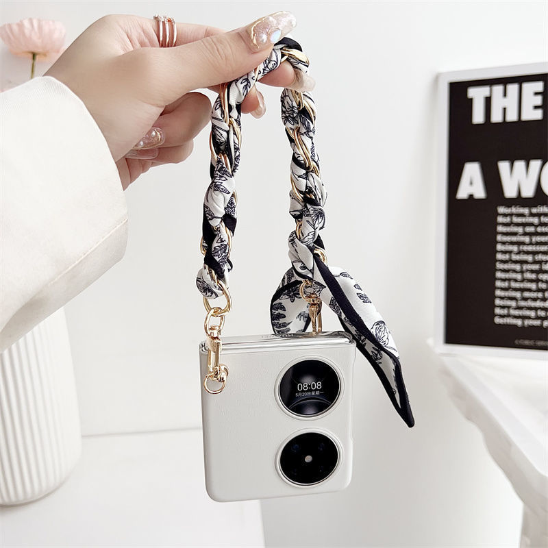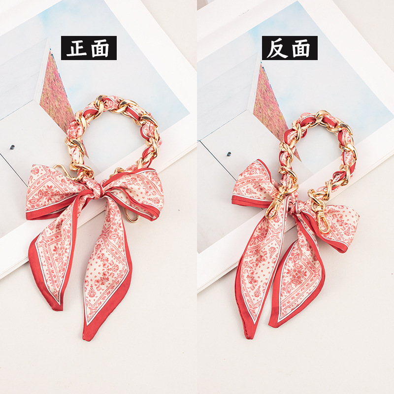 通用新款手机掛绳链条短款网红ins风编织华为链丝巾手机链高级感