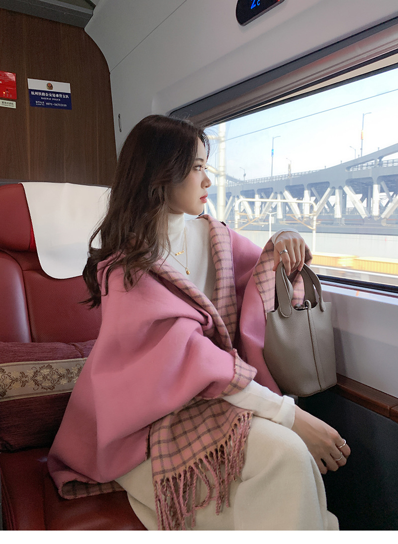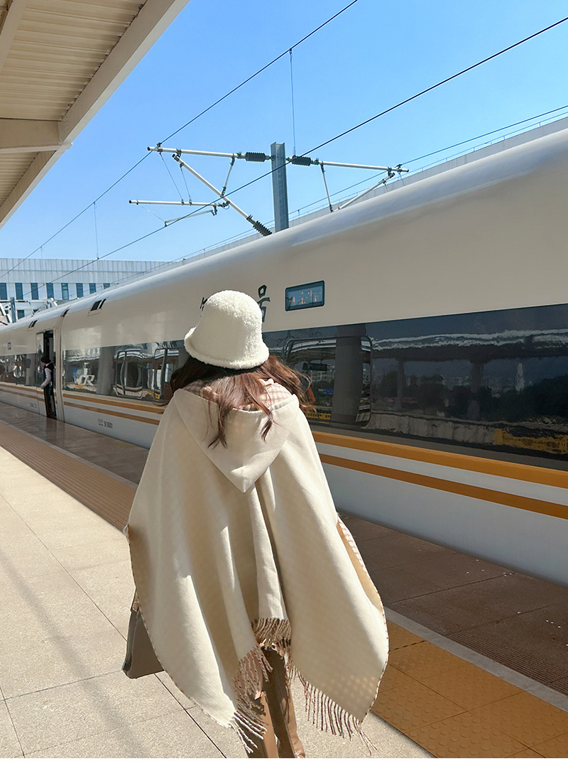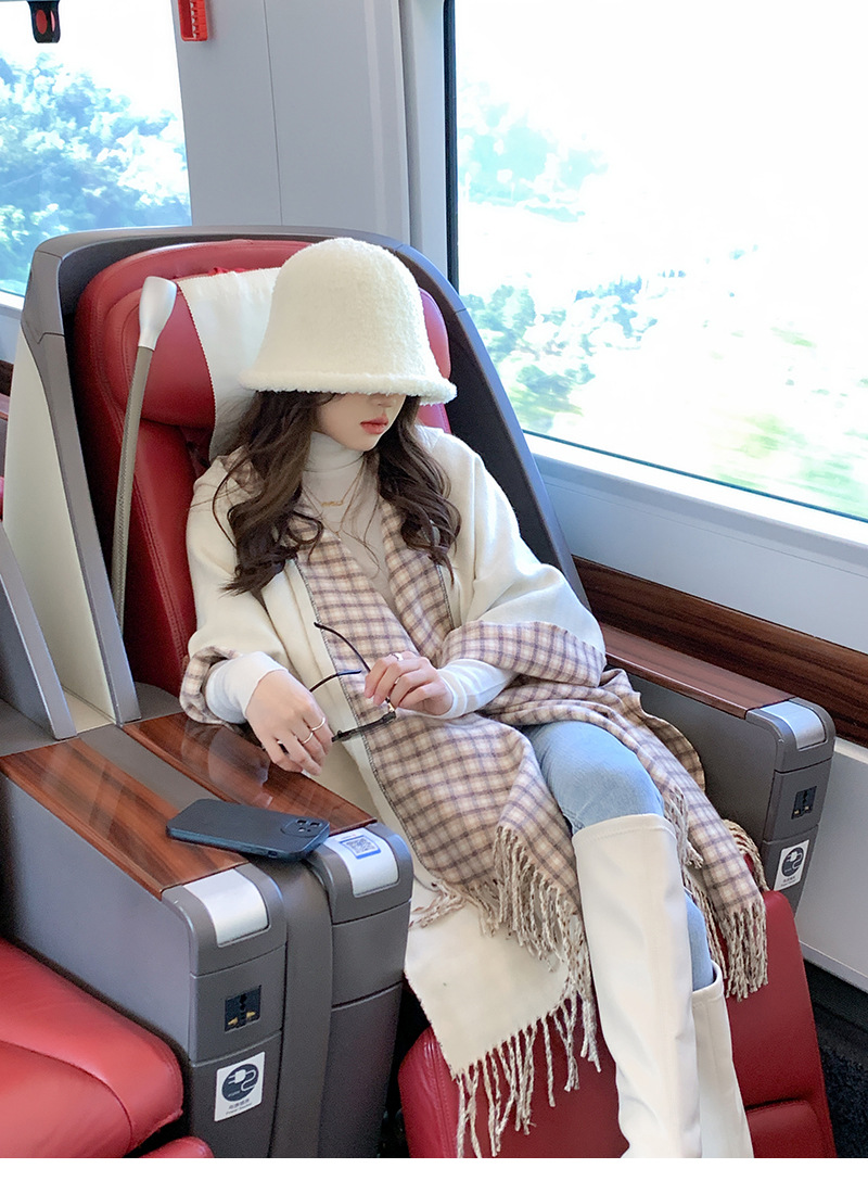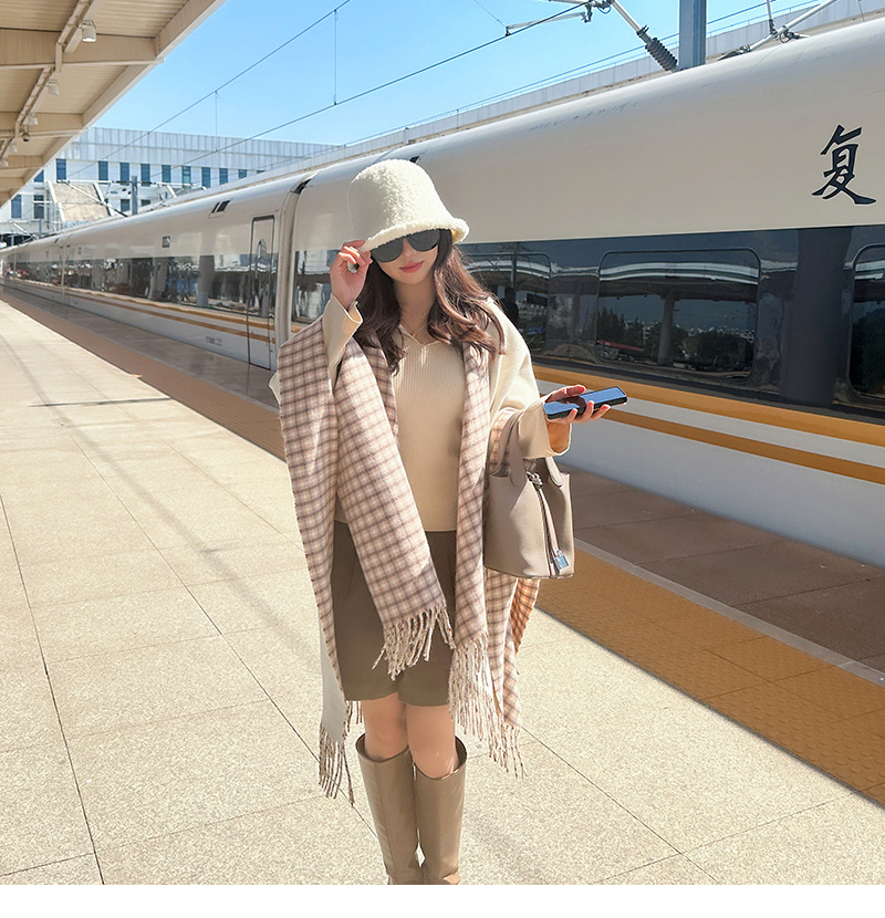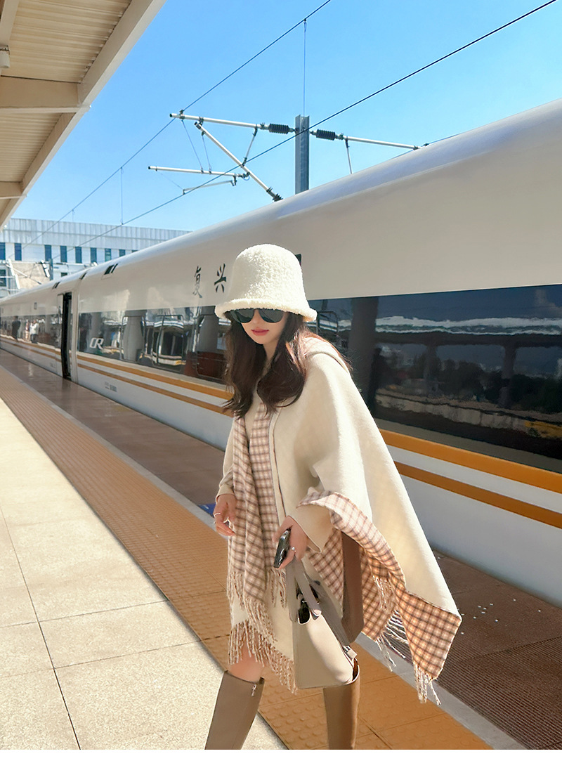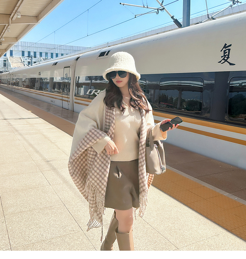 民族风气质格子斗篷外搭旅游拍照保暖春夏连帽子围巾披肩加厚外套